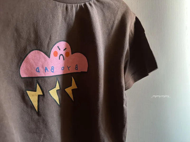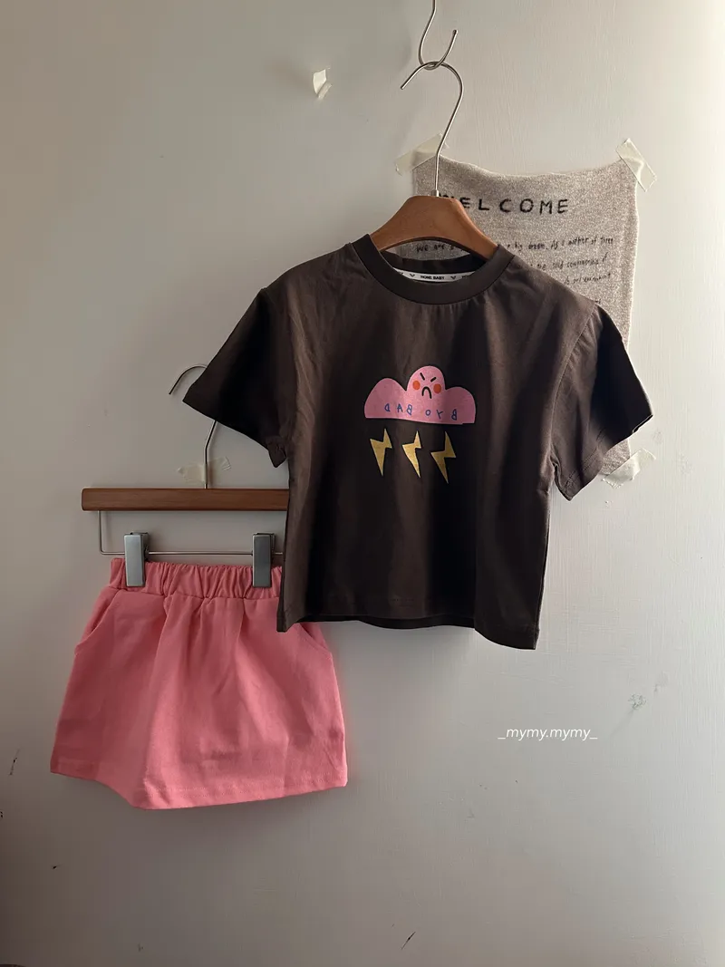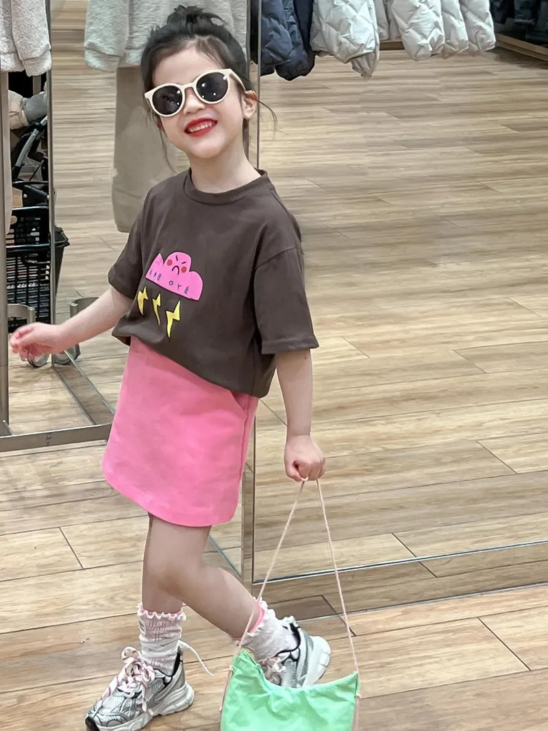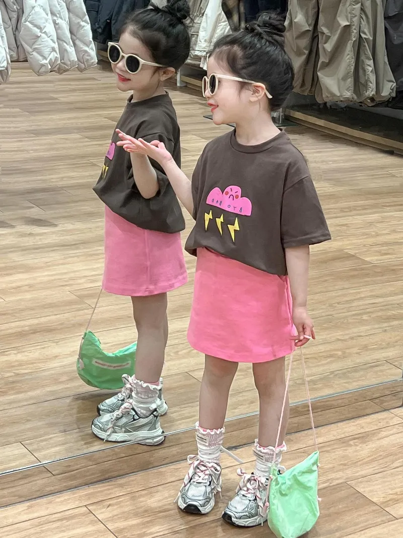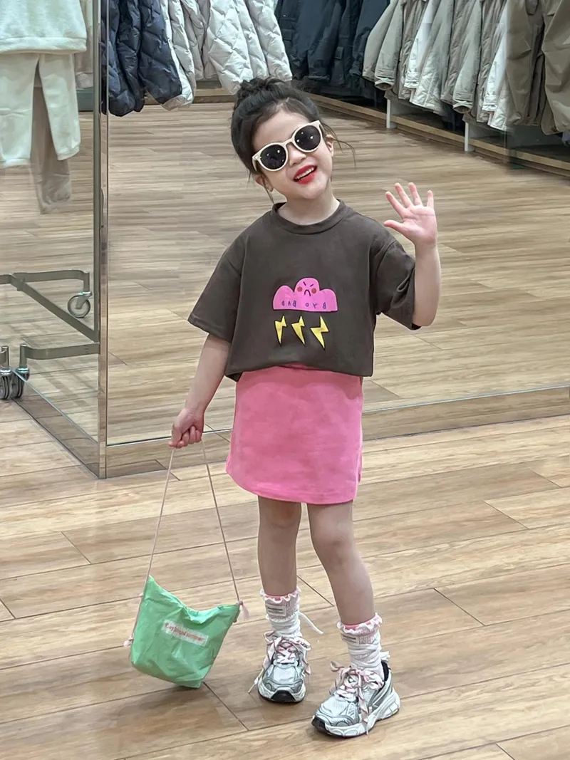 生氣小閃電插圖上衣+亮粉棉質褲裙套裝