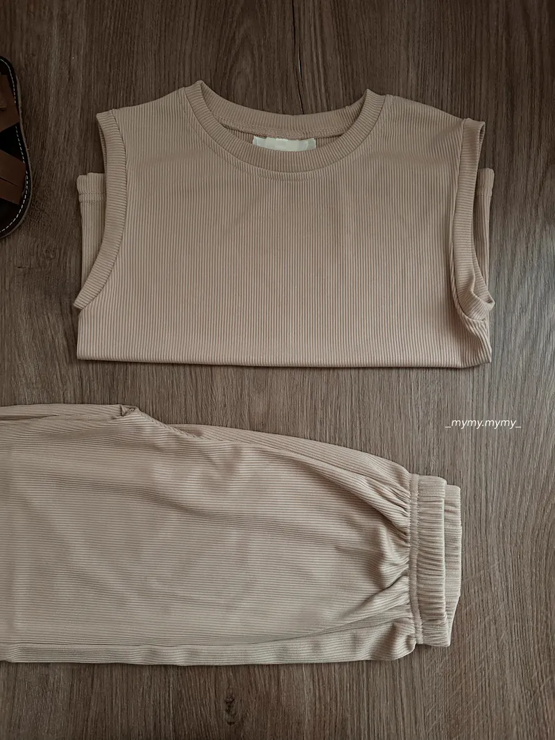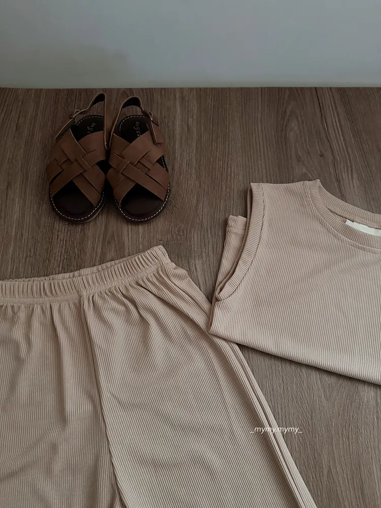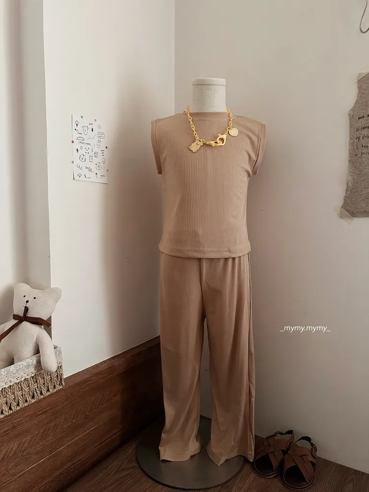 冰絲垂墜感無袖上衣+喇叭褲套裝
