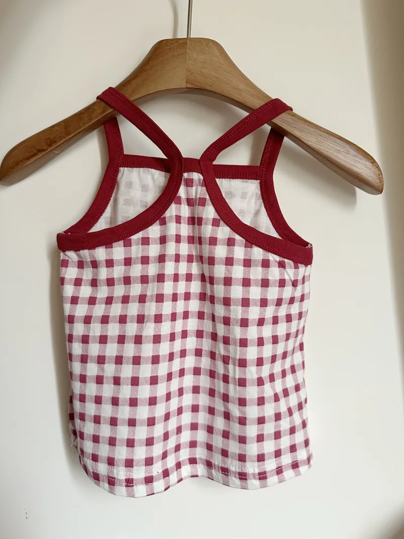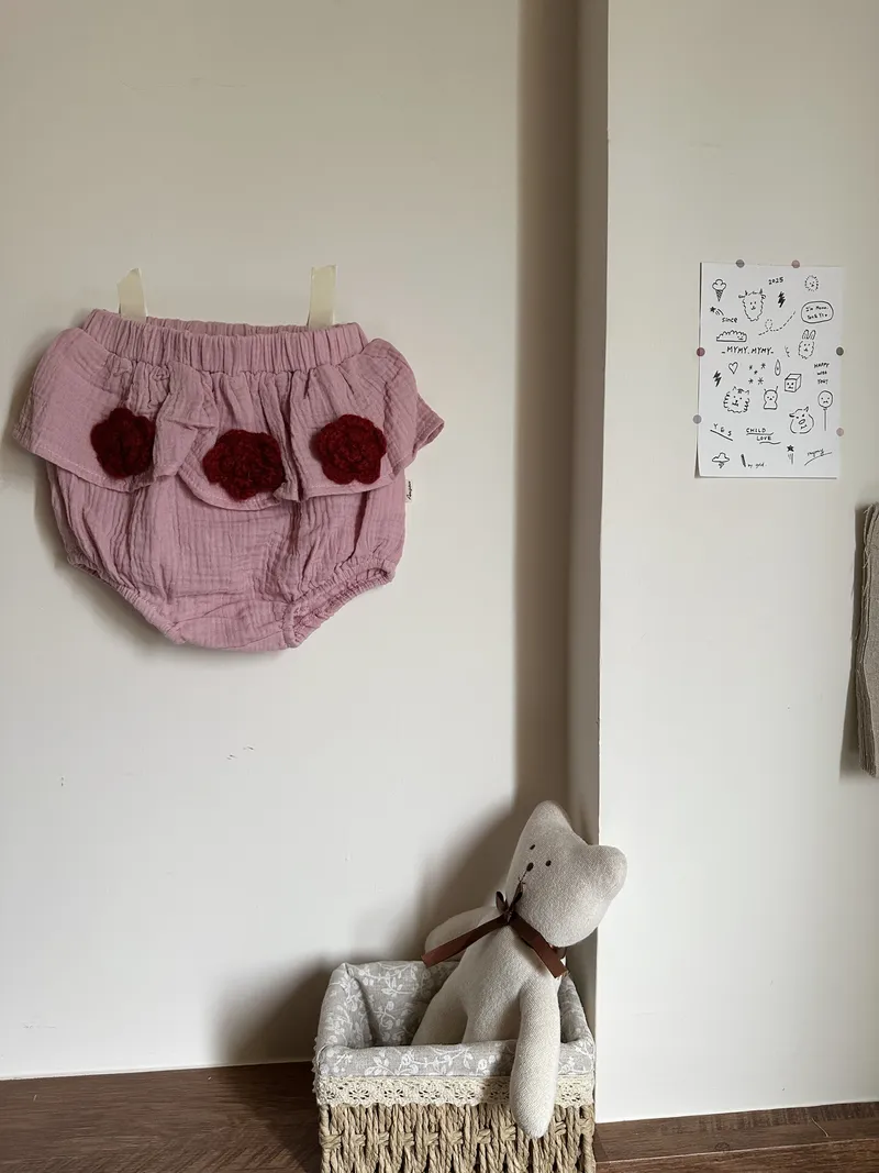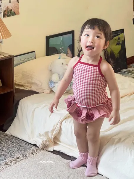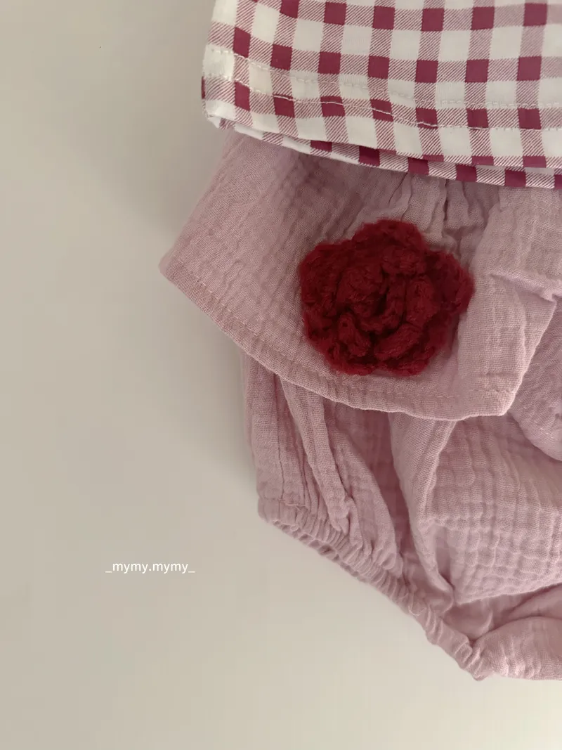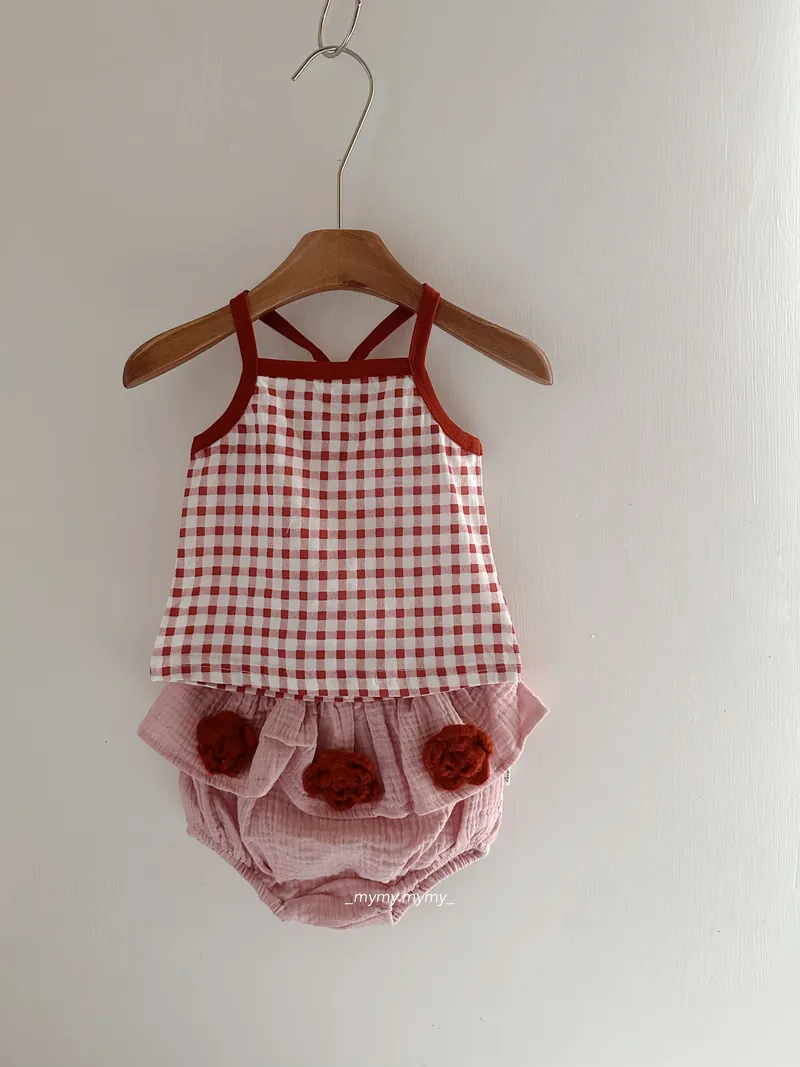 玫瑰女孩格紋上衣+花苞屁屁褲兩件組套裝