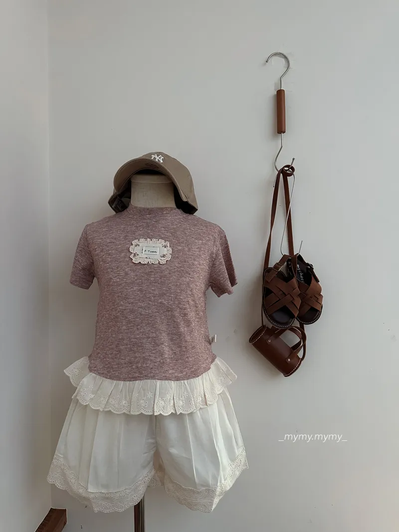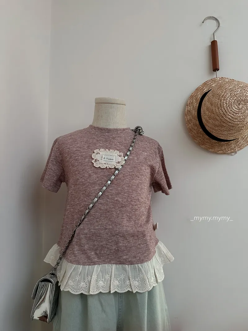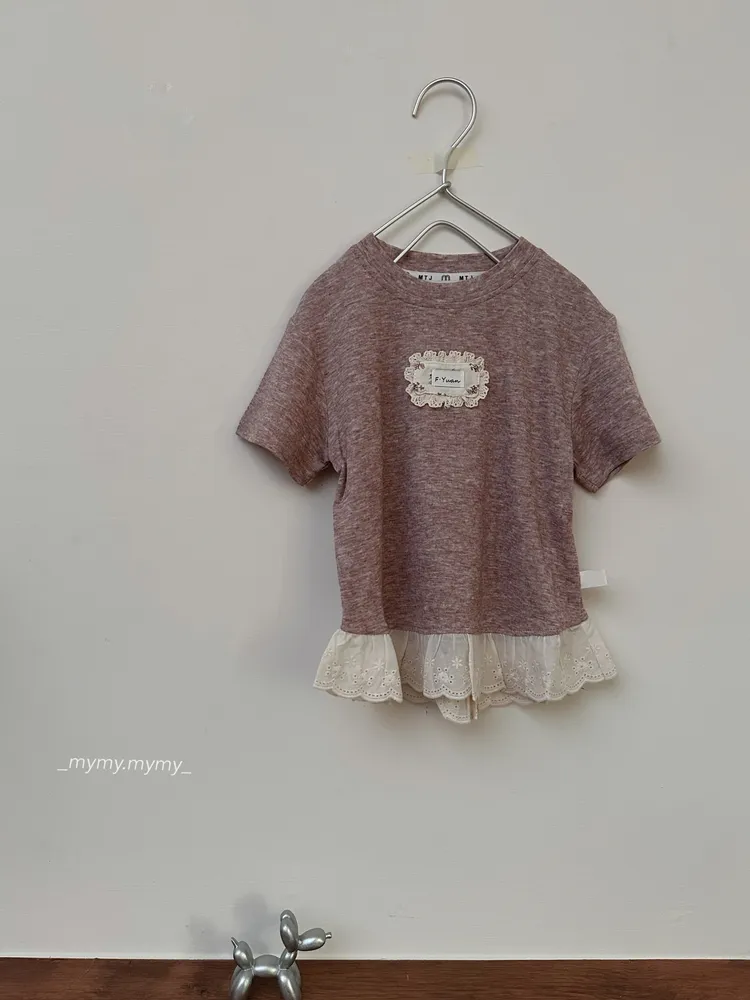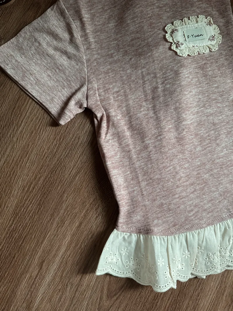 軟糯小布標拼接蕾絲上衣