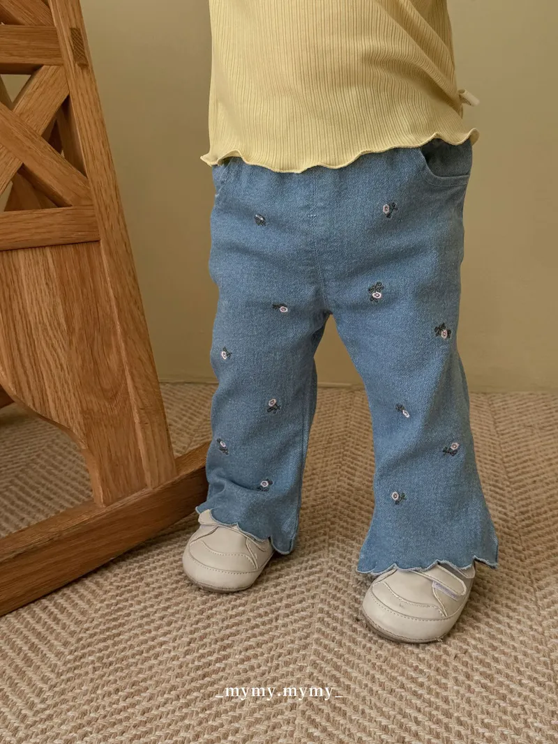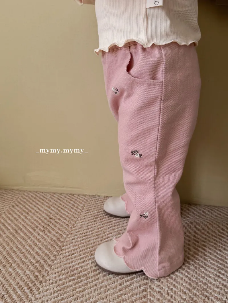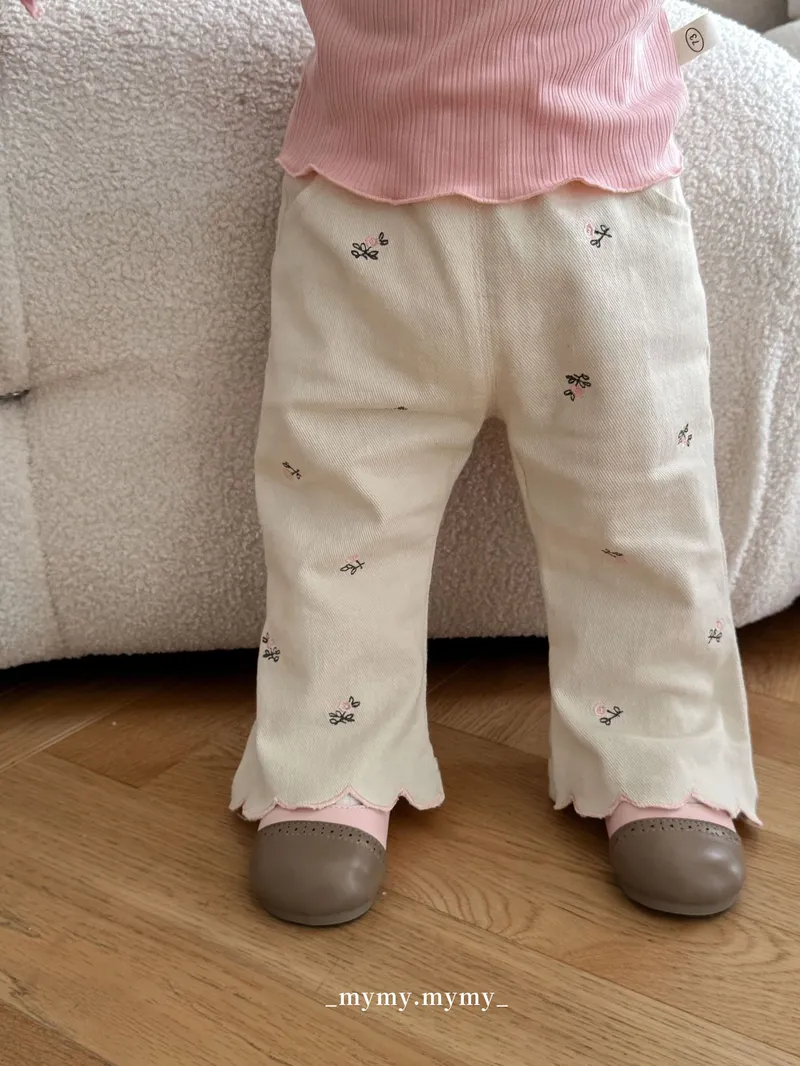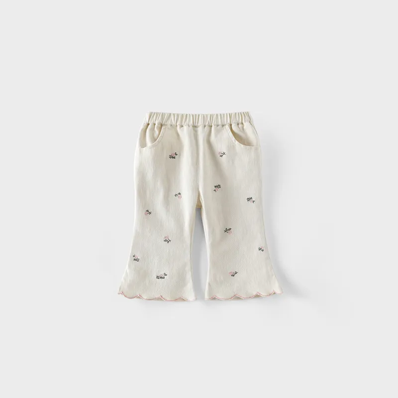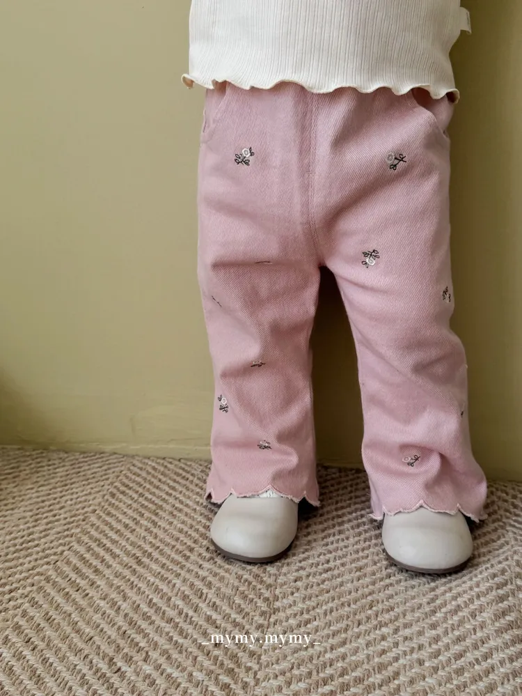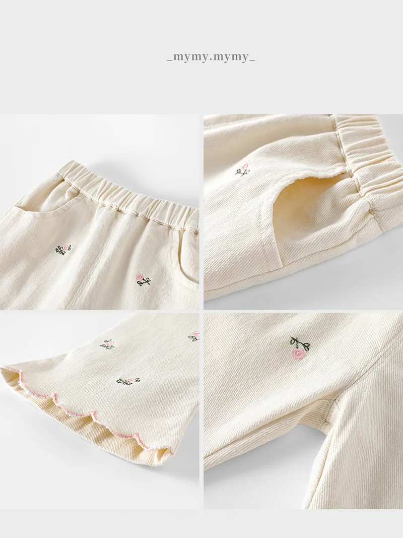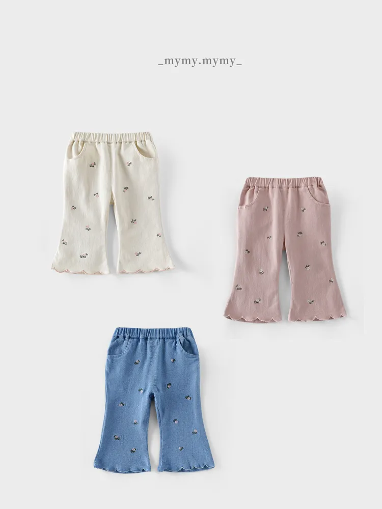秋日小繡花俏皮喇叭褲