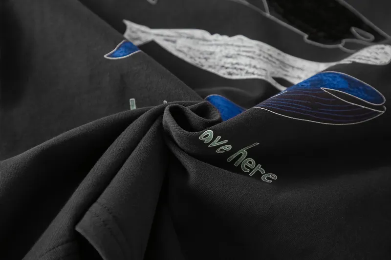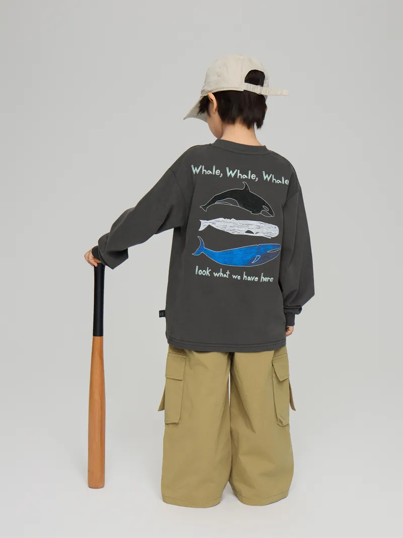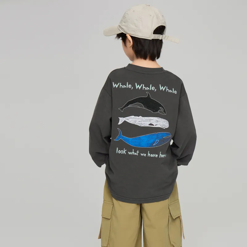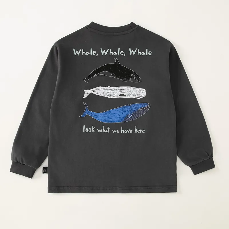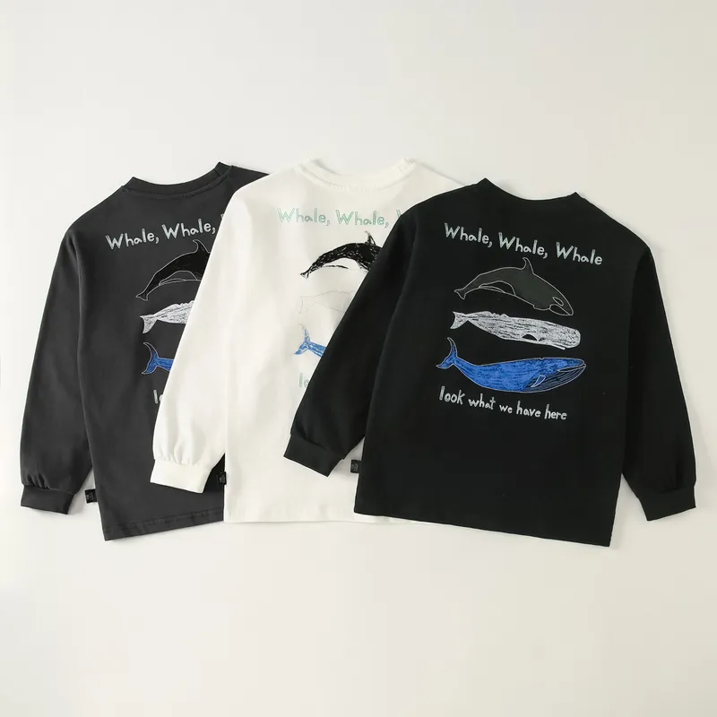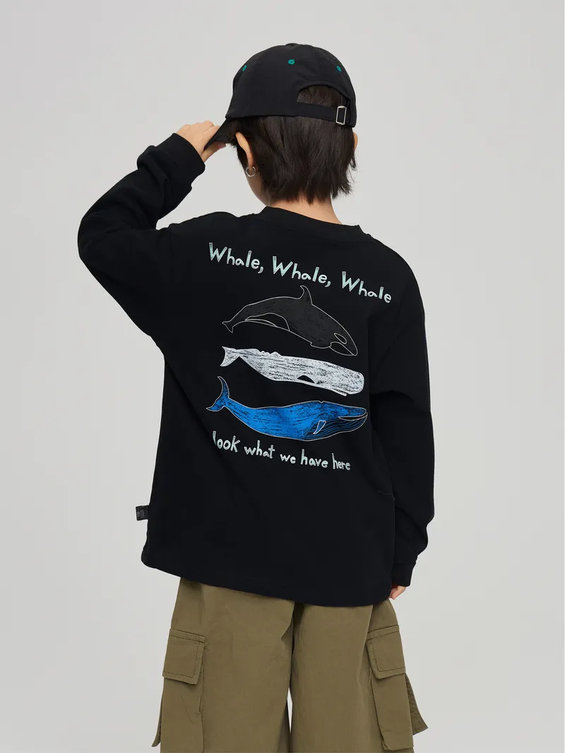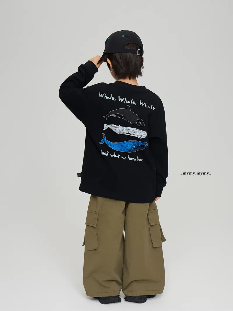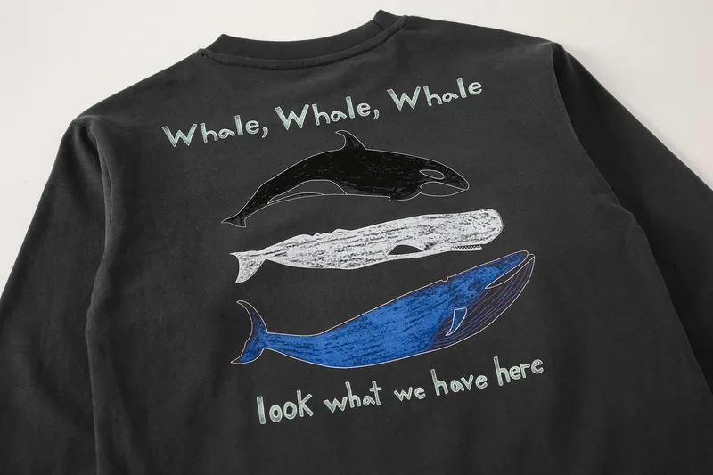 手繪三隻鯨魚們文字棉tee