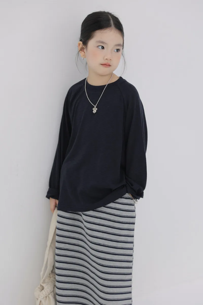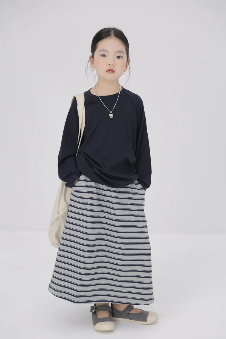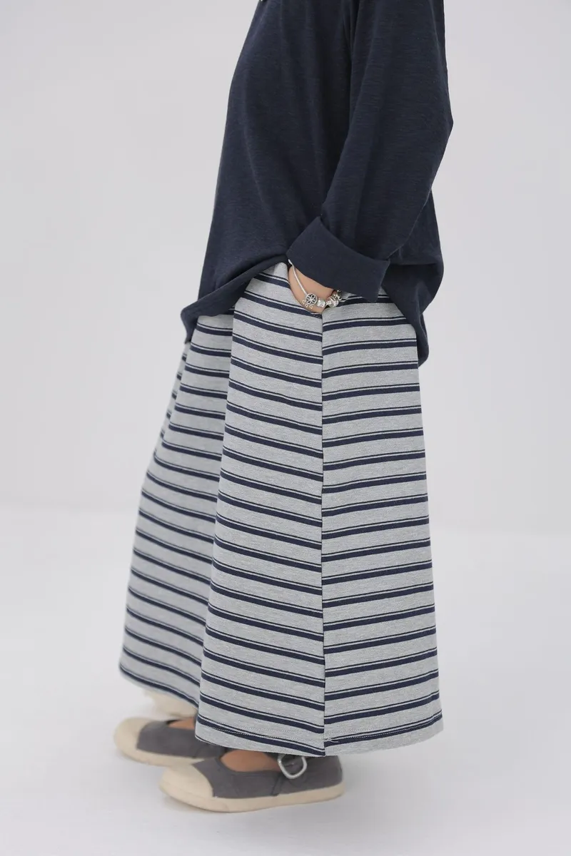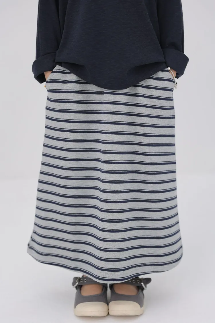 BO家親子裝|藏青條紋彈性棉質半身裙