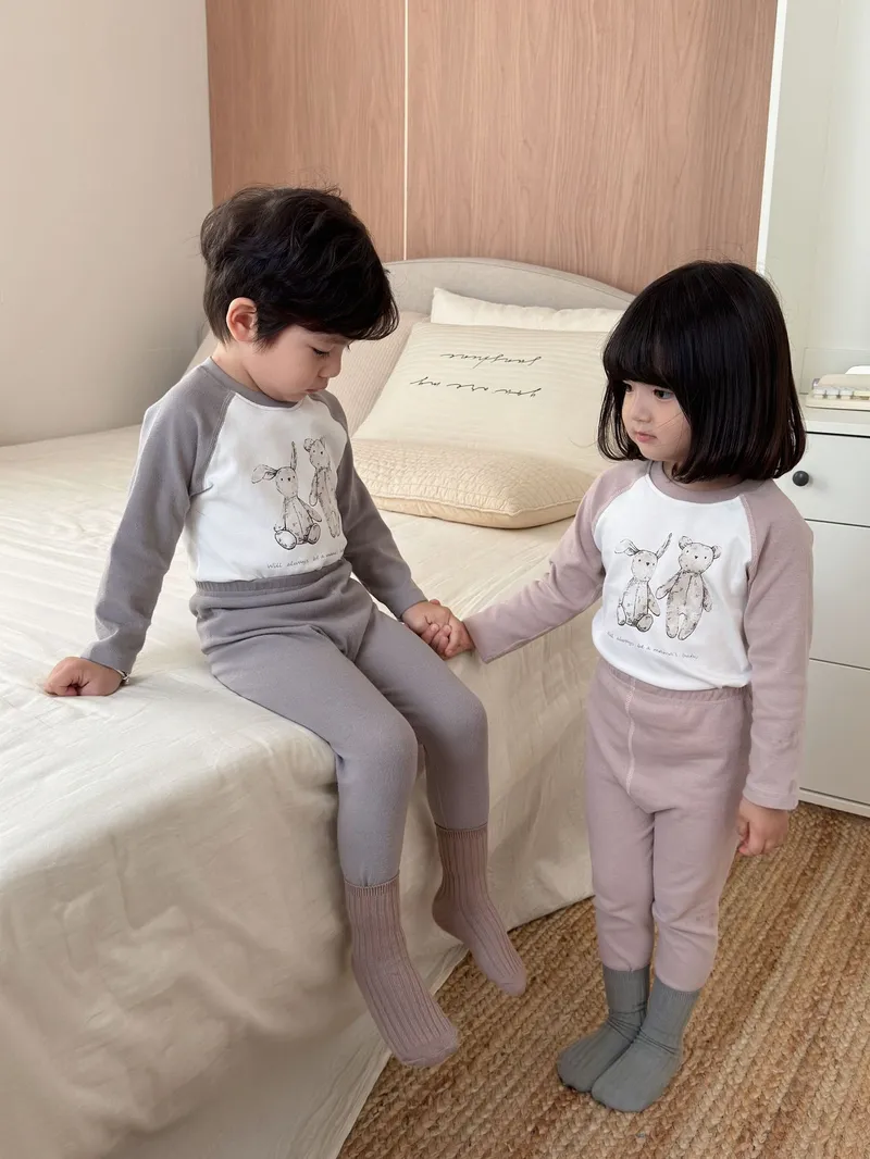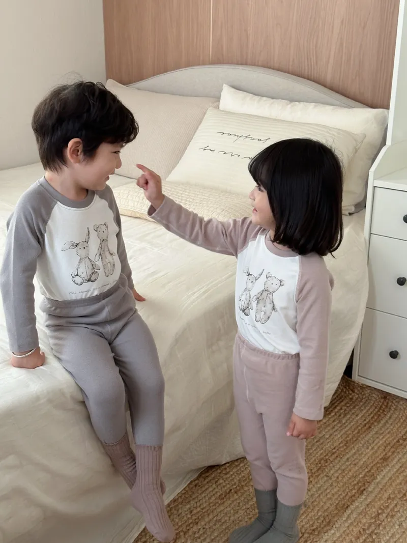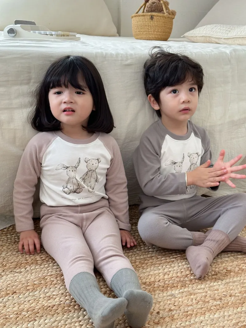 舒適棉質印花款家居服|灰色插肩熊熊兔兔