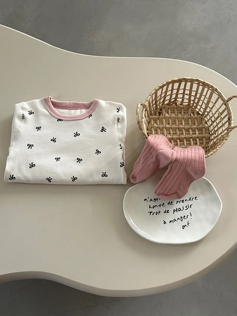 舒適棉質印花款家居服|米白蝴蝶結