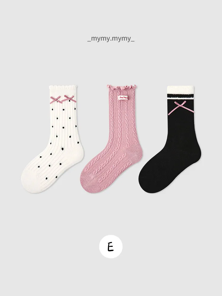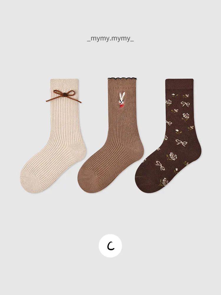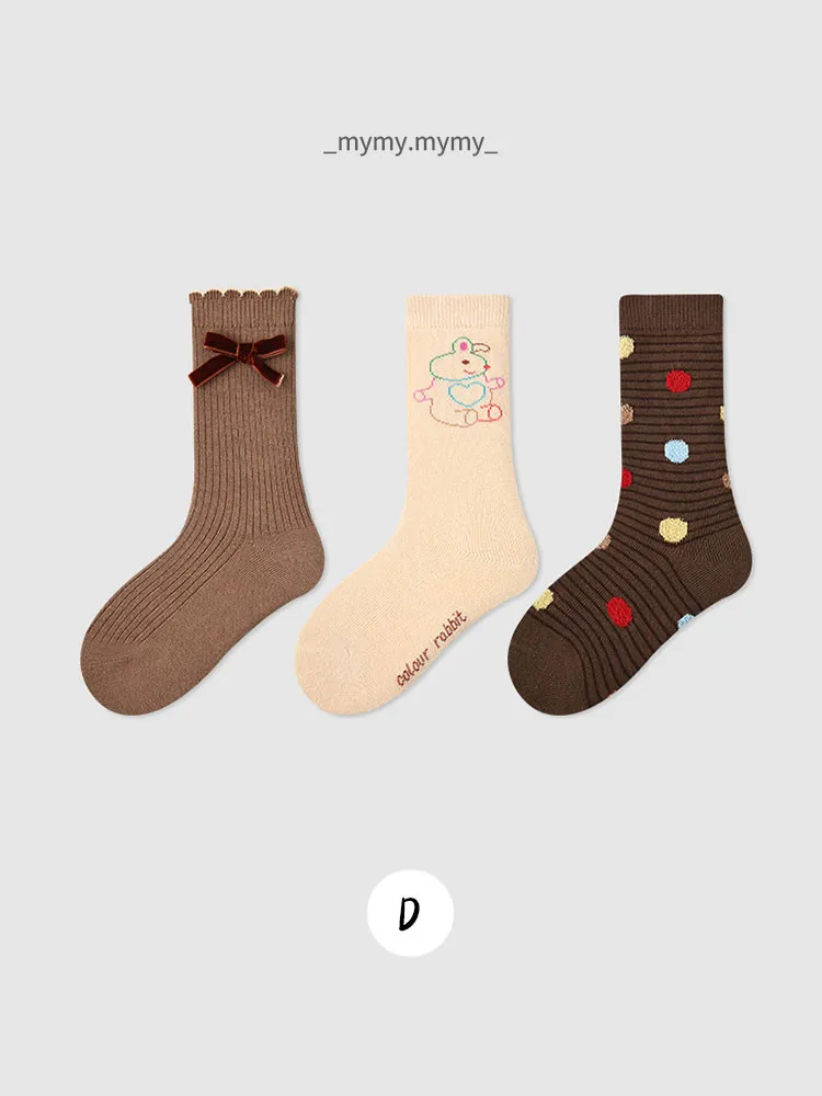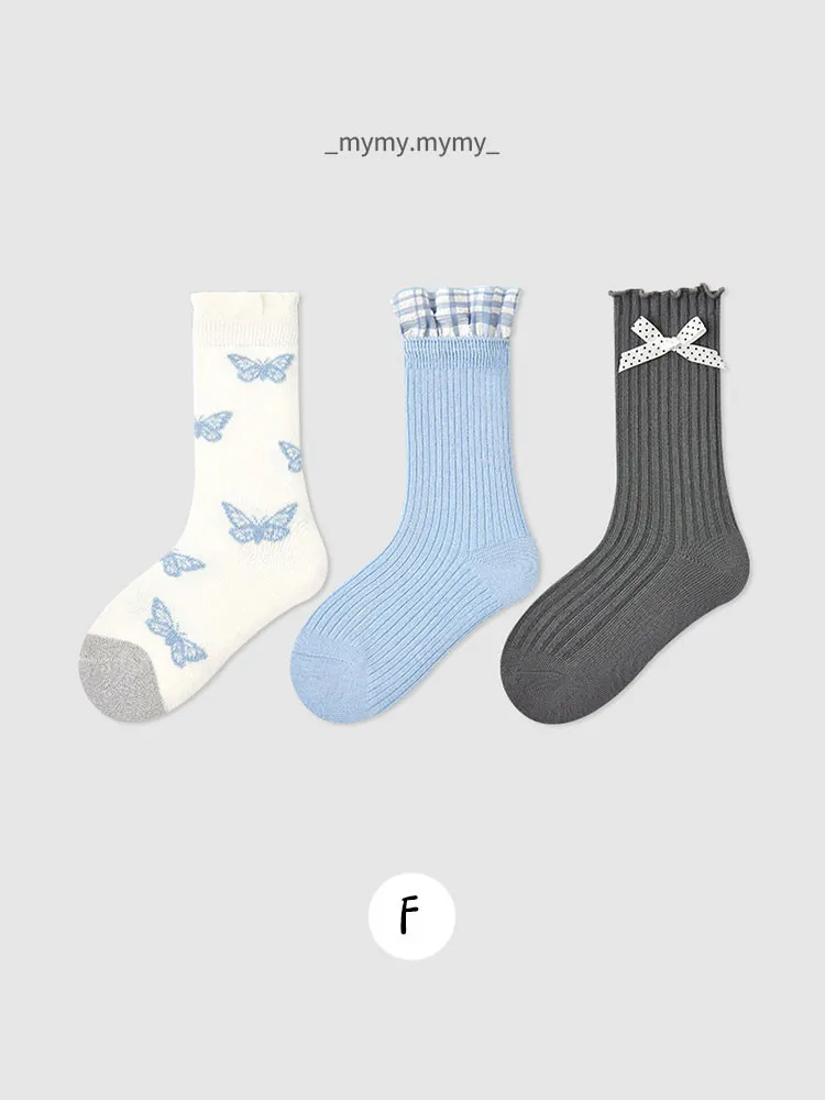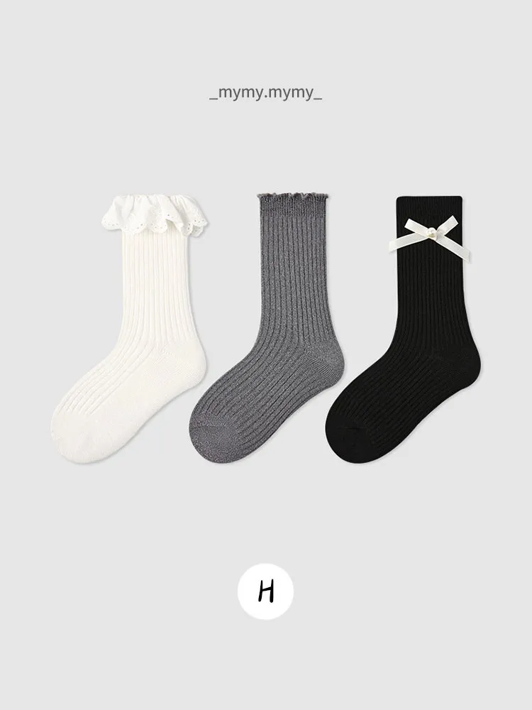 秋款襪襪們 ~ 女孩的棉質中長襪 (三入組)