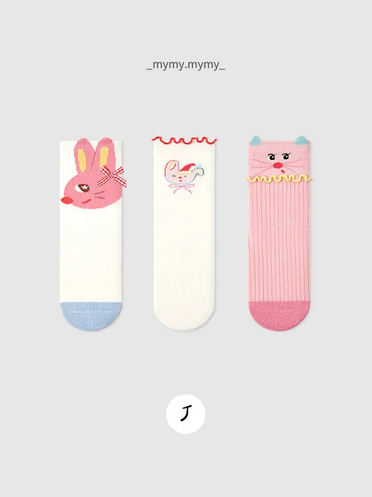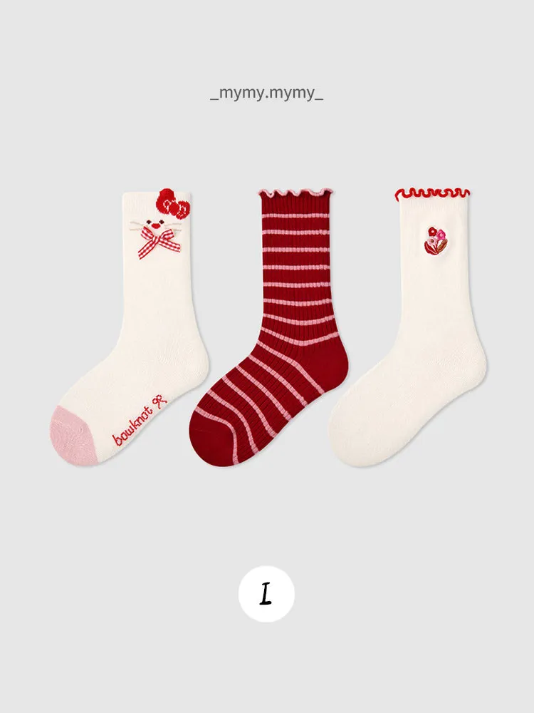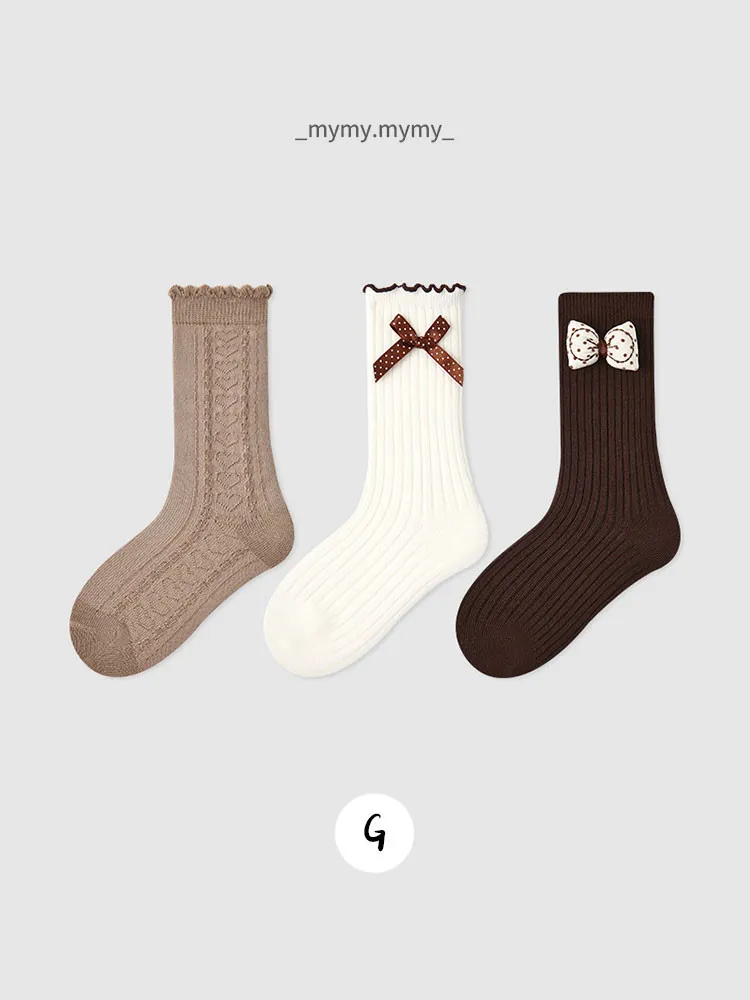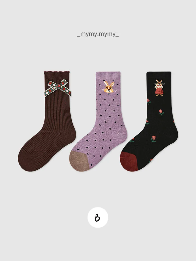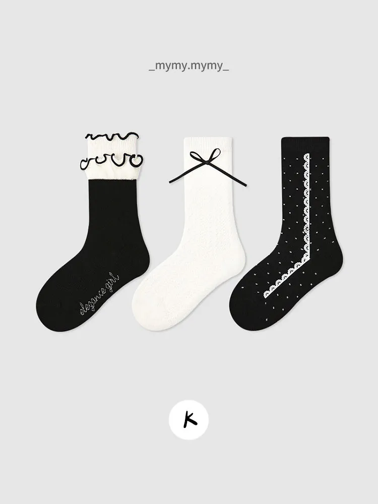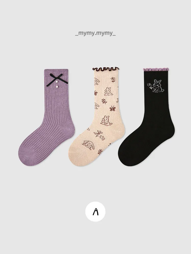 秋款襪襪們 ~ 女孩的棉質中長襪 (三入組)