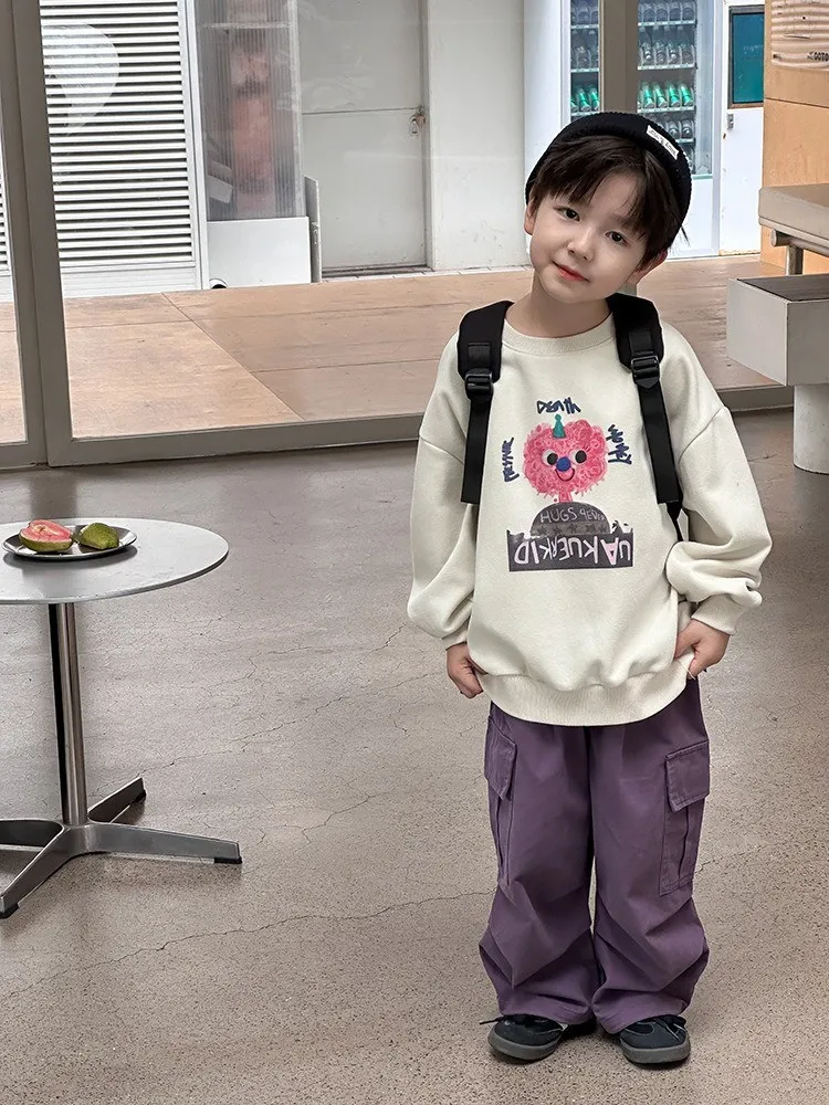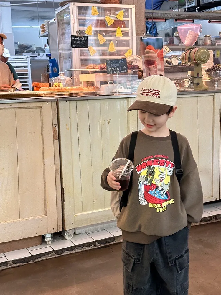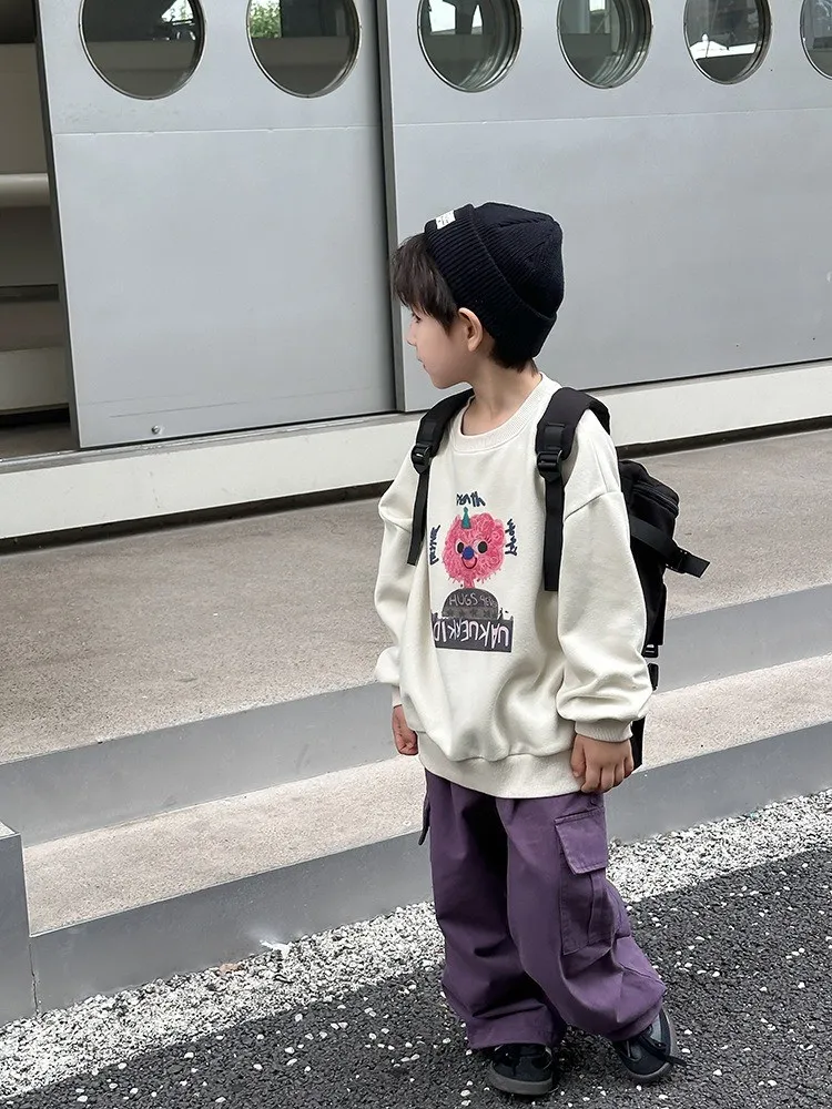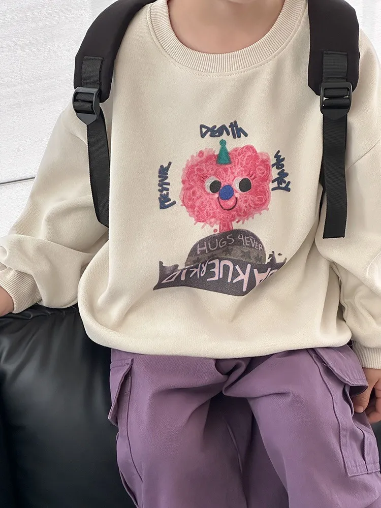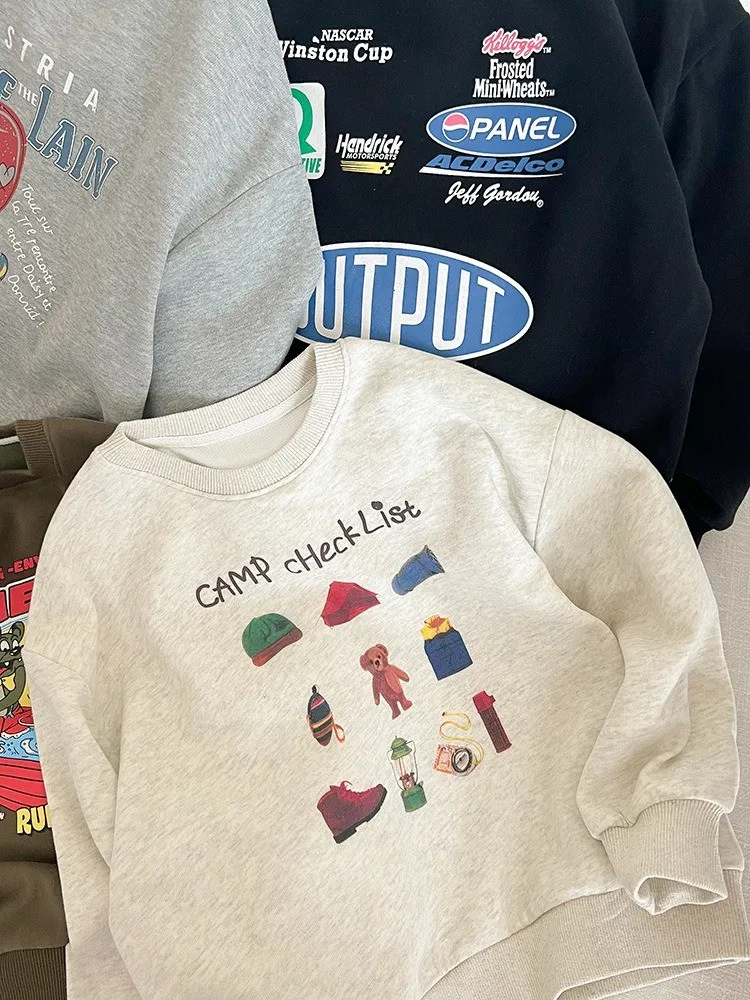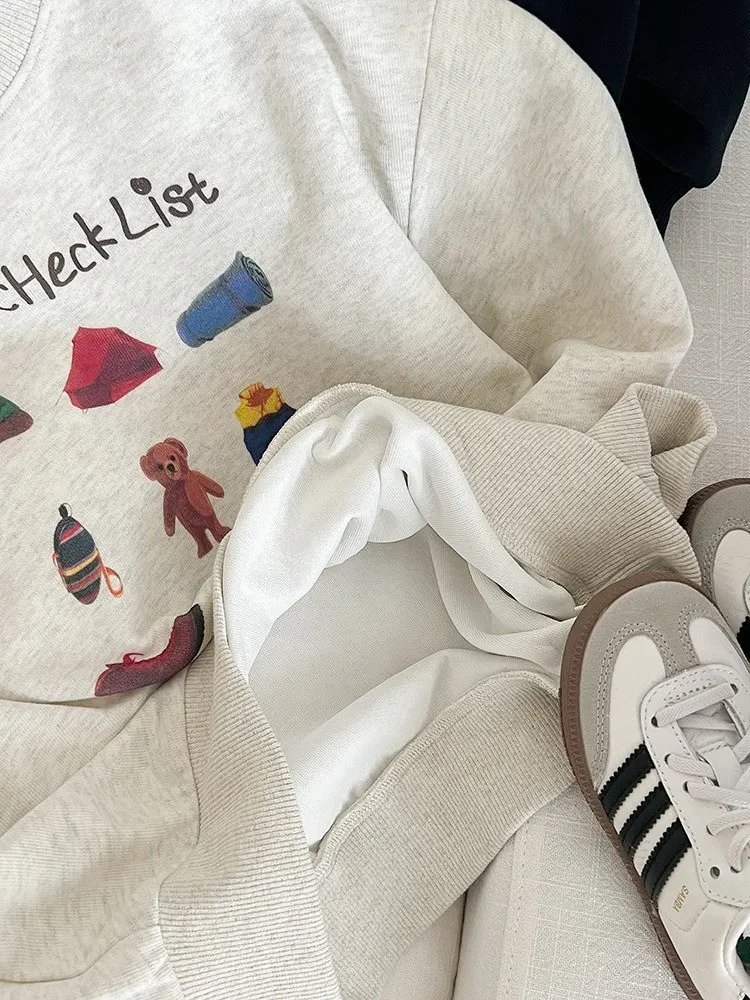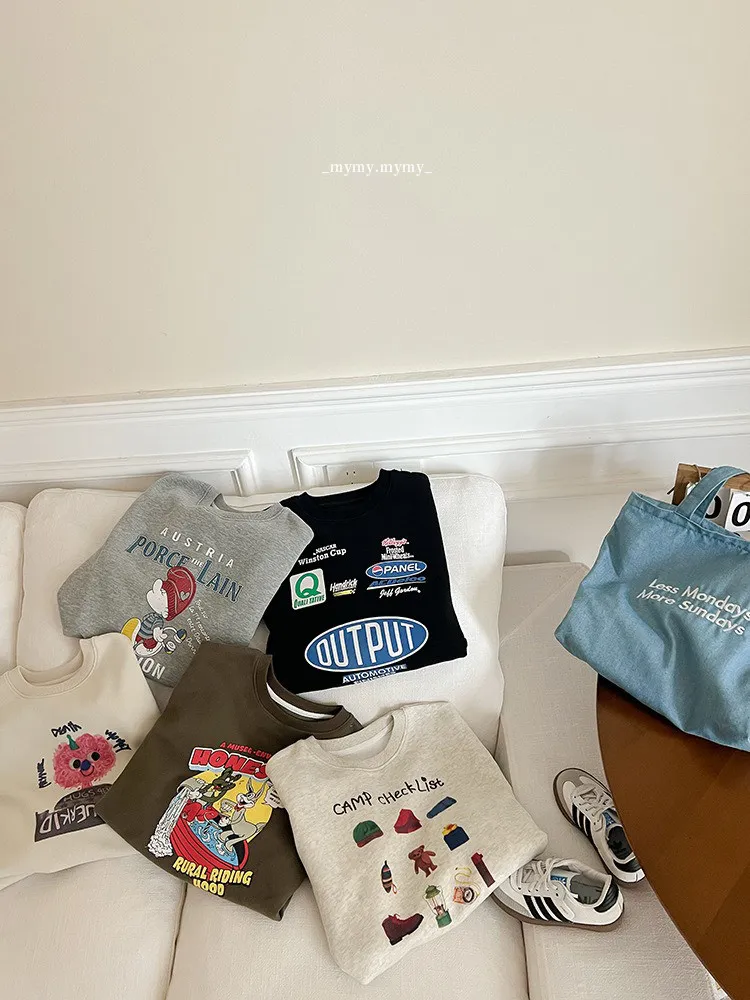 秋日多色卡通印花寬鬆棉tee
