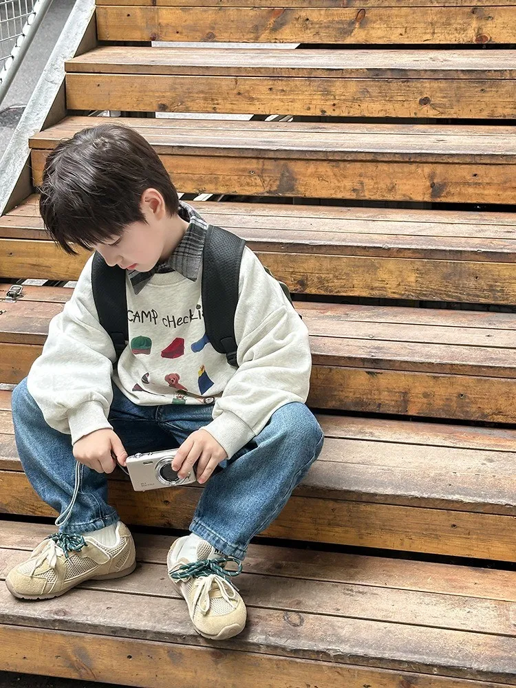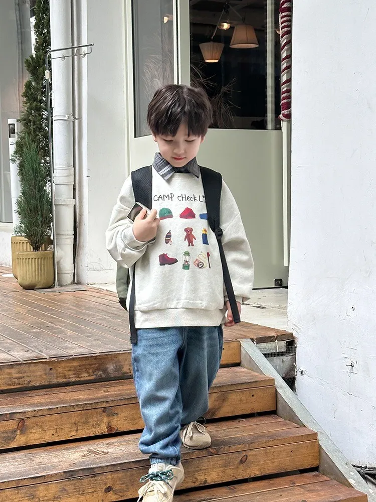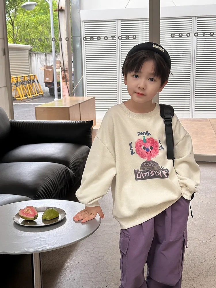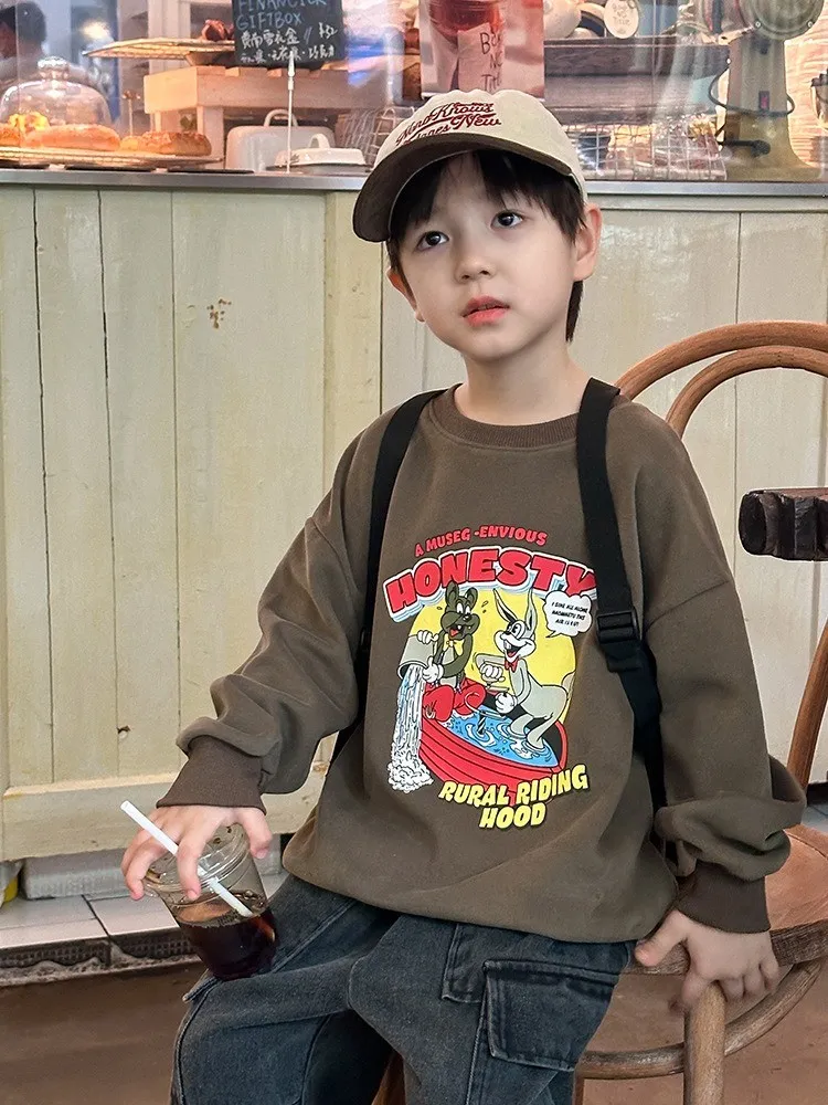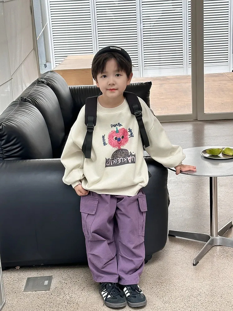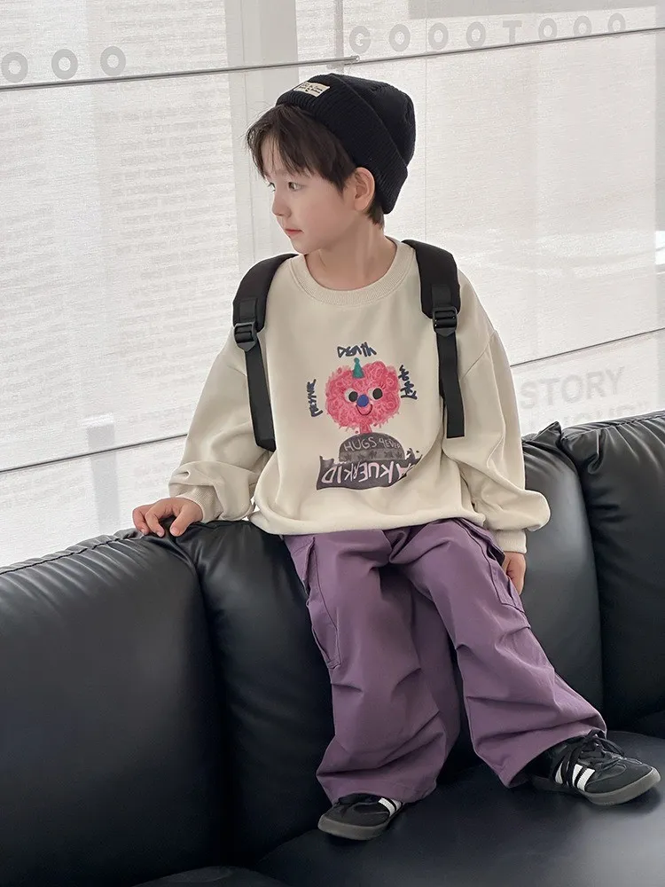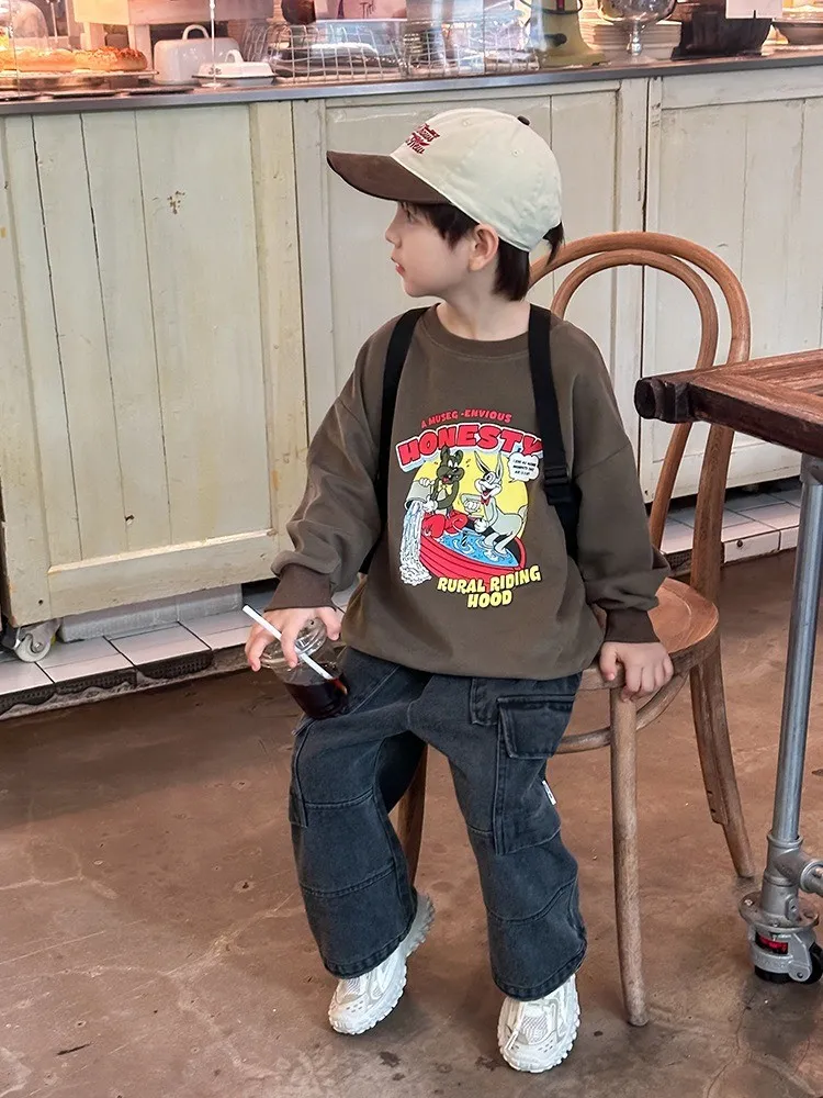 秋日多色卡通印花寬鬆棉tee