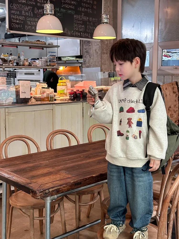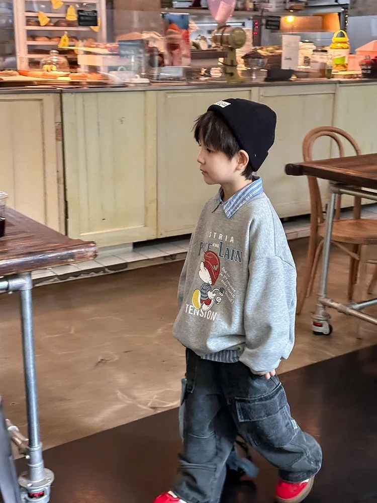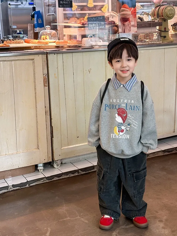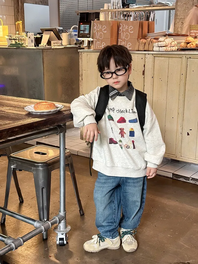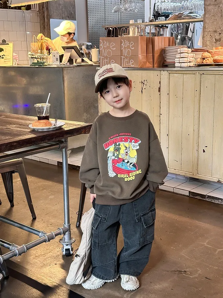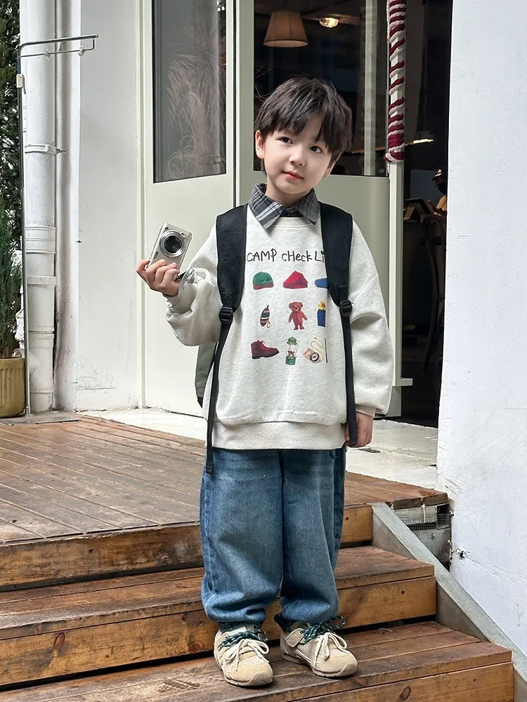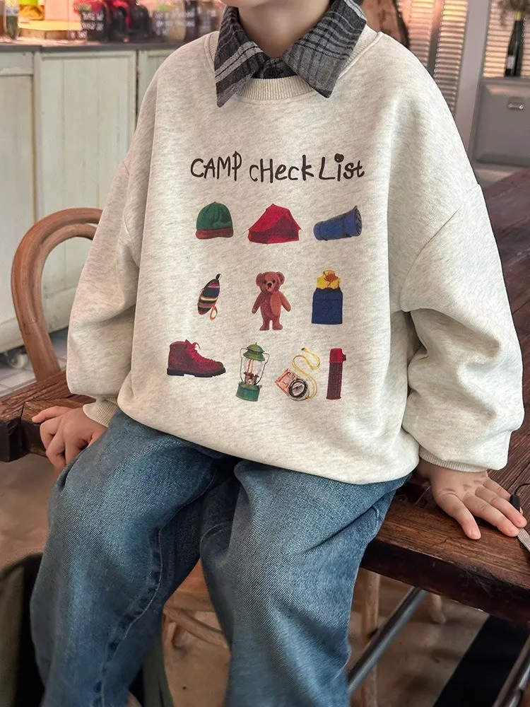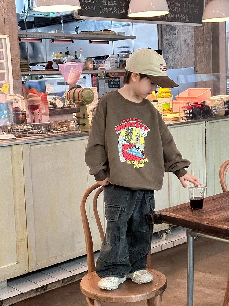 秋日多色卡通印花寬鬆棉tee