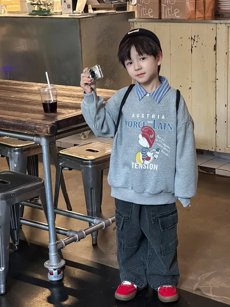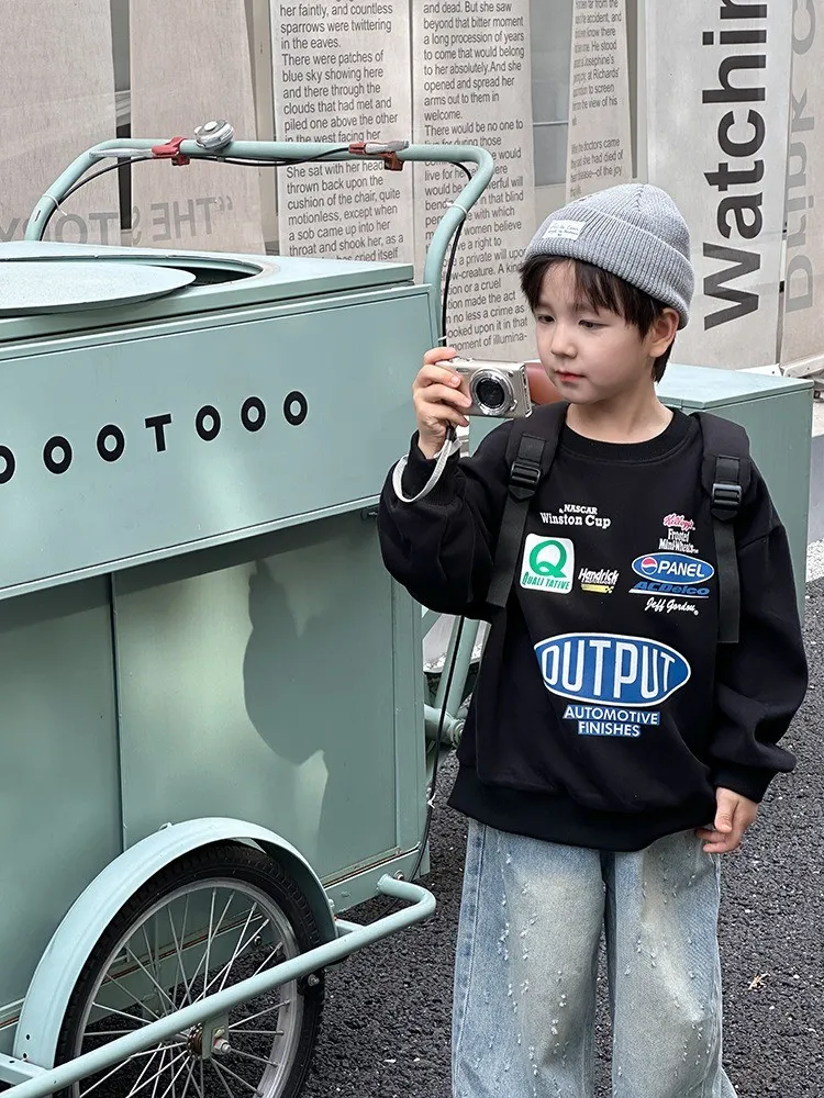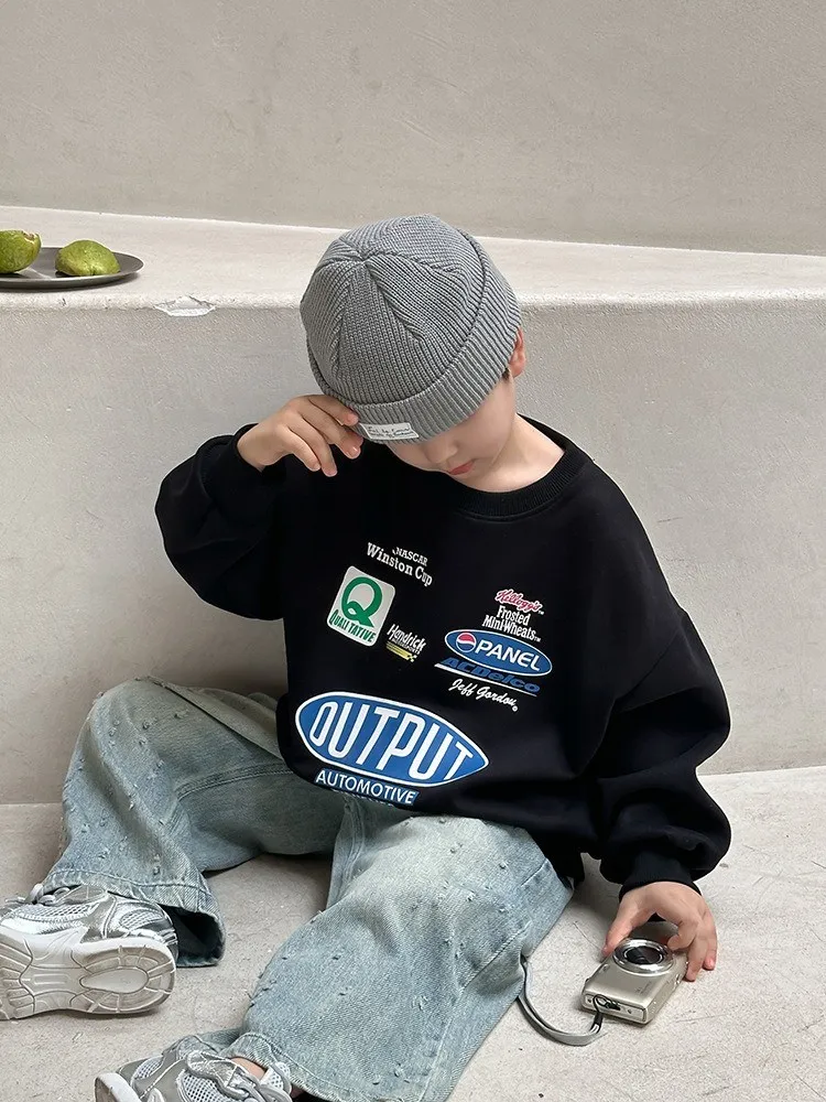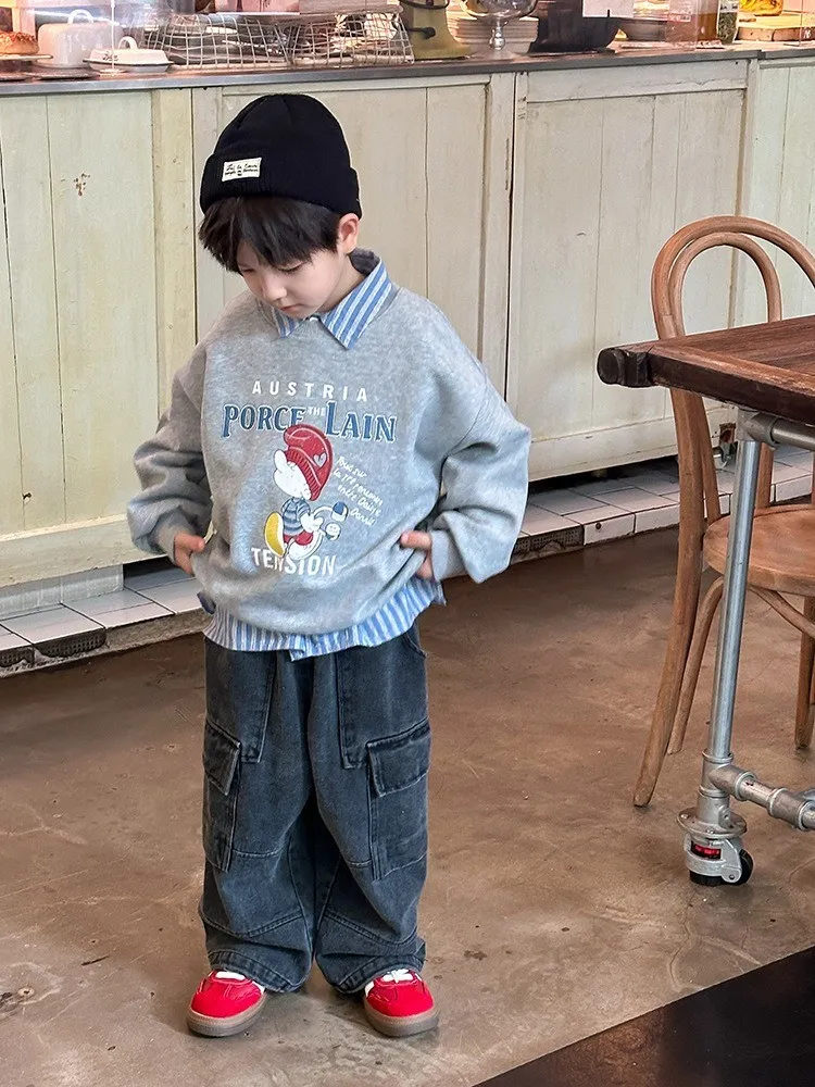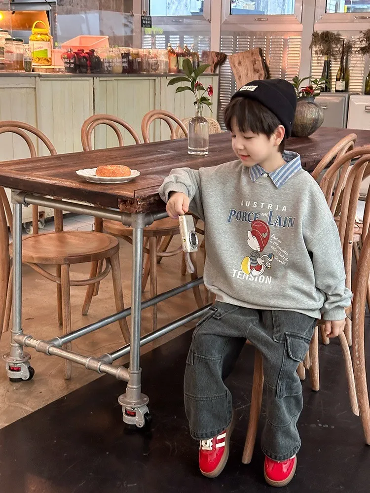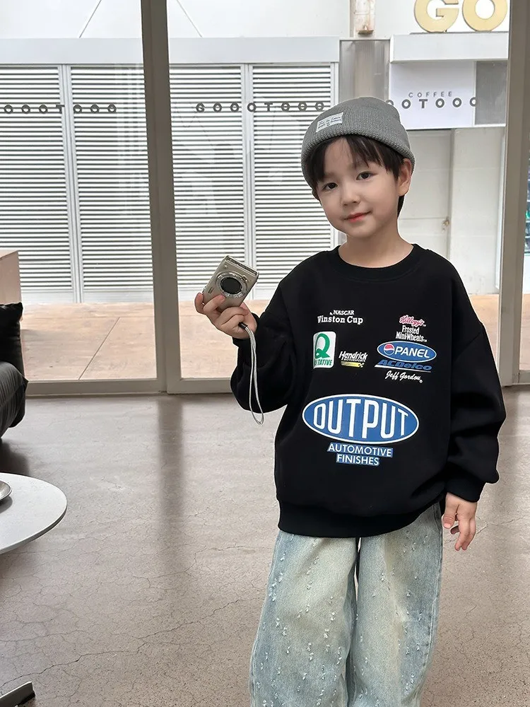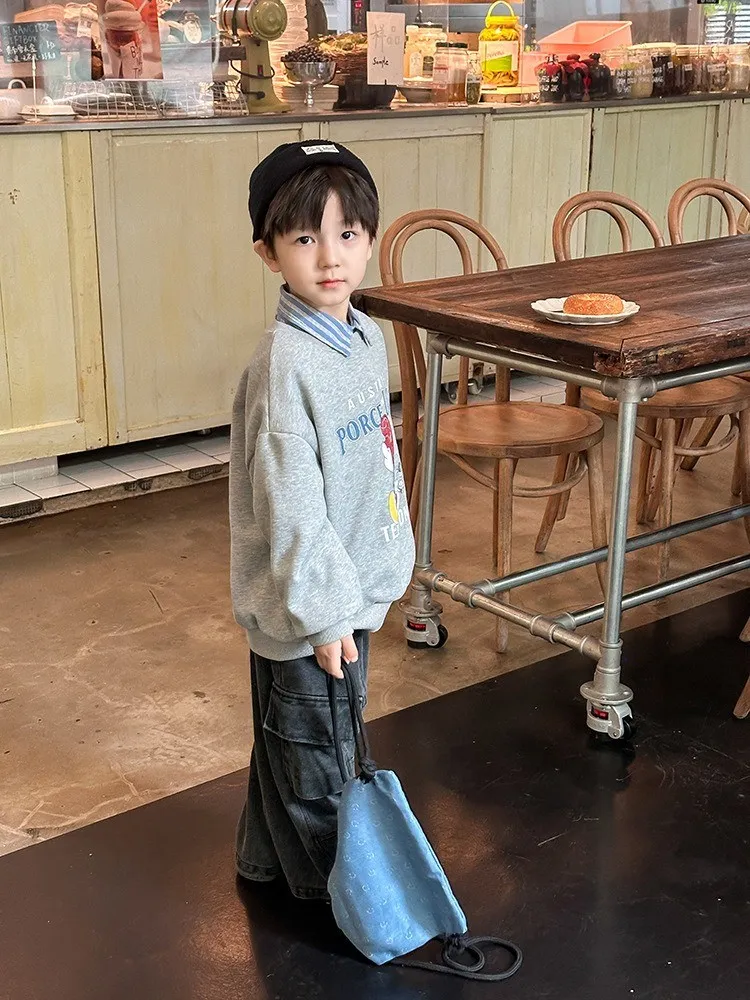 秋日多色卡通印花寬鬆棉tee