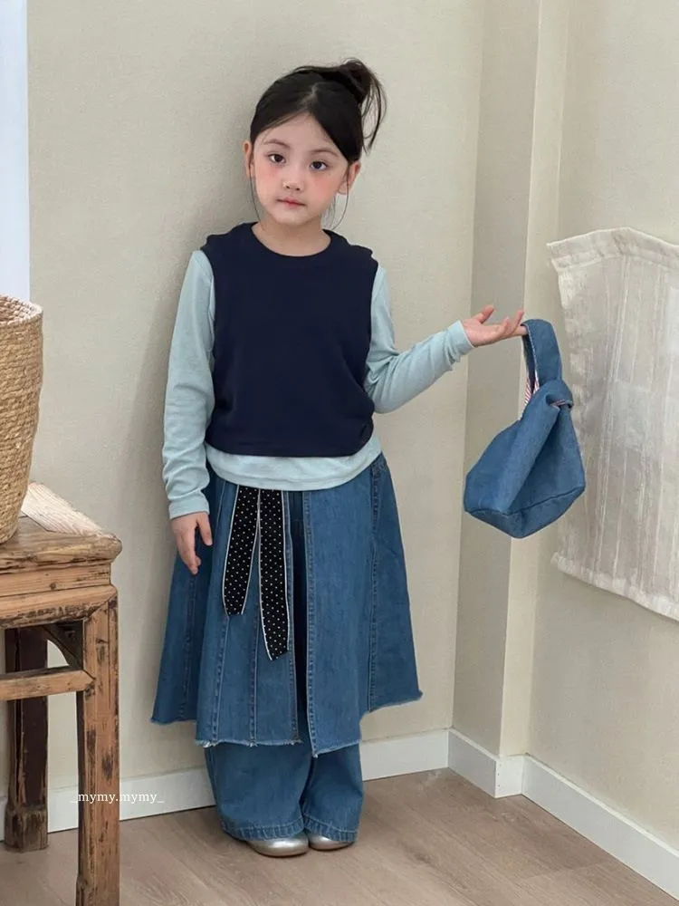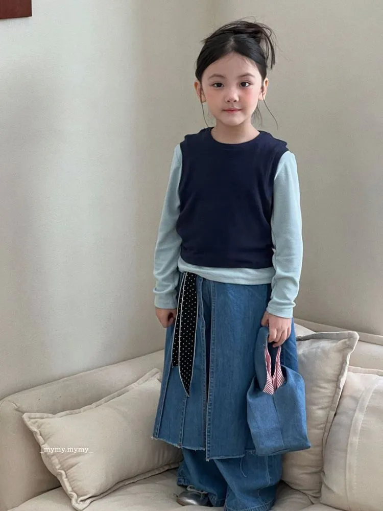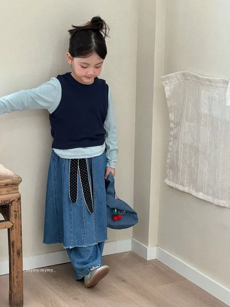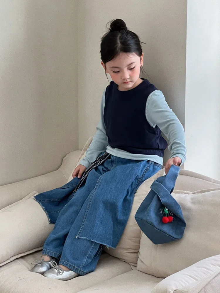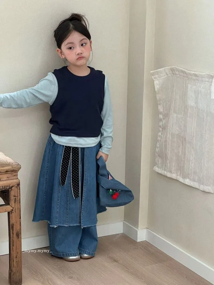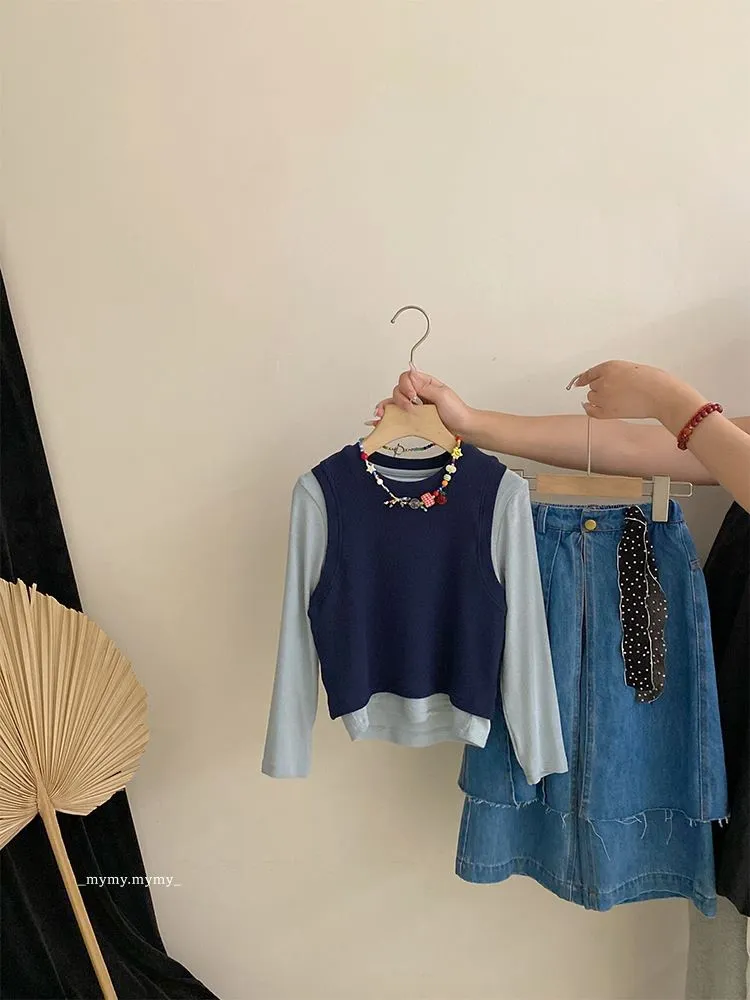 雲朵藍色系針織背心上衣+牛仔褲裙套裝組