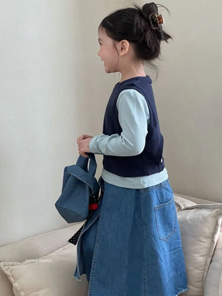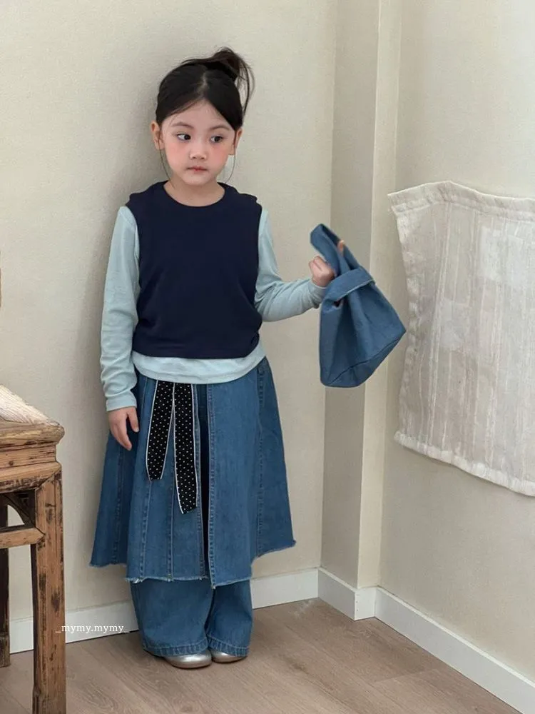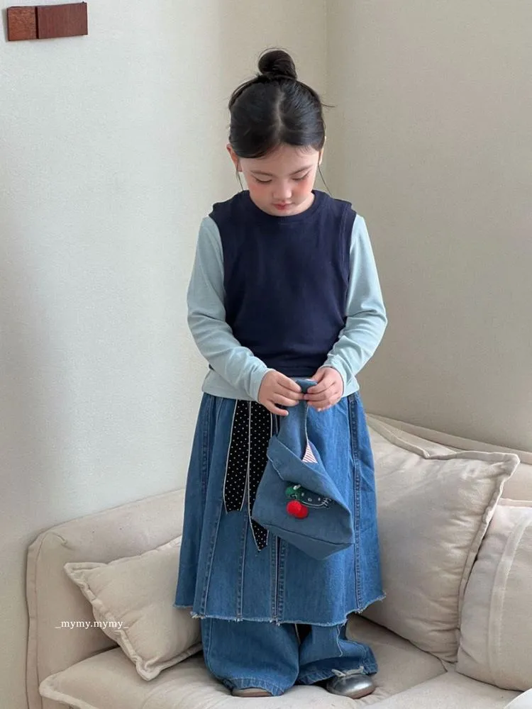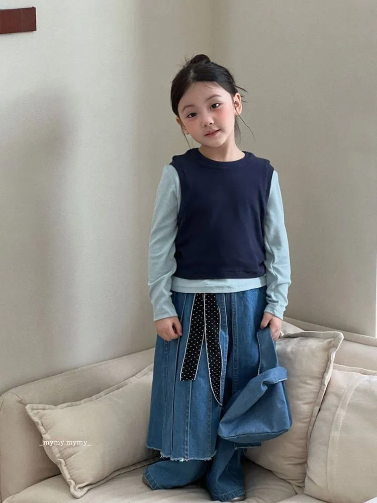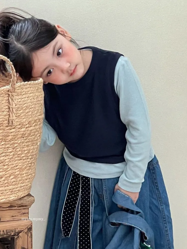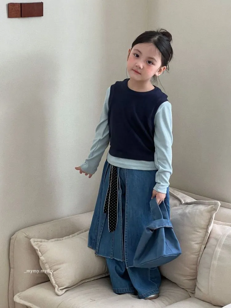 雲朵藍色系針織背心上衣+牛仔褲裙套裝組