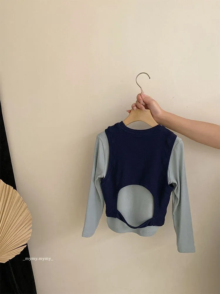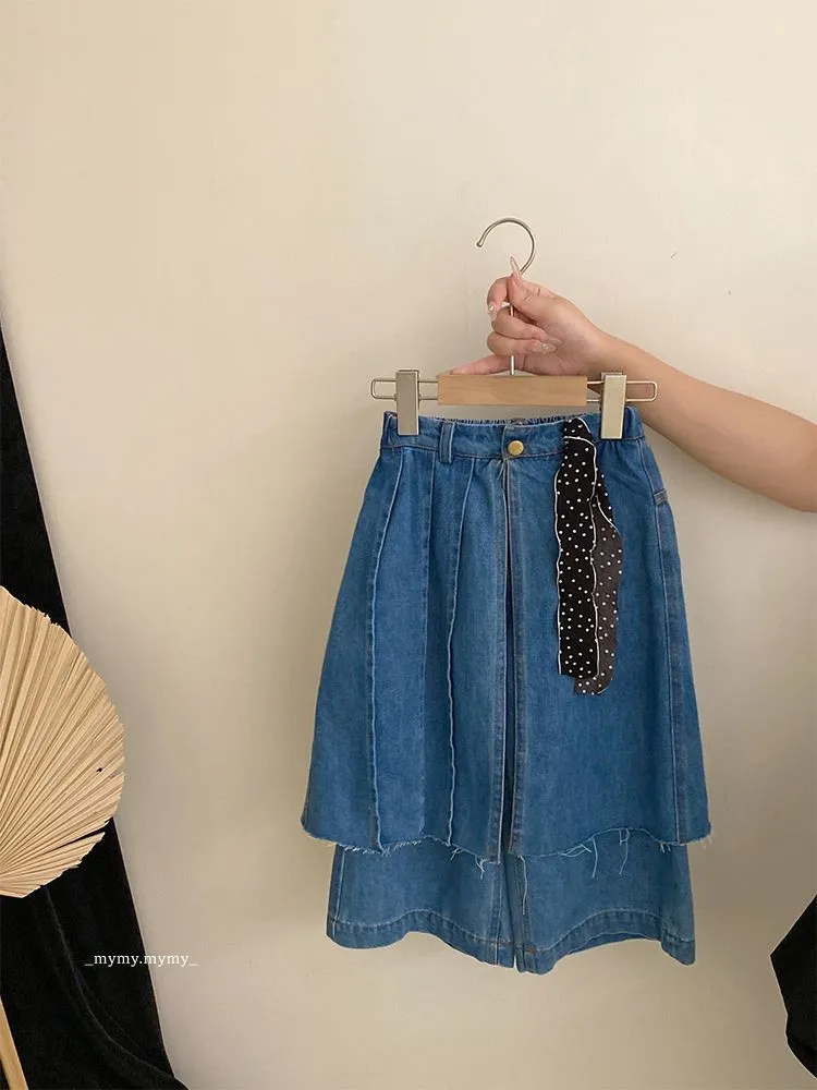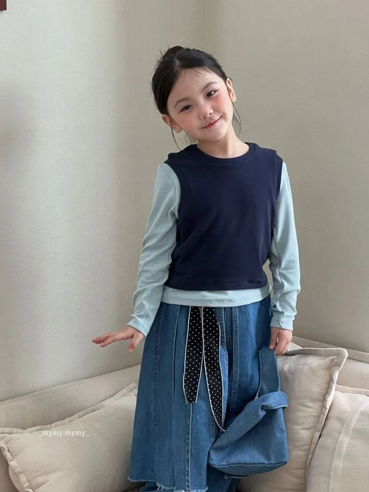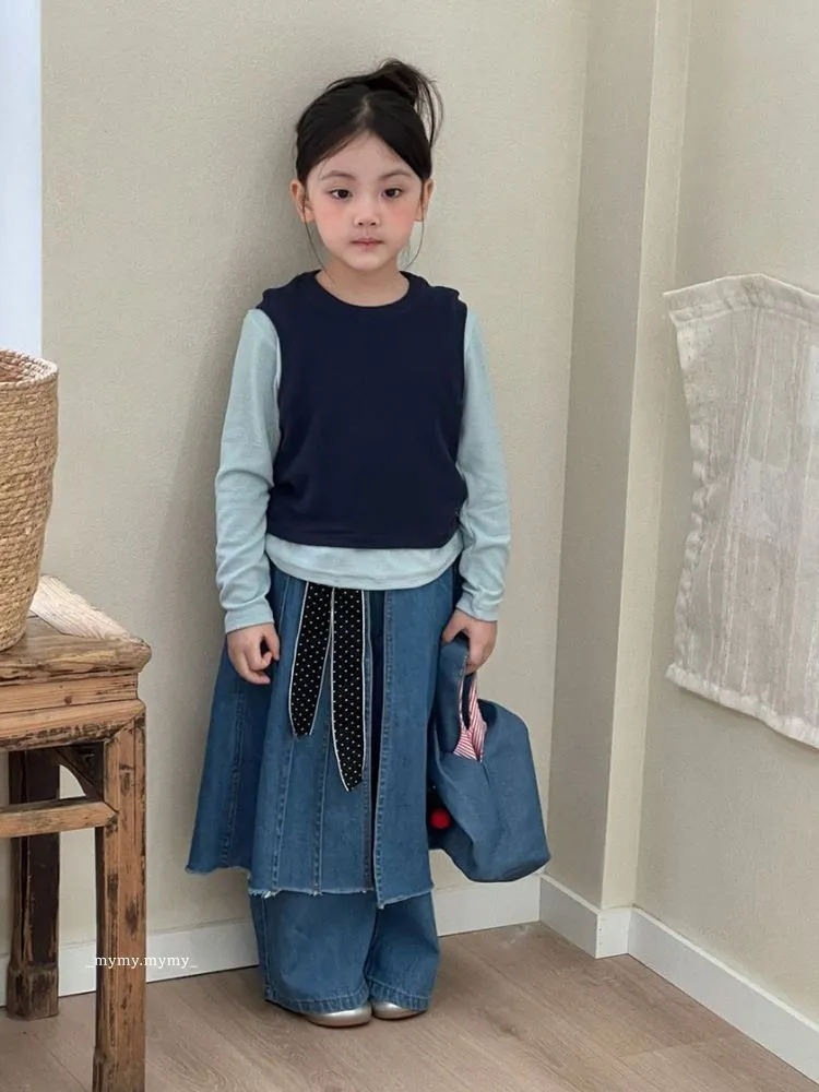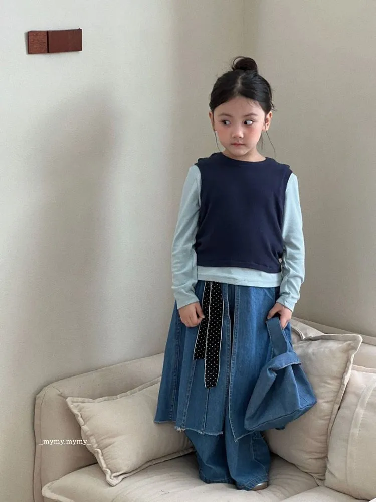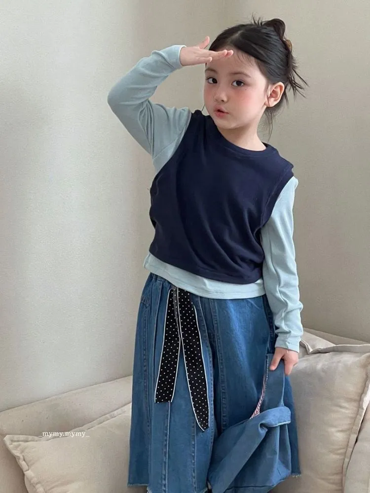 雲朵藍色系針織背心上衣+牛仔褲裙套裝組