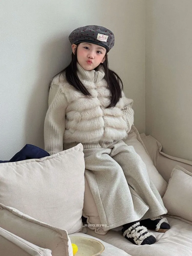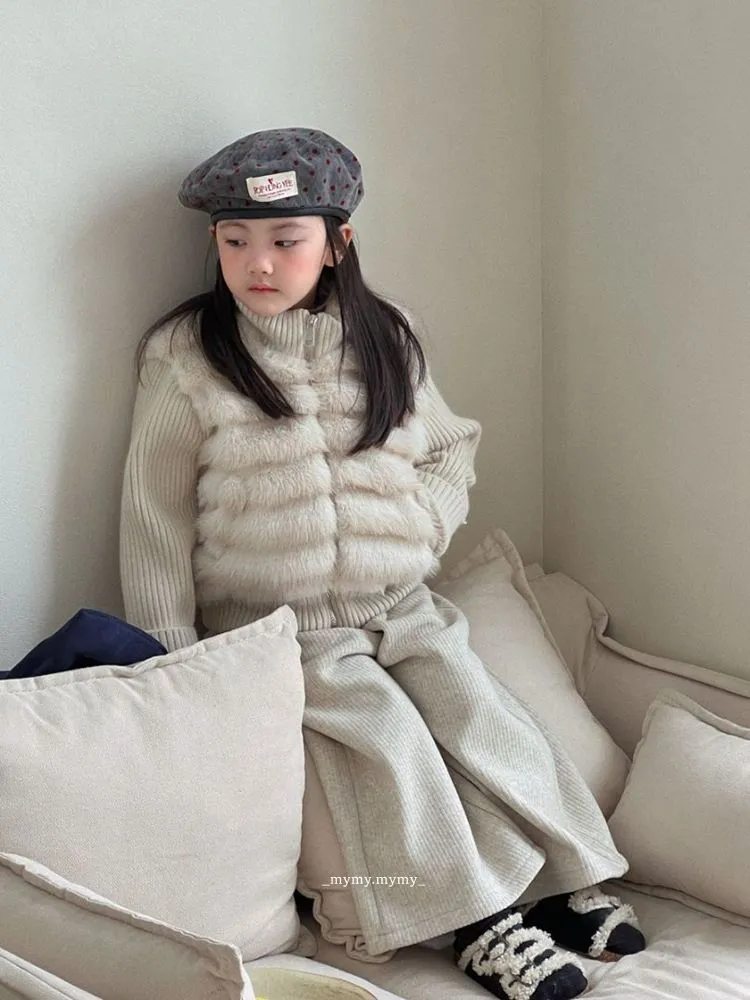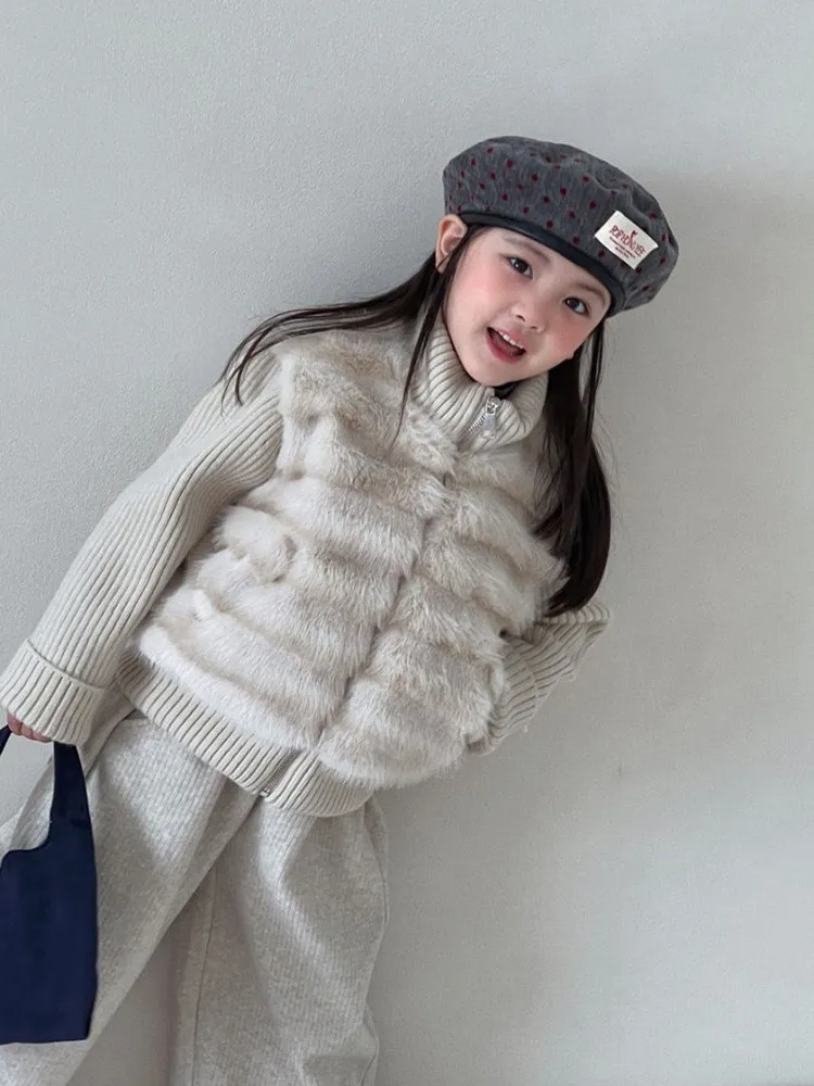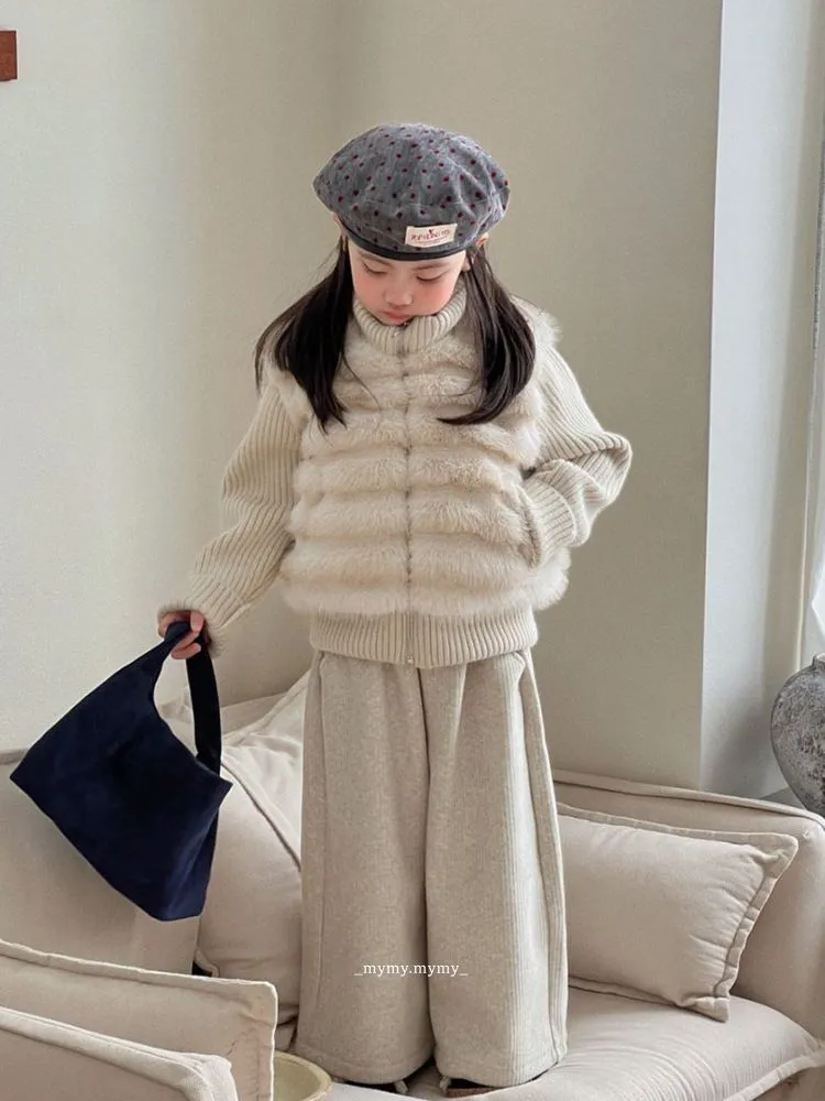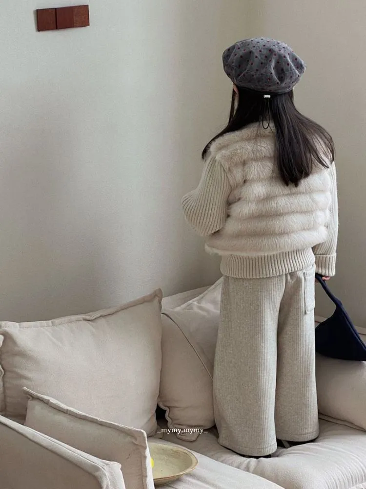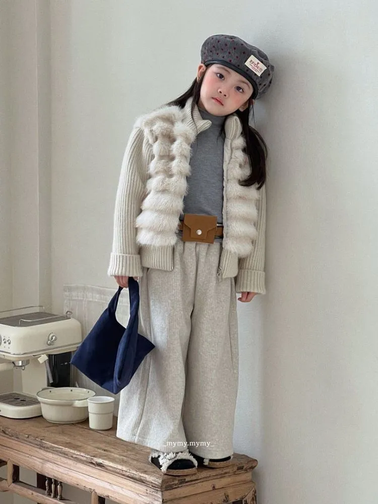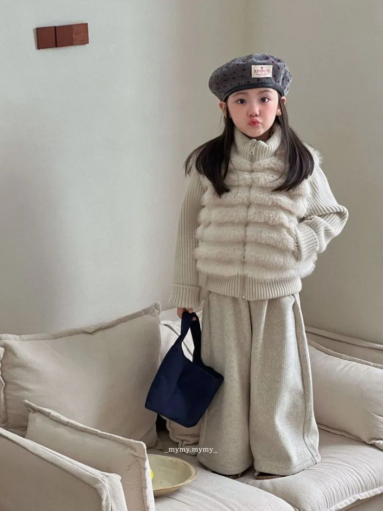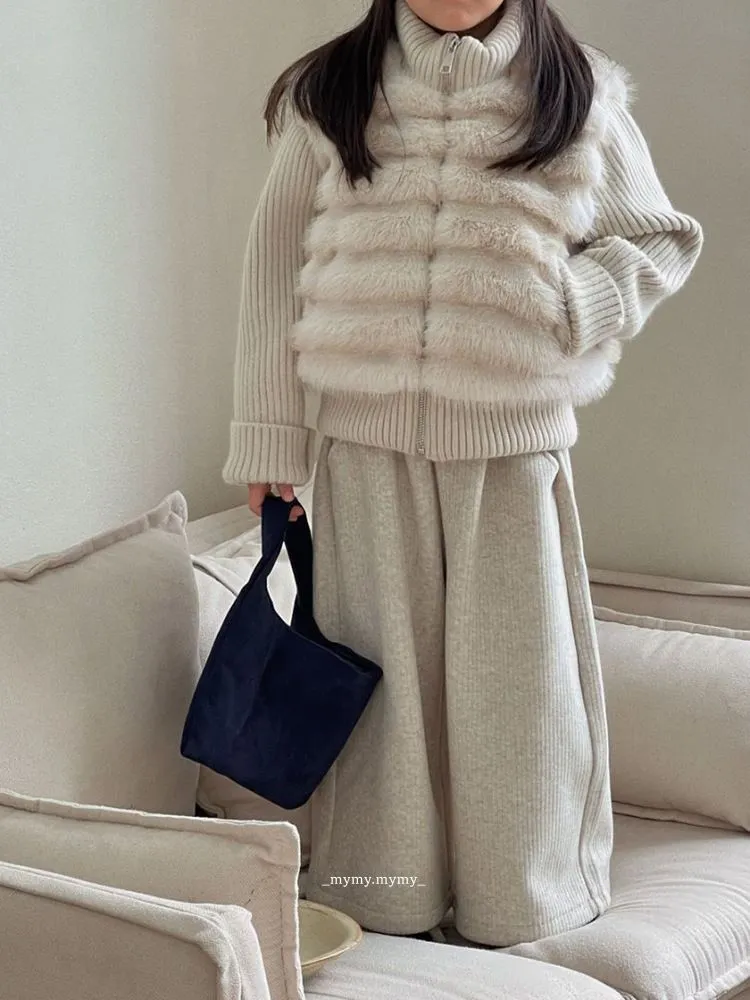 燕麥色毛茸茸針織夾棉外套+加絨休閒褲套裝組