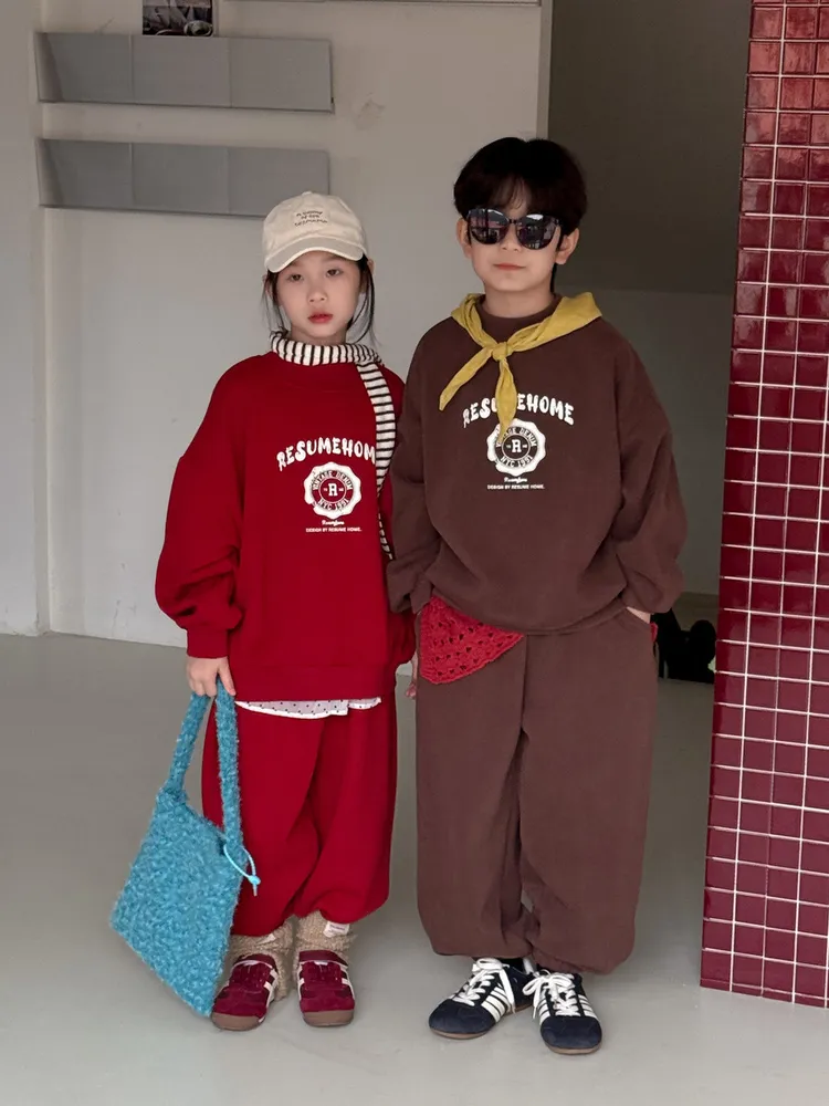 加厚英文字母寬鬆運動套裝組