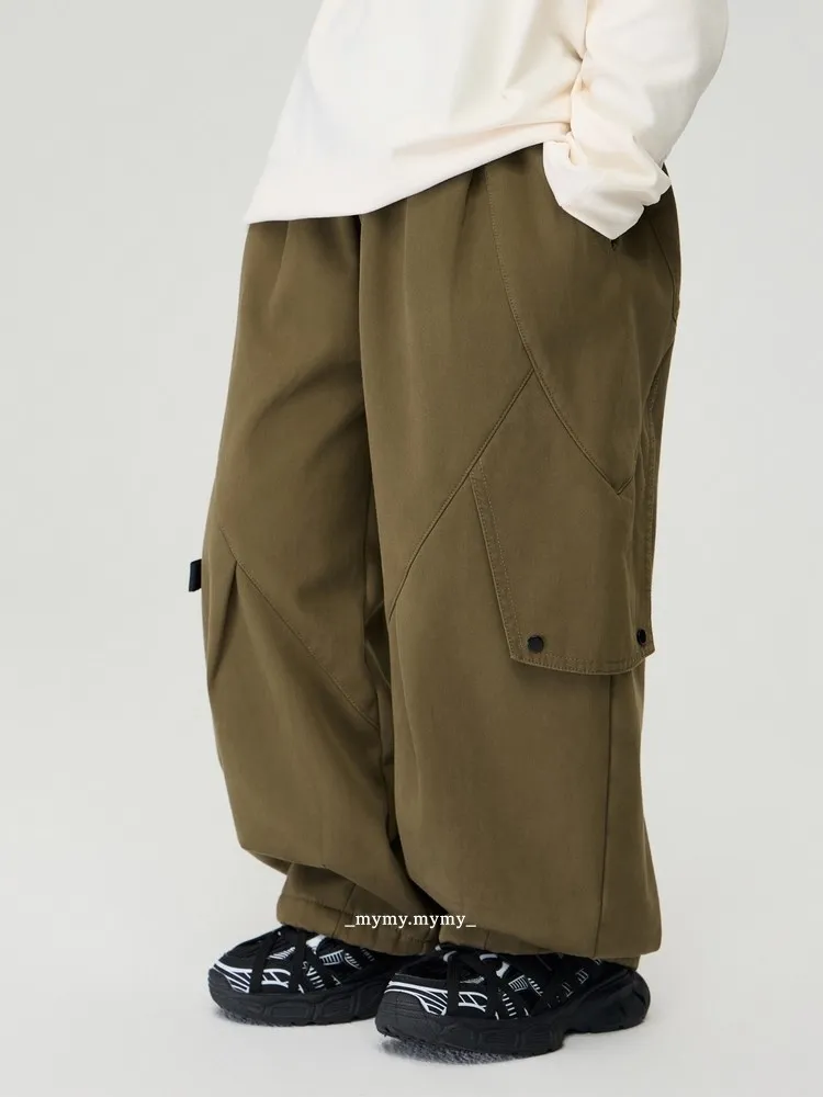 加絨寬版潮帥大口袋工裝褲