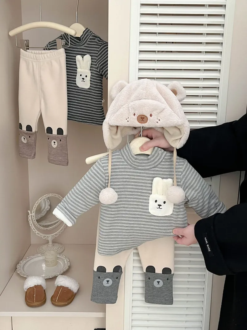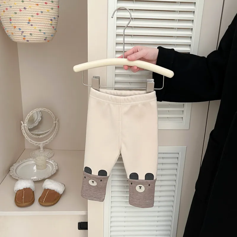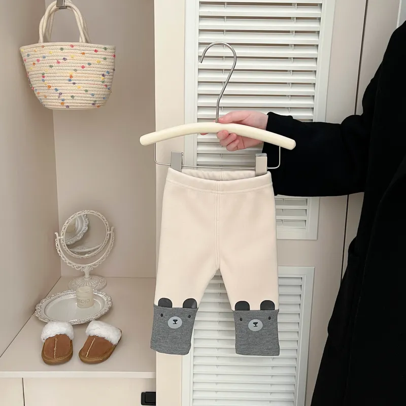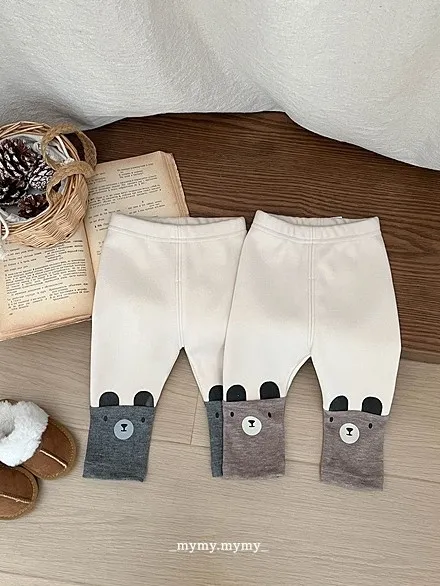 加厚棉拼接小熊褲管合身褲