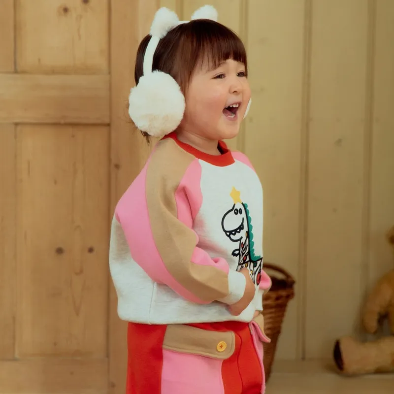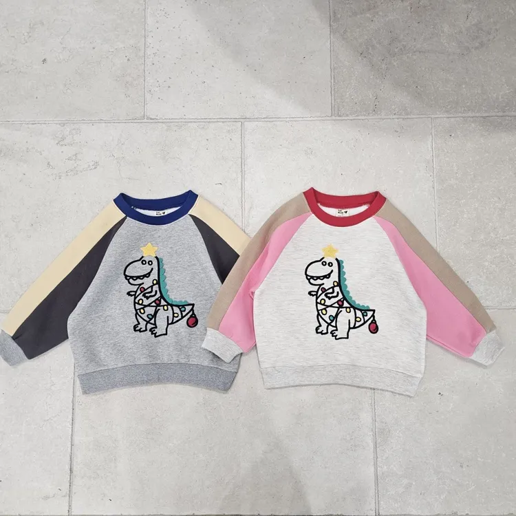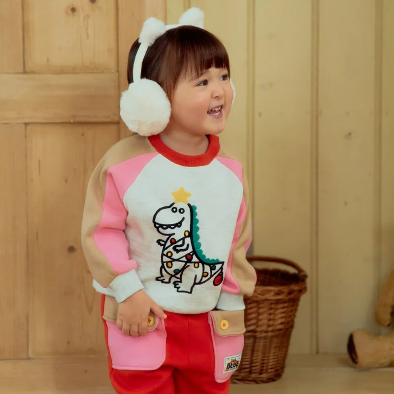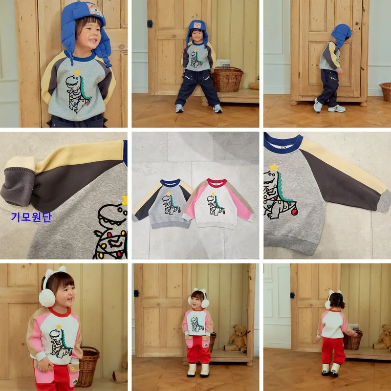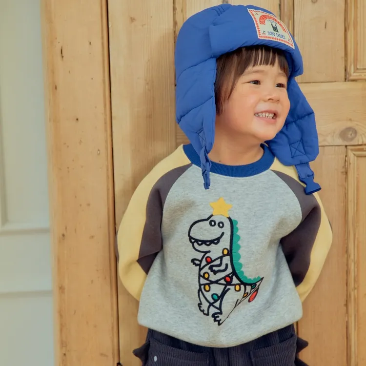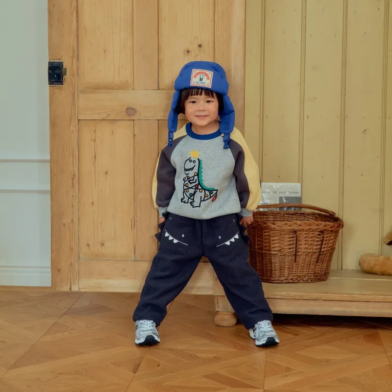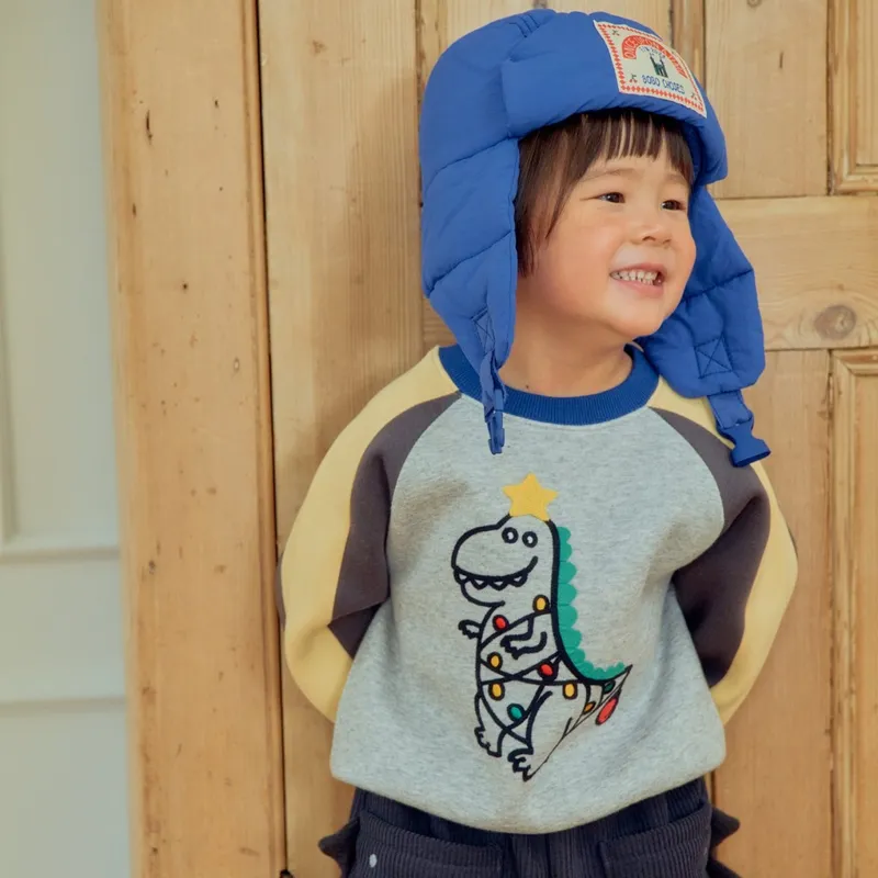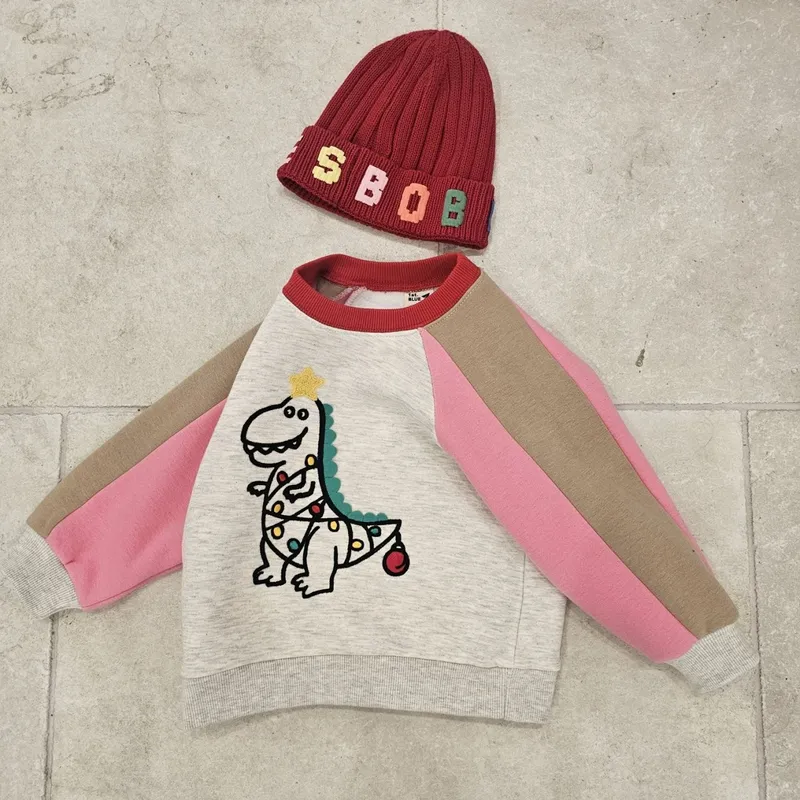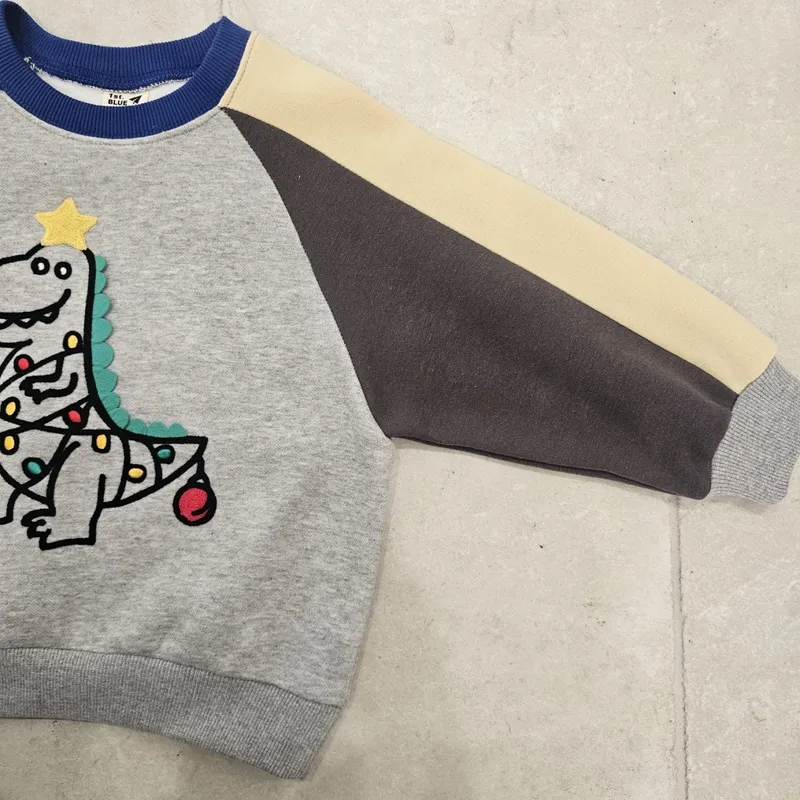 1ST BLUE|撞色袖聖誕恐龍印花棉tee