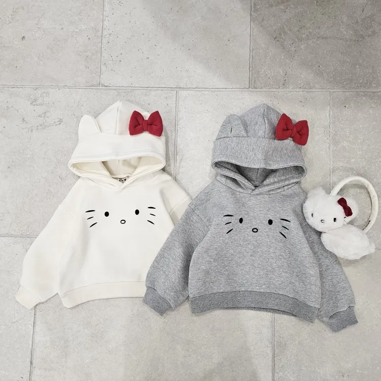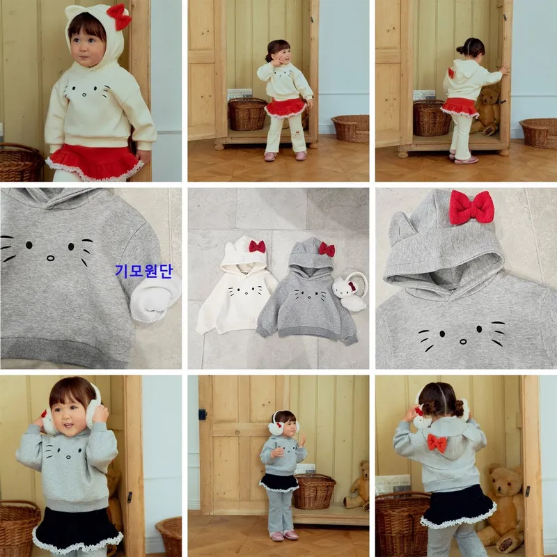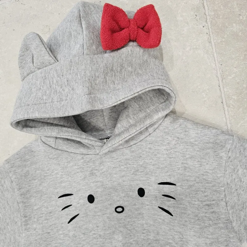 1ST BLUE|KITTY臉蝴蝶結連帽上衣