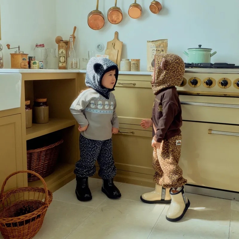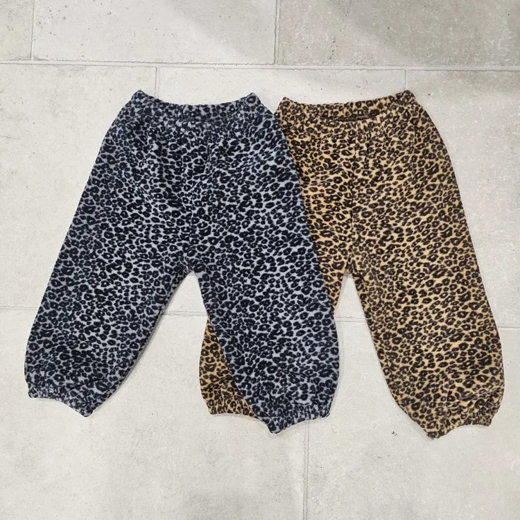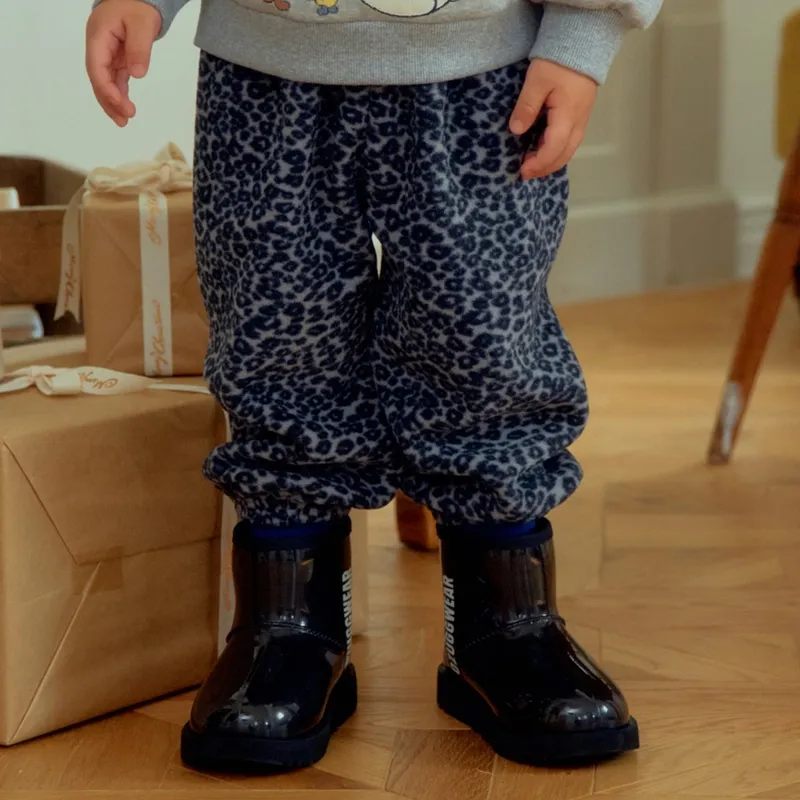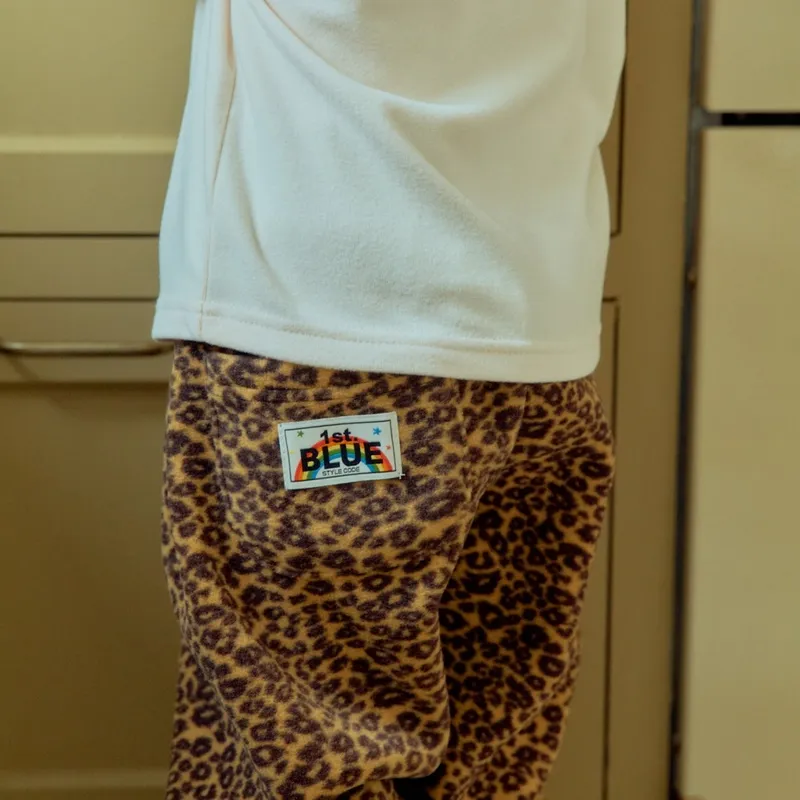 1ST BLUE|豹紋抓絨寬鬆束口褲