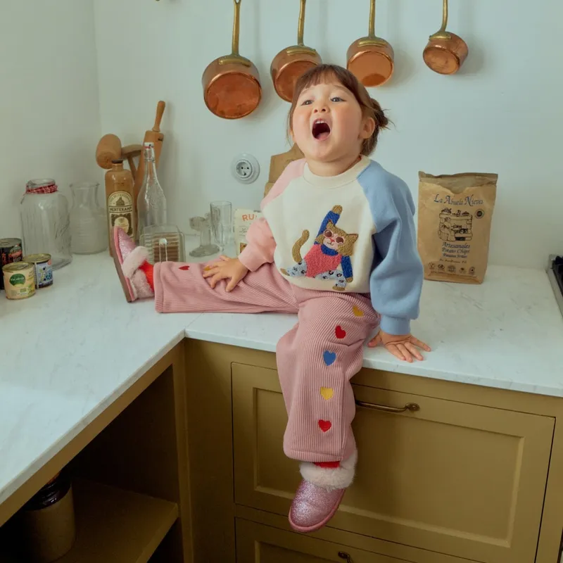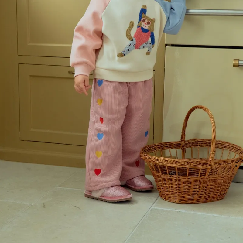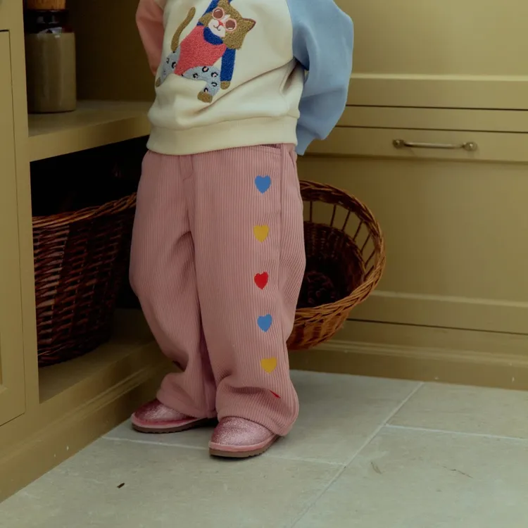 1ST BLUE|好多刺繡愛心燈芯絨直筒褲