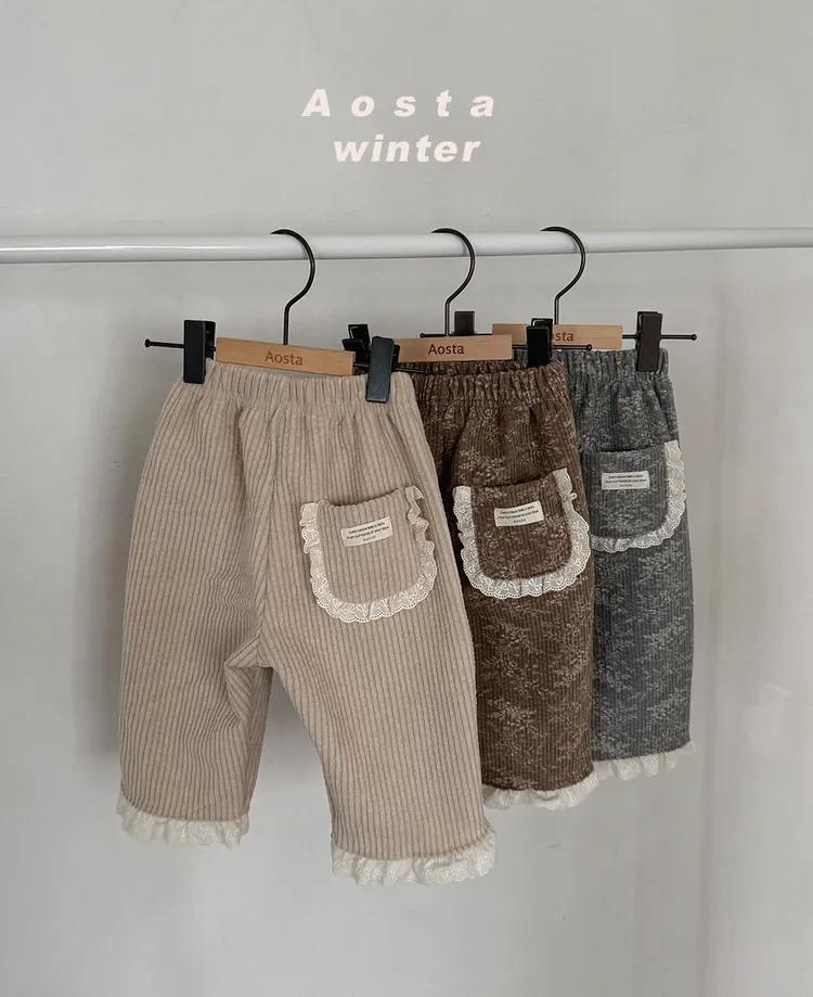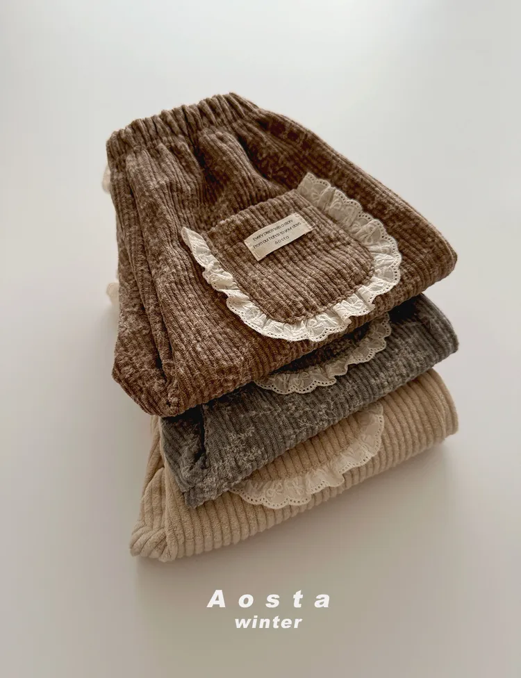 AOSTA|拼接蕾絲燈芯絨直筒褲