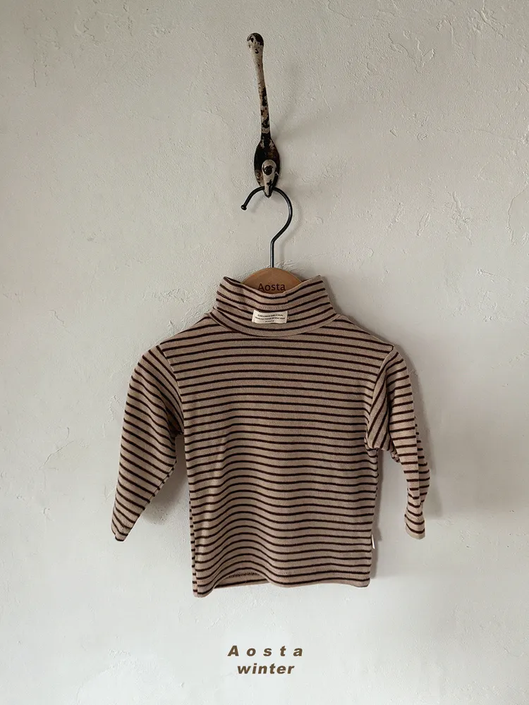 AOSTA|小字標細條紋高領上衣