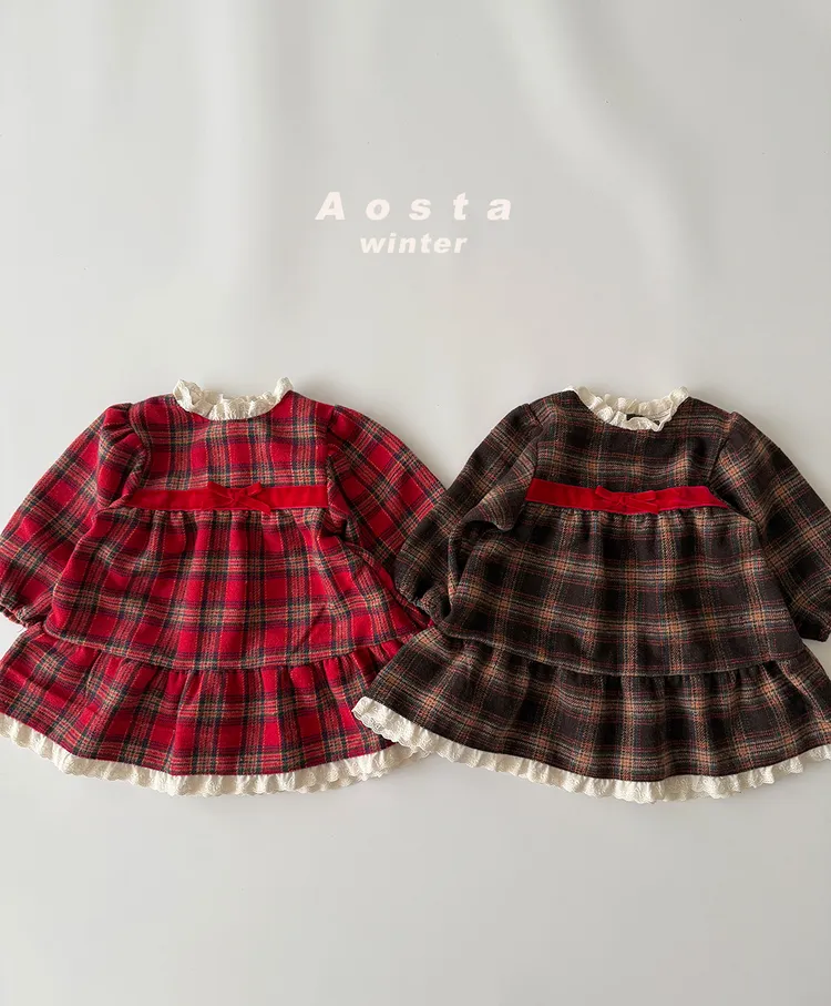 AOSTA|古典格紋花邊洋裝