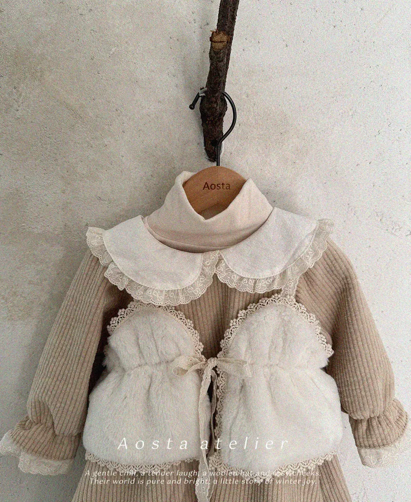 AOSTA|搭配款加絨蕾絲緞帶上衣