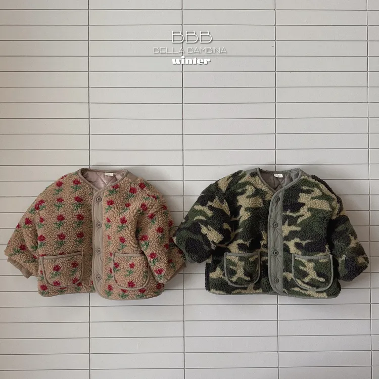 BBB|滿版圖案泰迪熊毛絨開扣外套