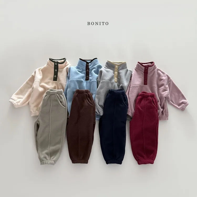 BONITO|絨布立領開扣上衣+寬鬆慢跑褲套裝組