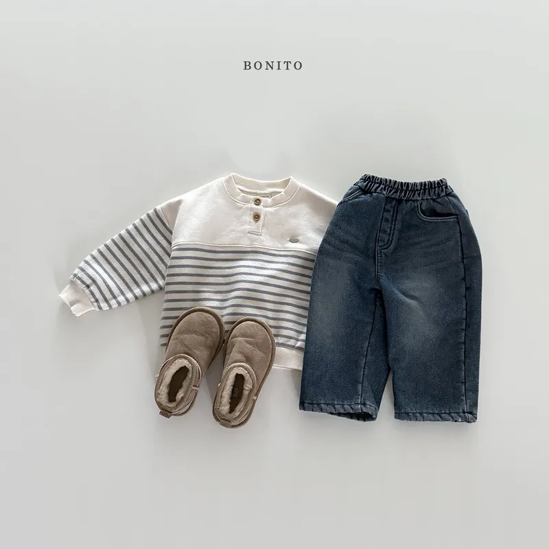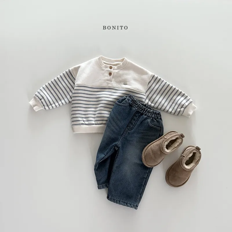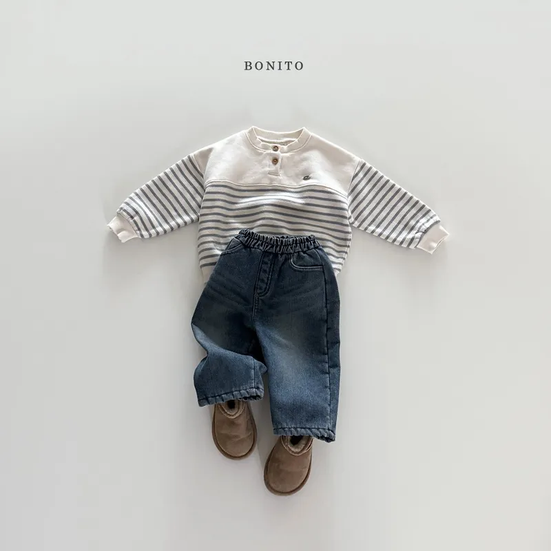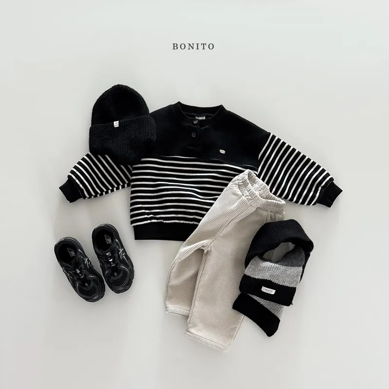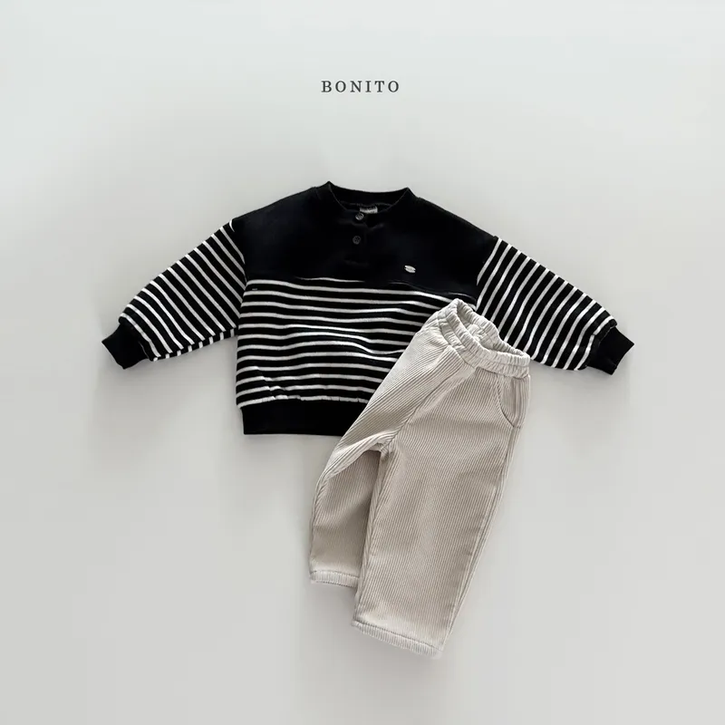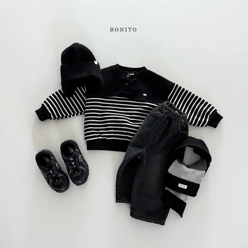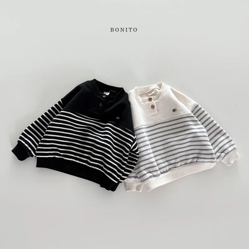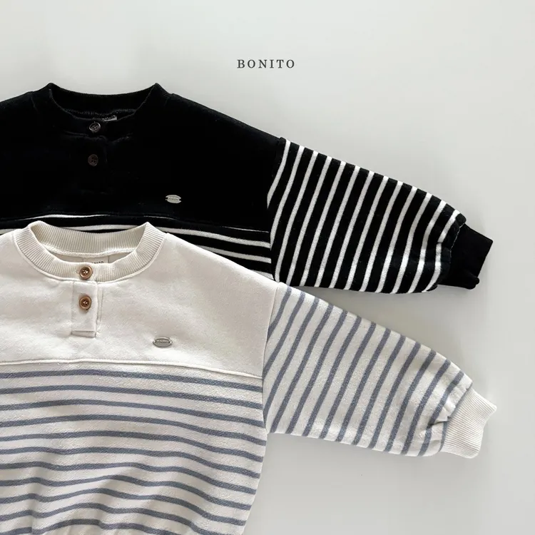 BONITO|開扣拚色條紋小字標棉tee