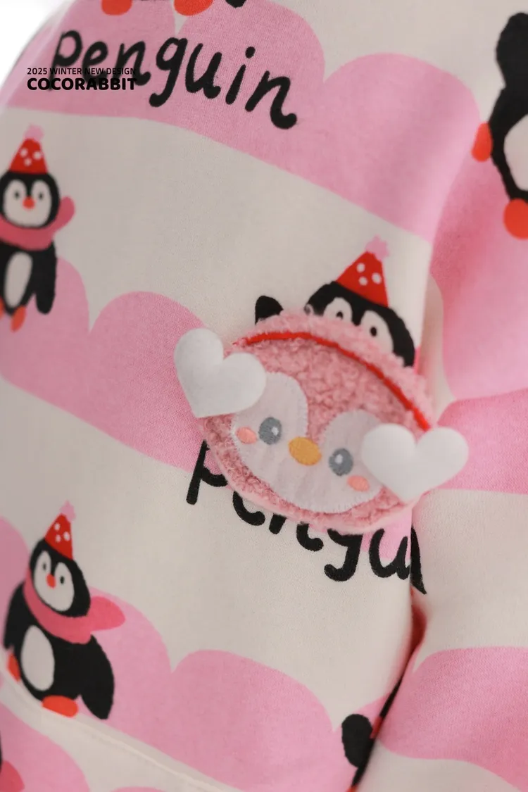 COCO兔子家|滿滿小企鵝印花連帽上衣