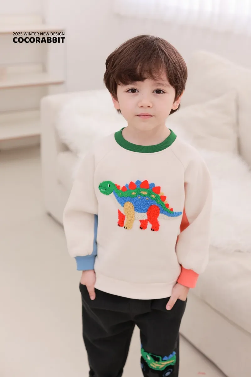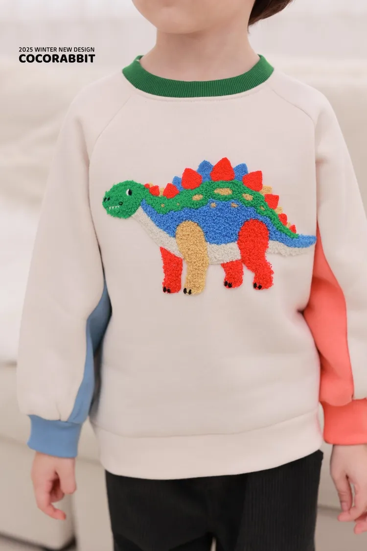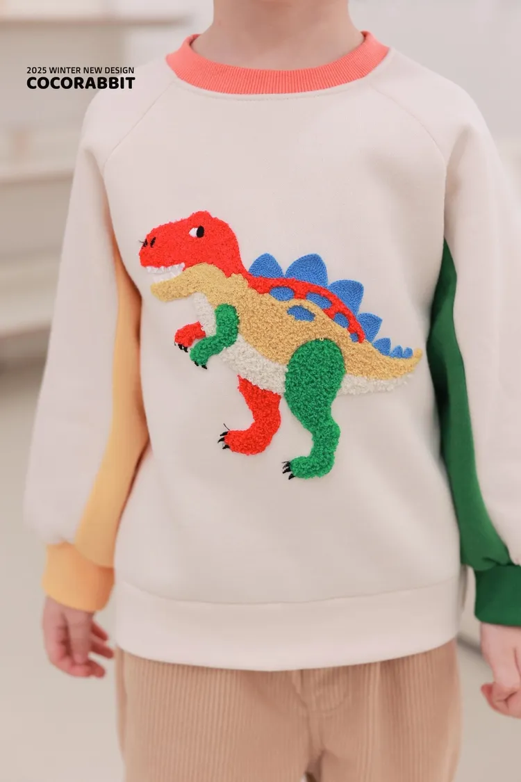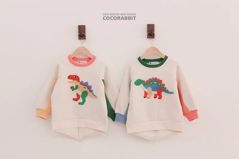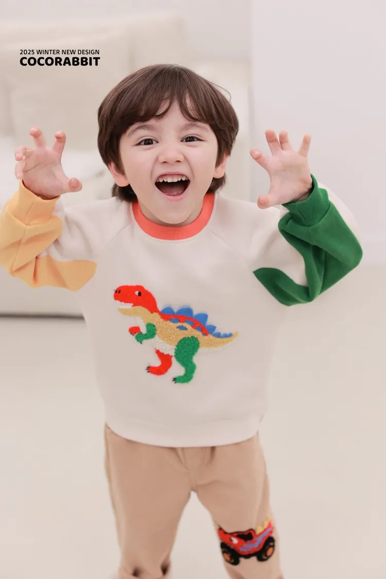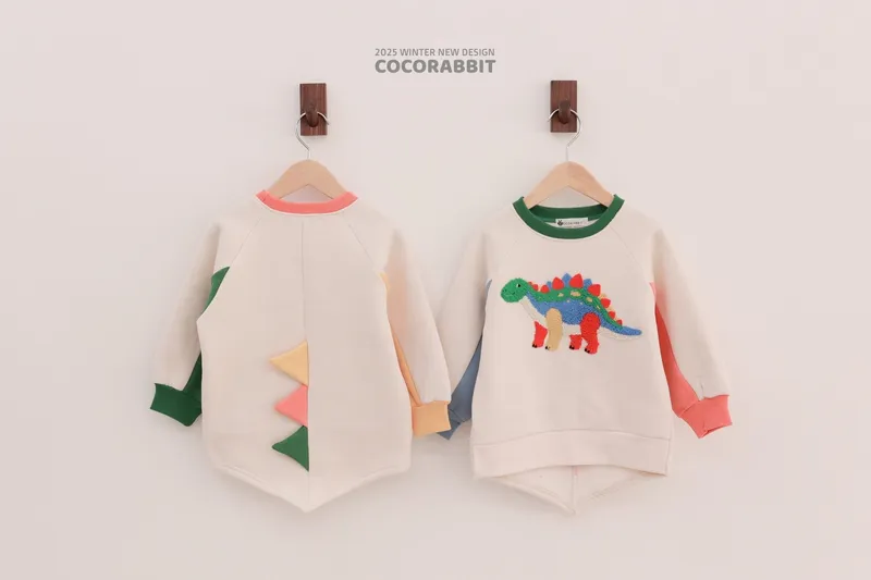 COCO兔子家|毛絨恐龍撞色袖長版上衣