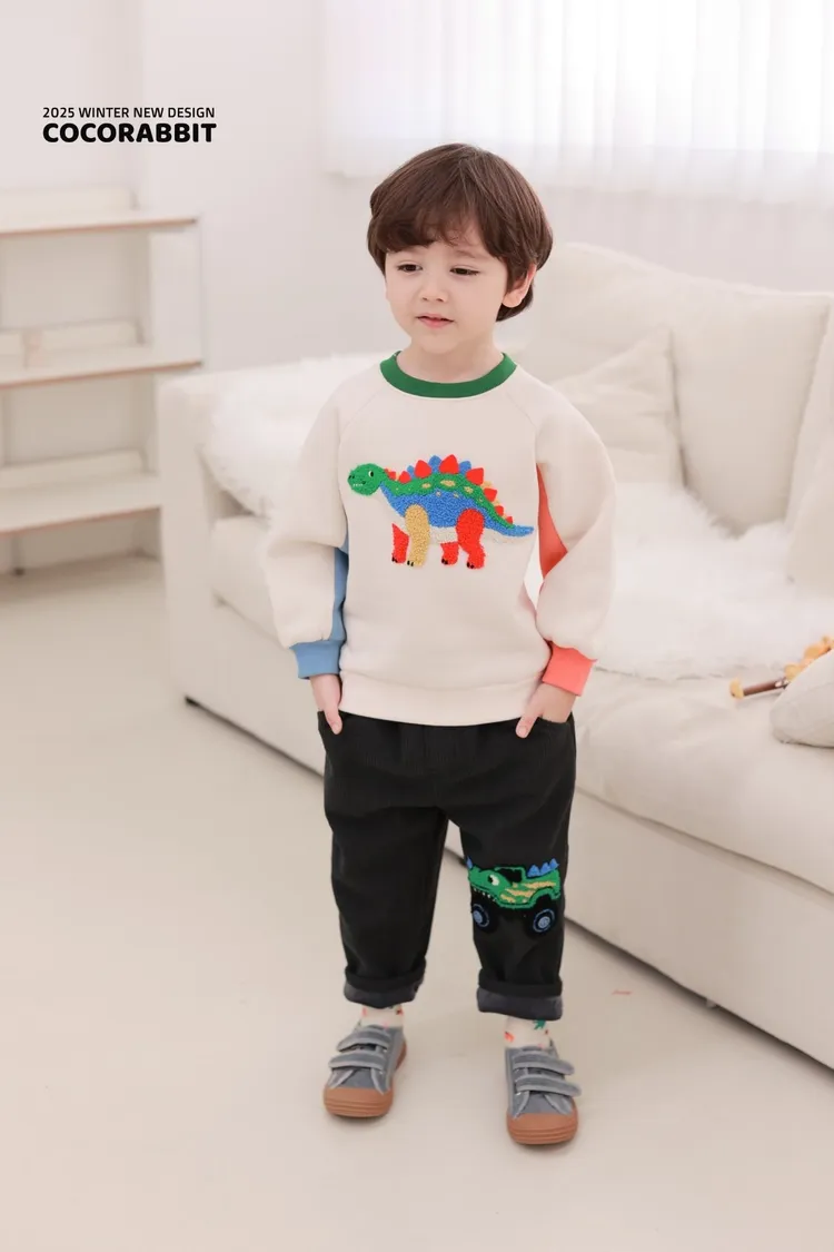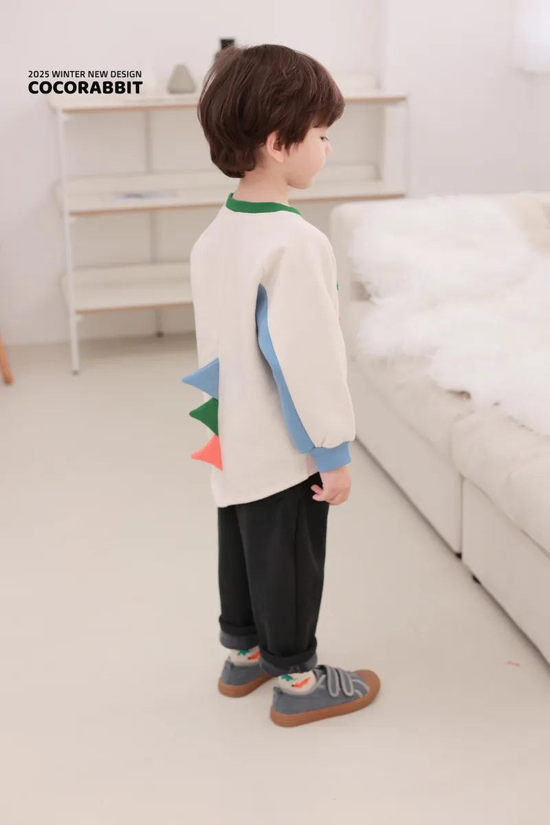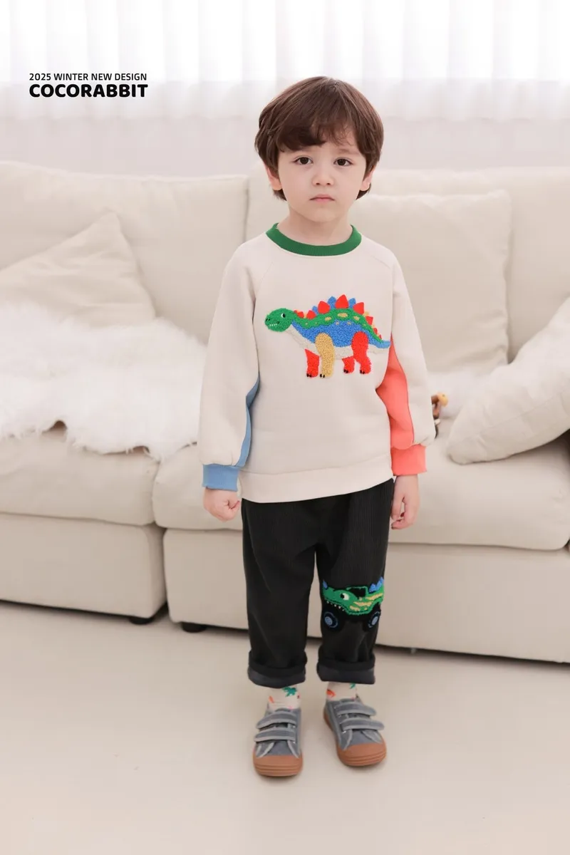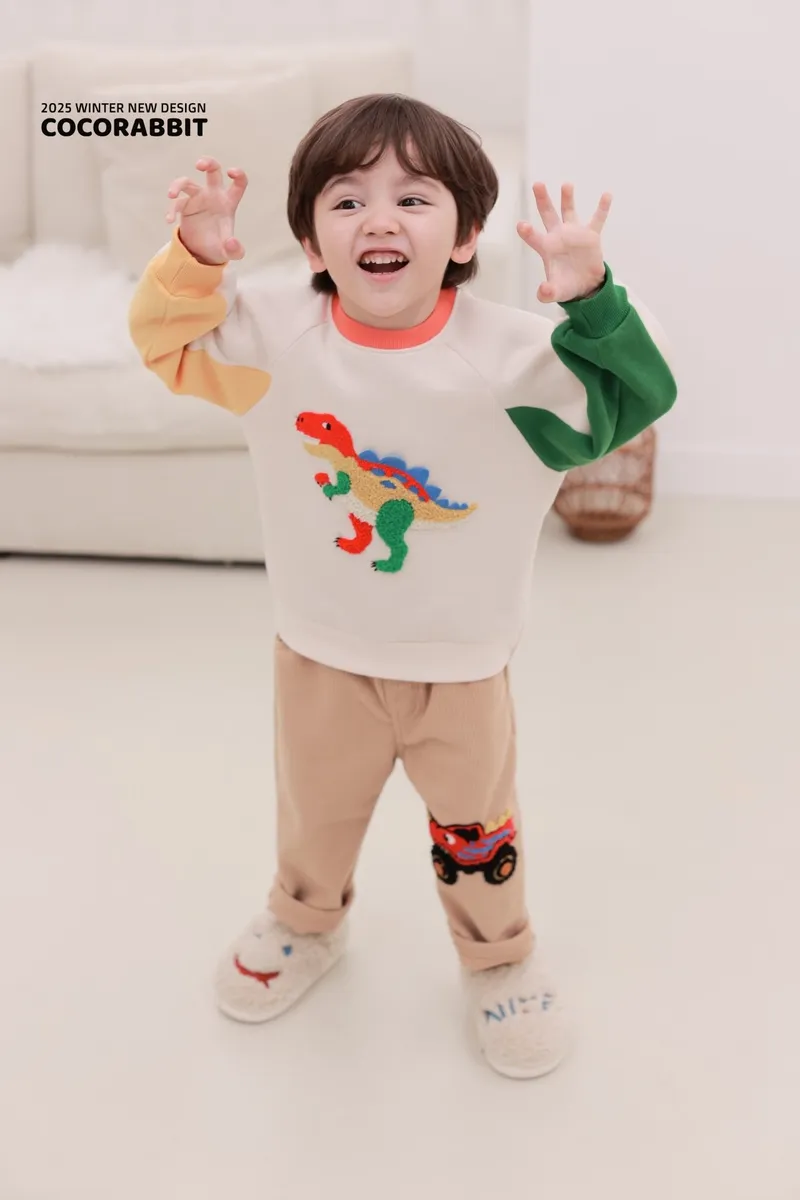 COCO兔子家|毛絨恐龍撞色袖長版上衣
