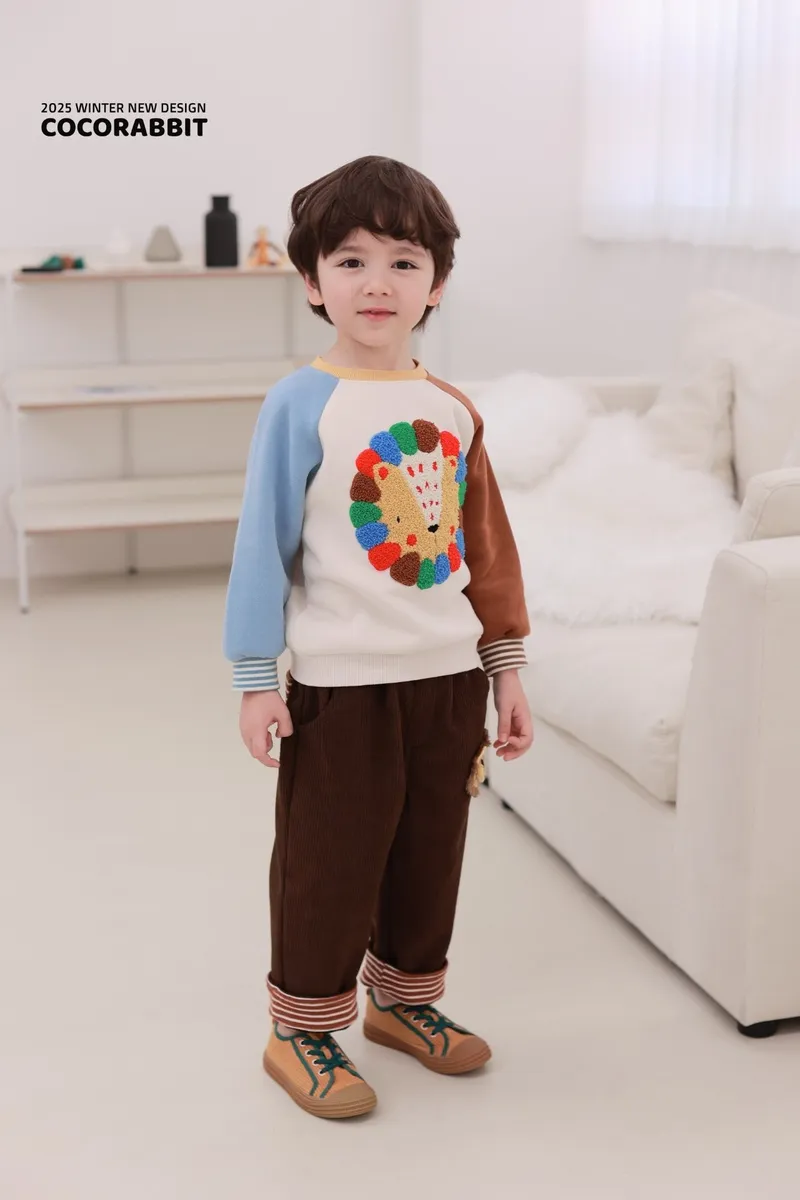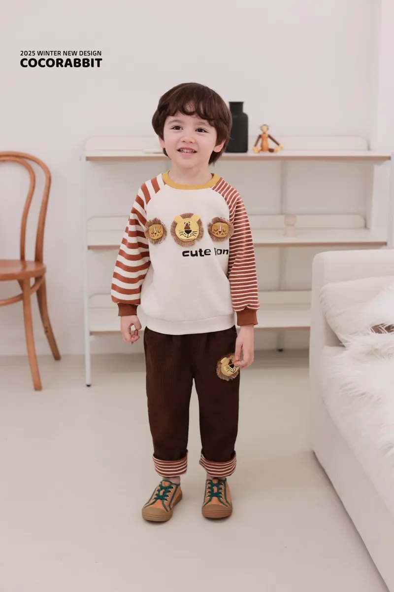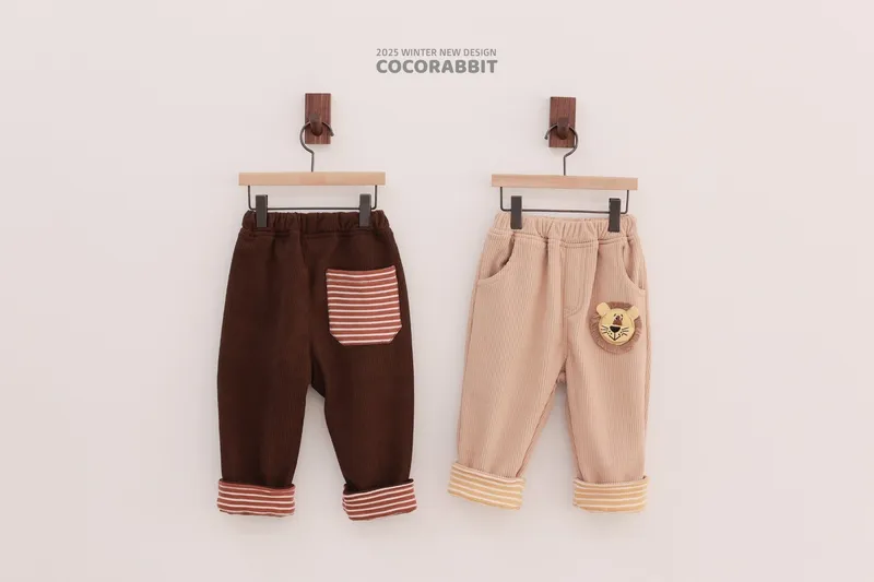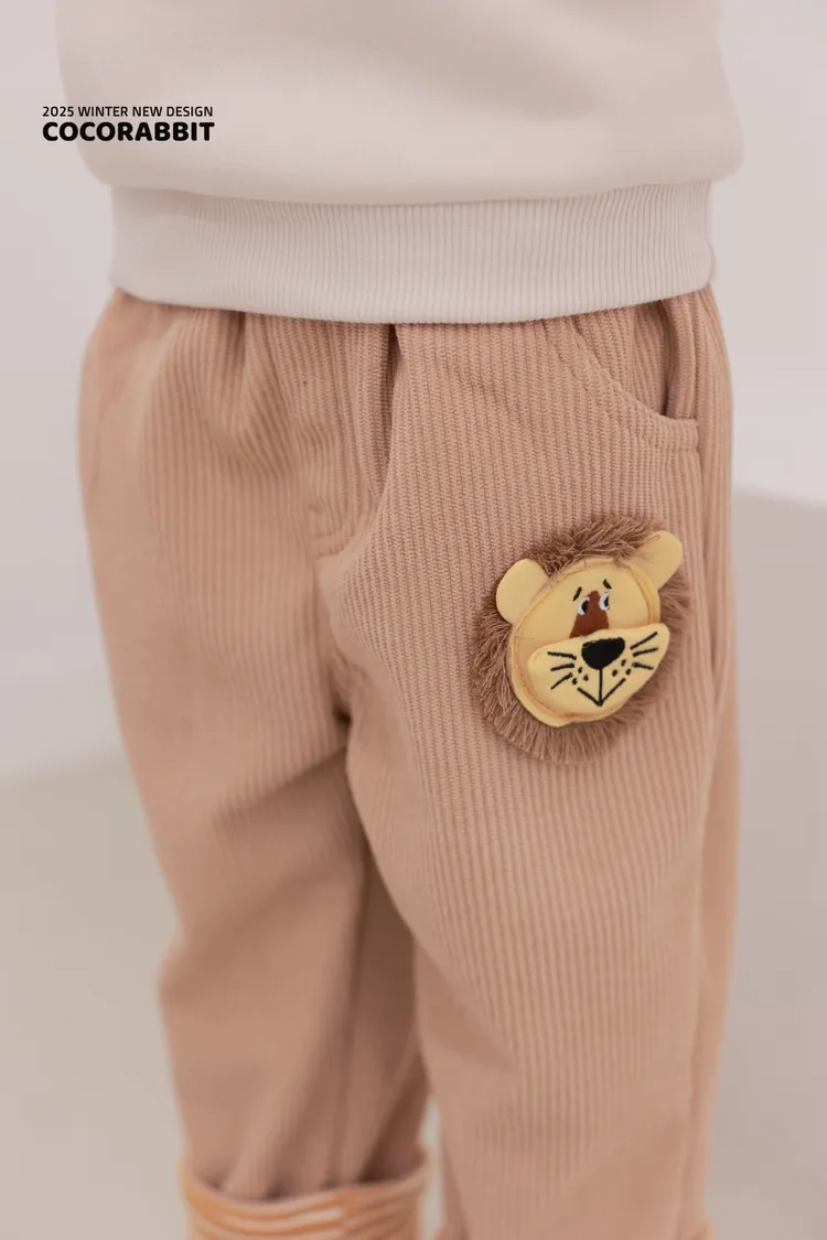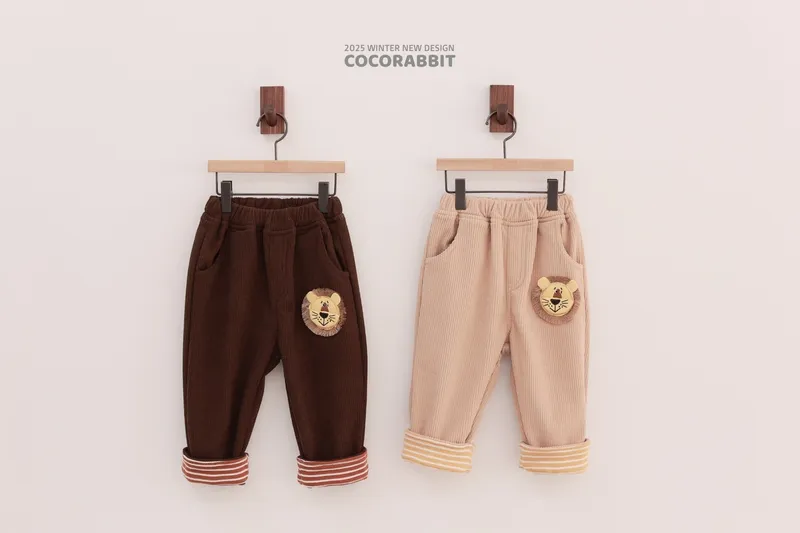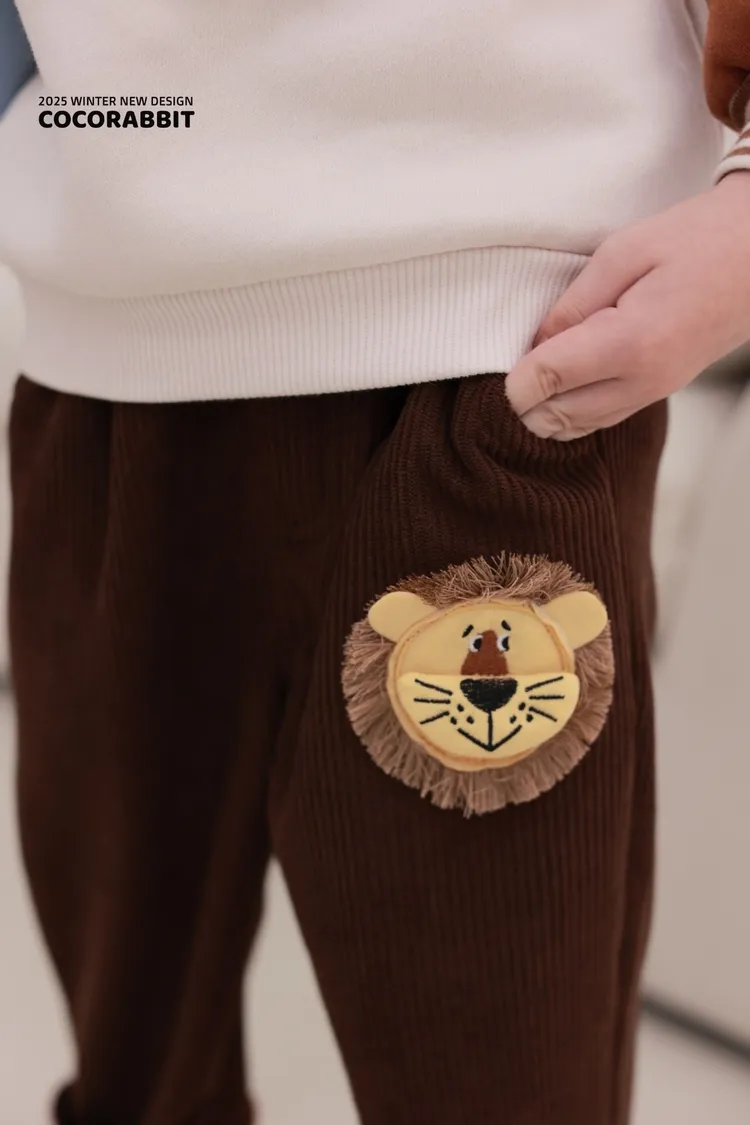 COCO兔子家|小獅子圖標彈性坑條褲