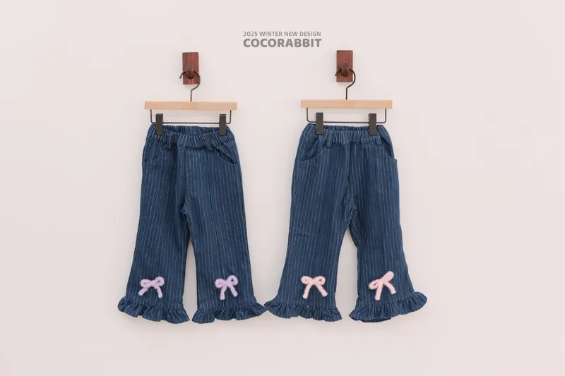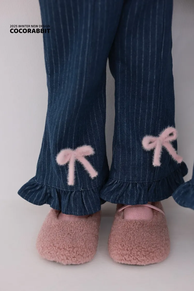 COCO兔子家|毛茸茸緞帶直條紋牛仔喇叭褲
