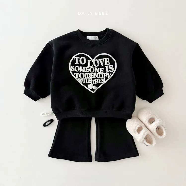 DAILY BEBE|愛心英文印花上衣+喇叭褲棉質套裝組