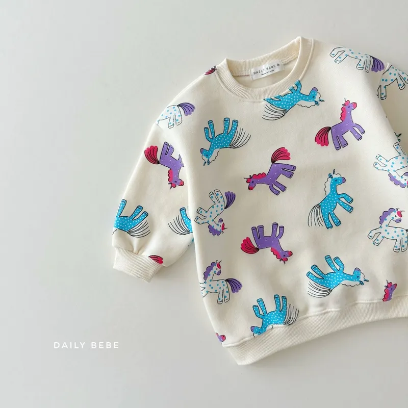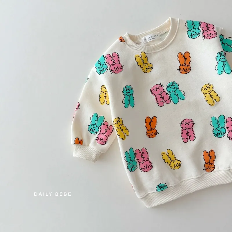 DAILY BEBE|滿版彩色印花圖案長版棉tee