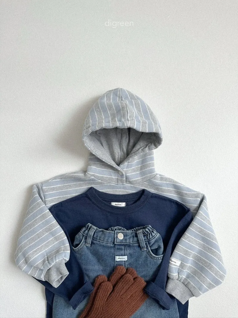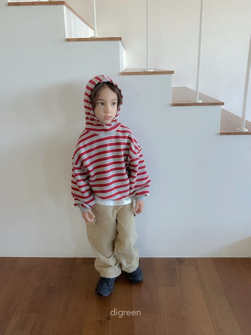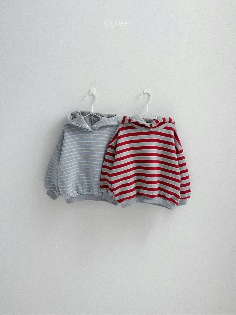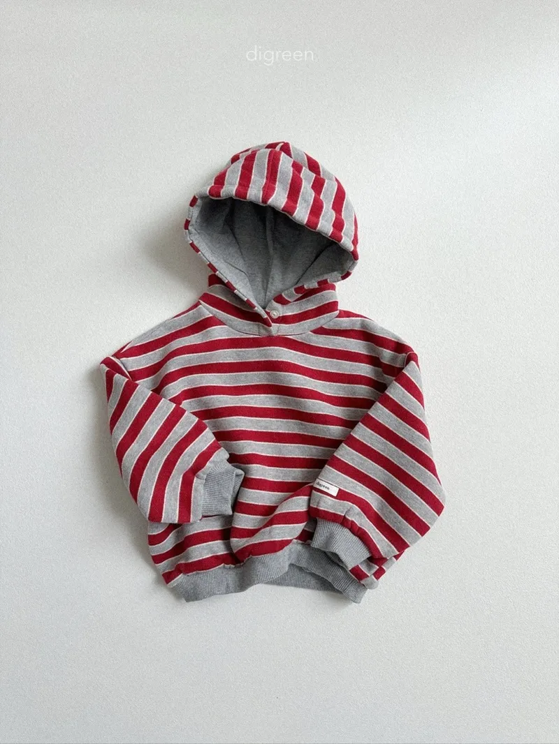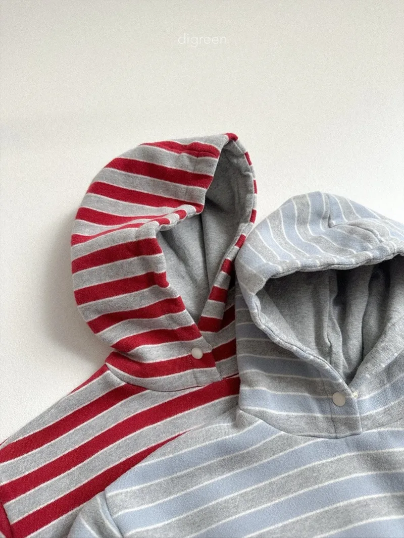 DIGREEN|撞色條紋帶釦連帽棉tee