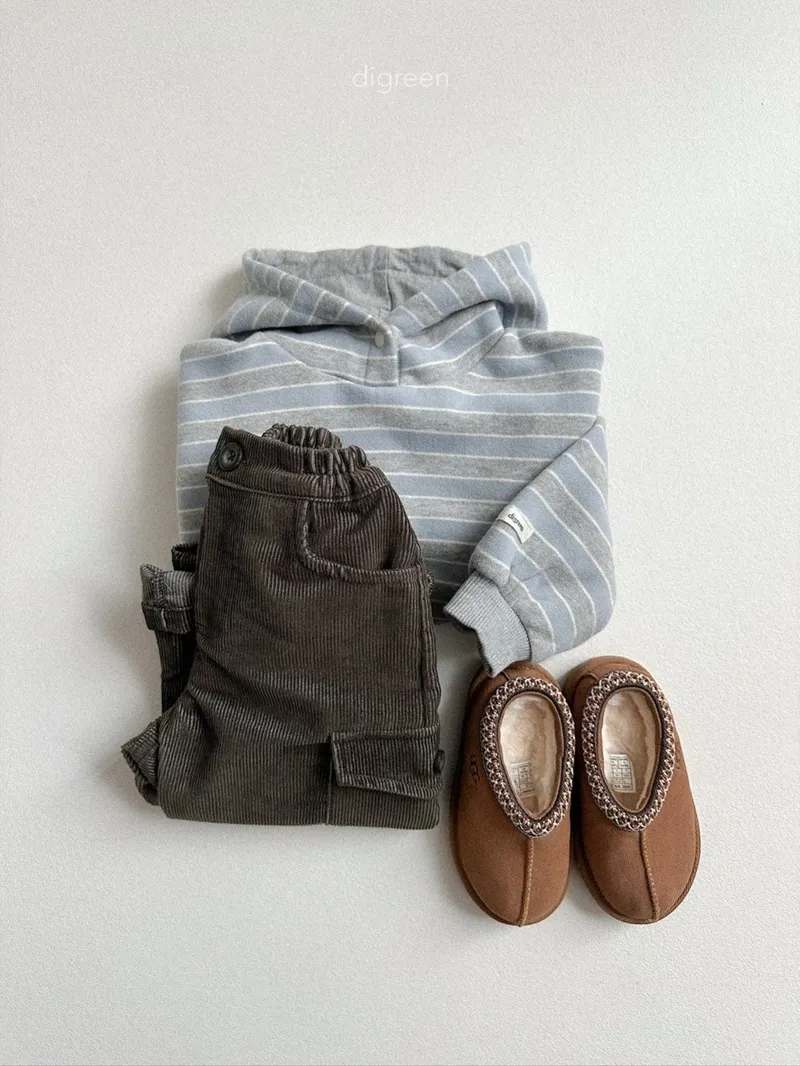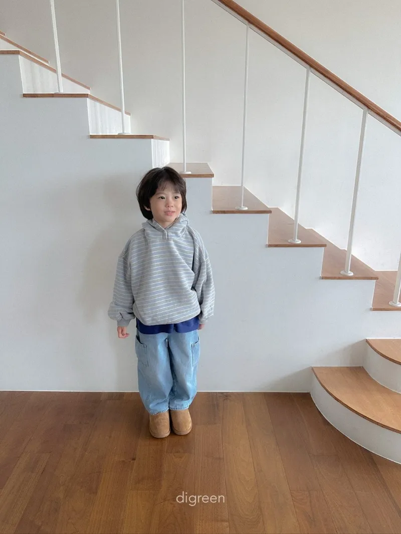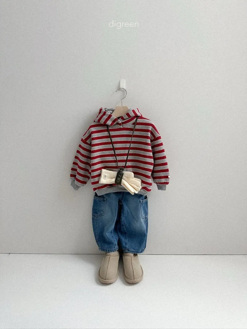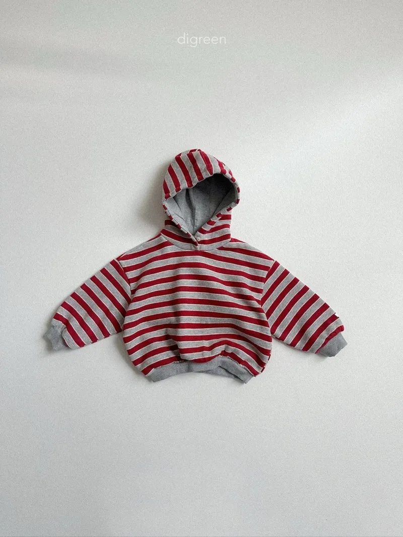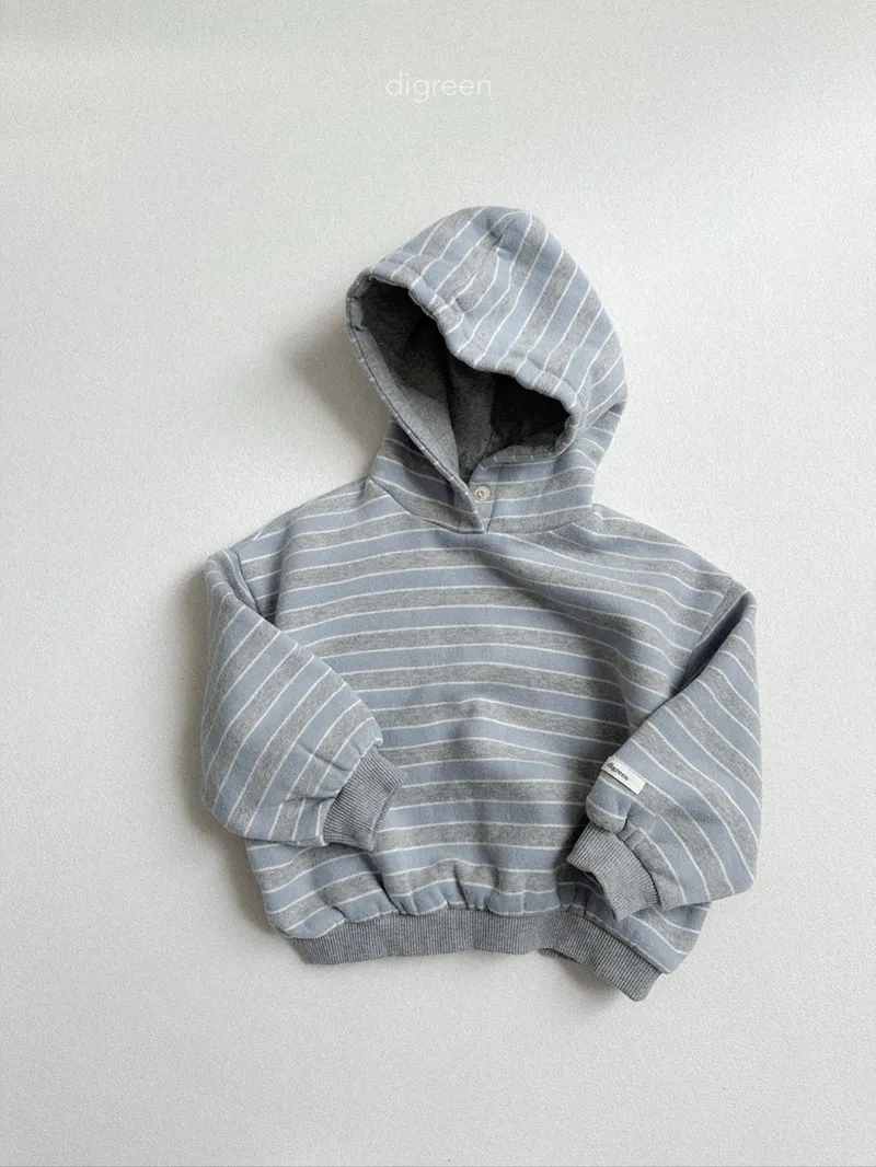 DIGREEN|撞色條紋帶釦連帽棉tee