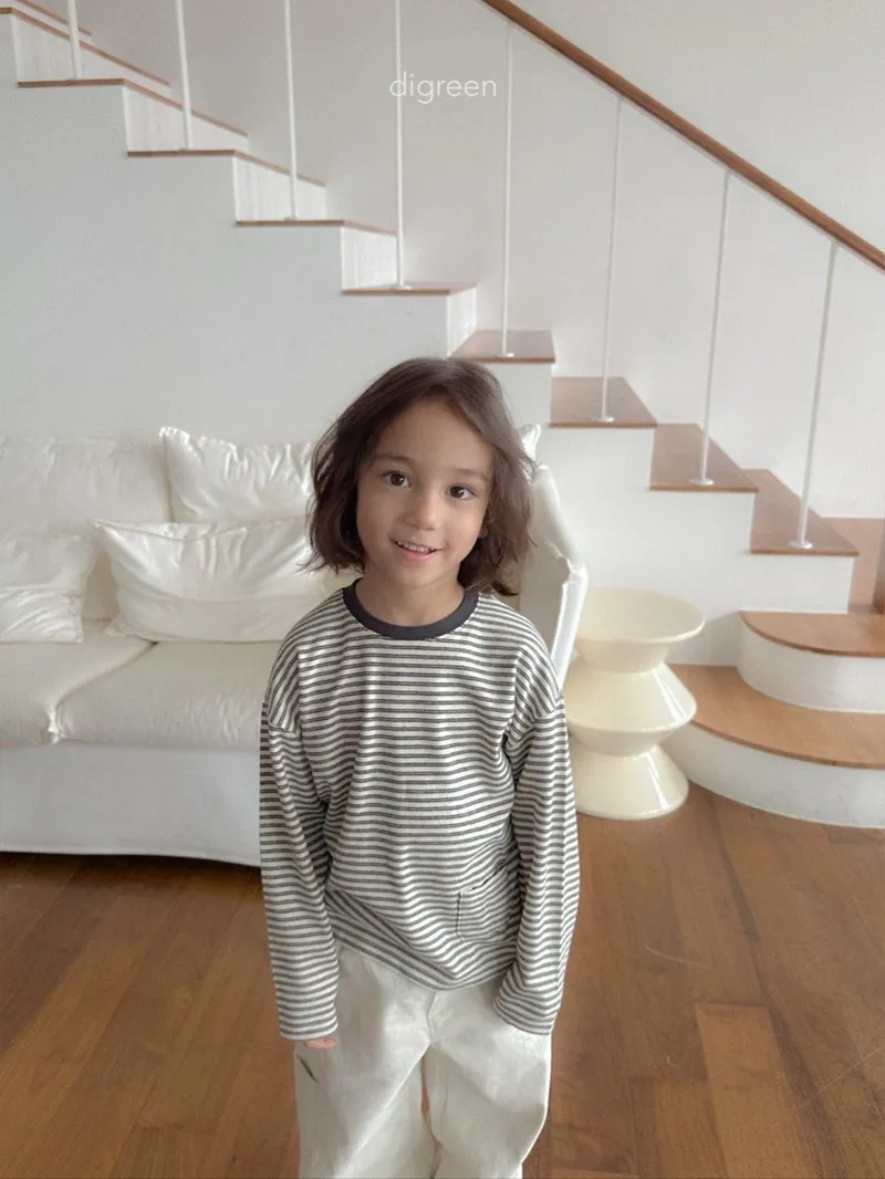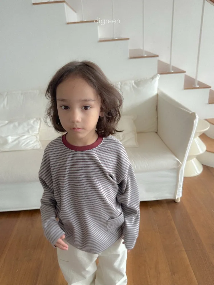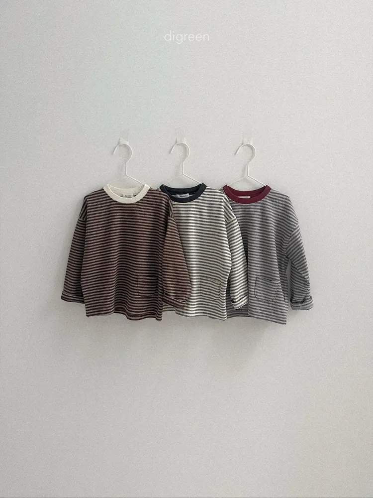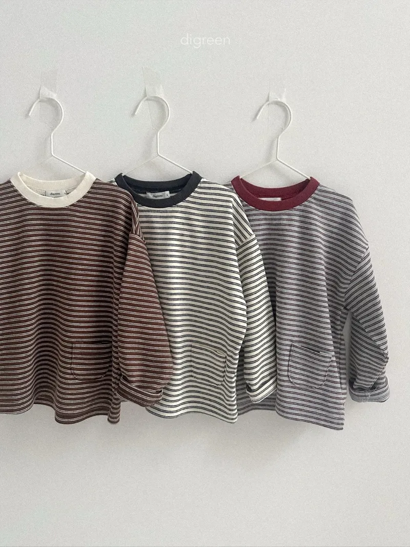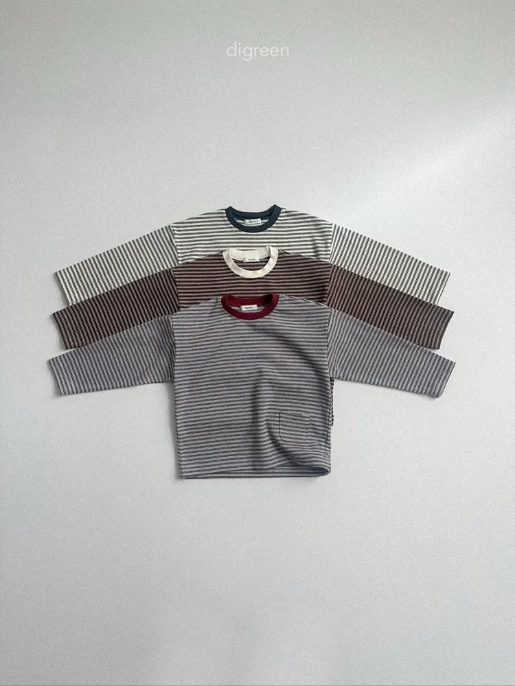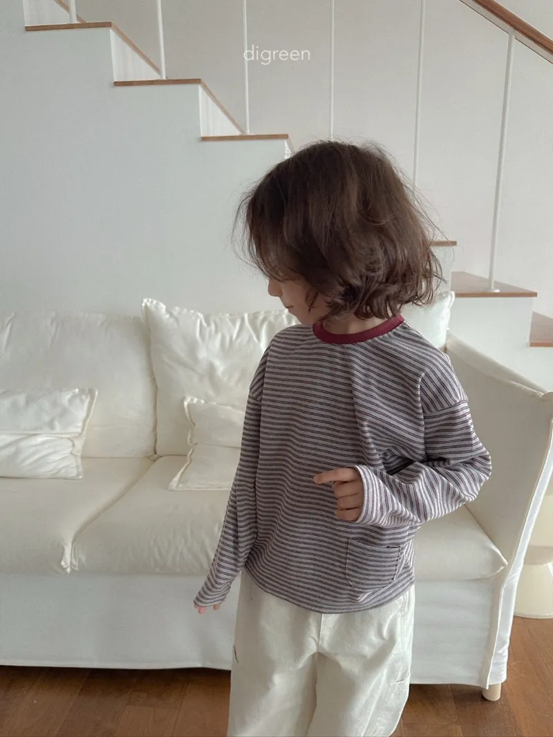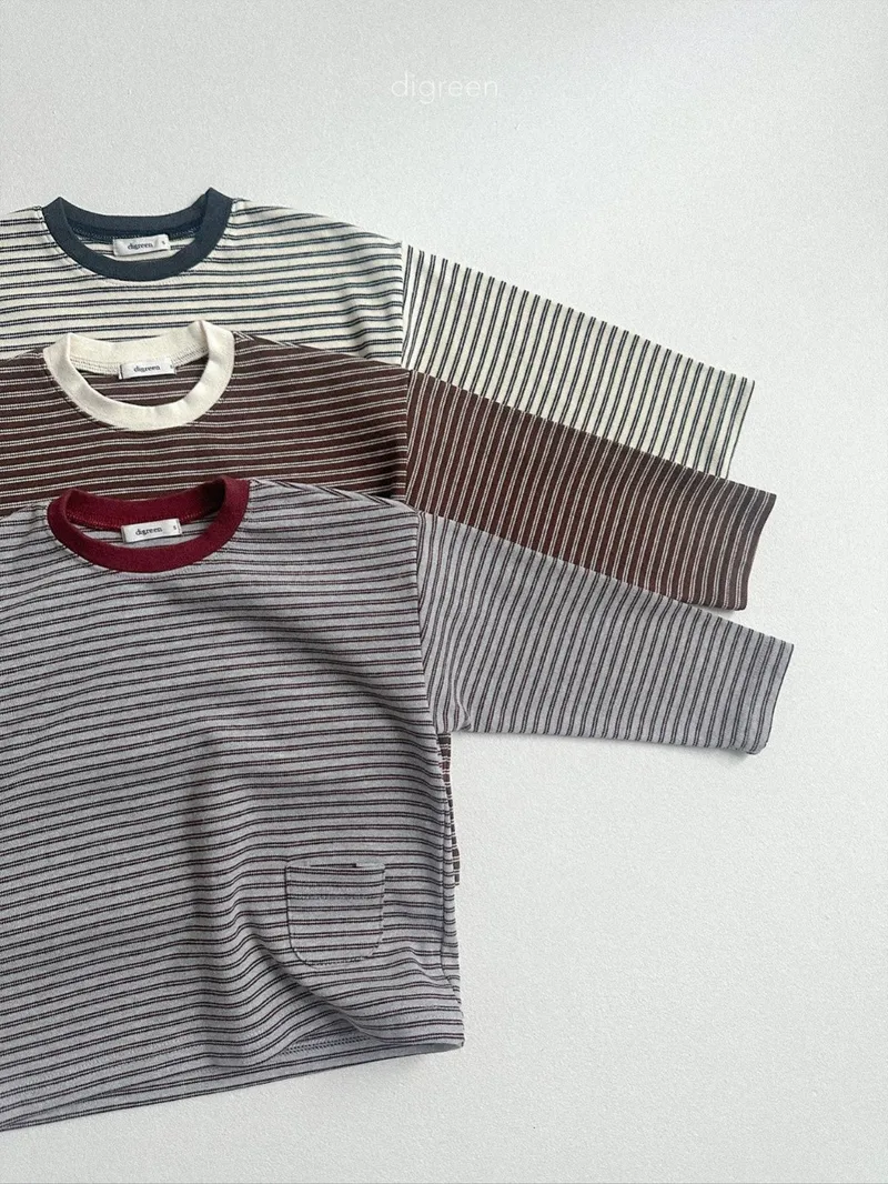 DIGREEN|厚布撞色小口袋條紋寬鬆上衣