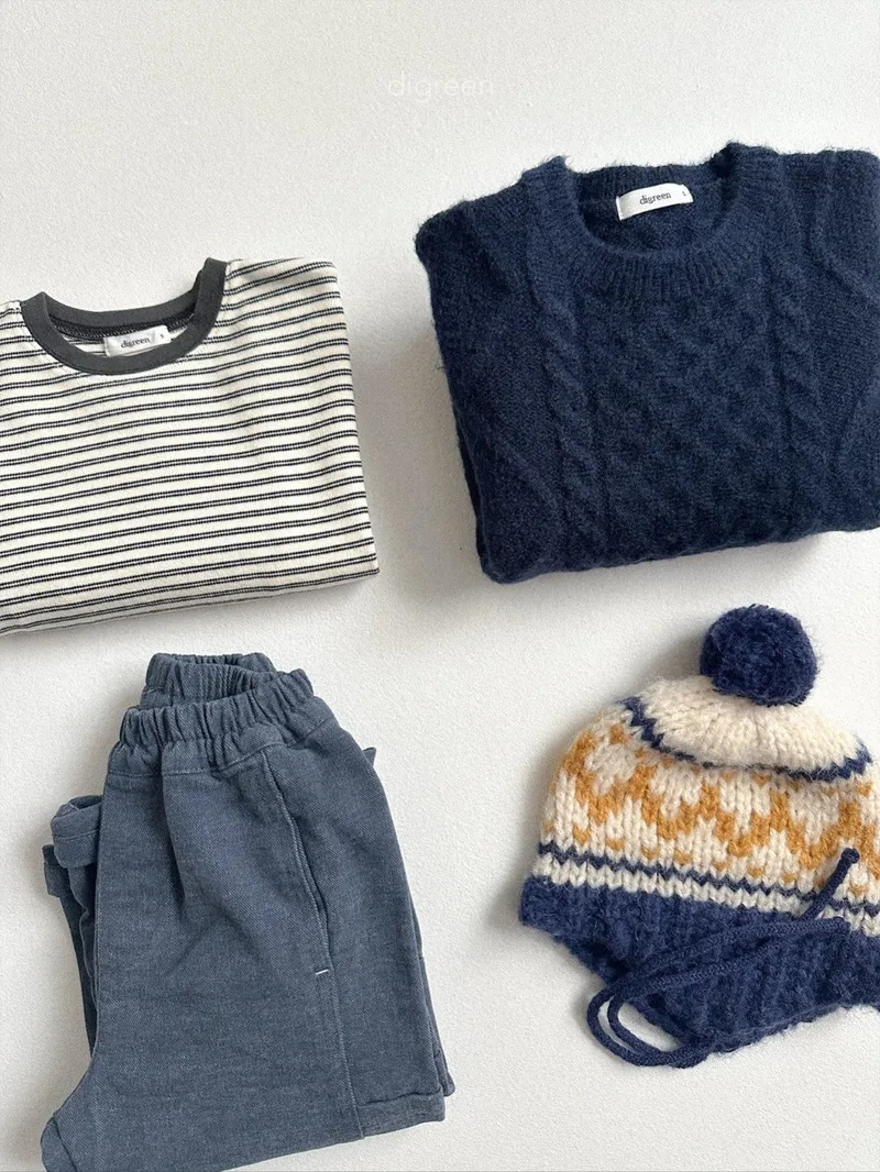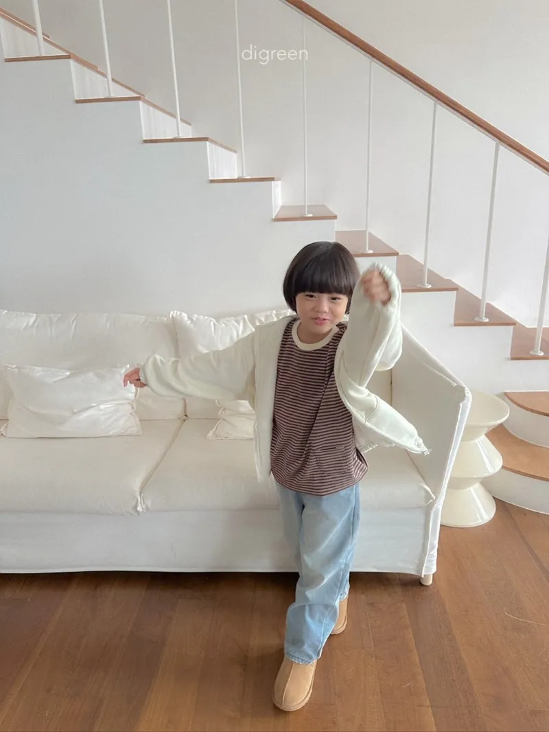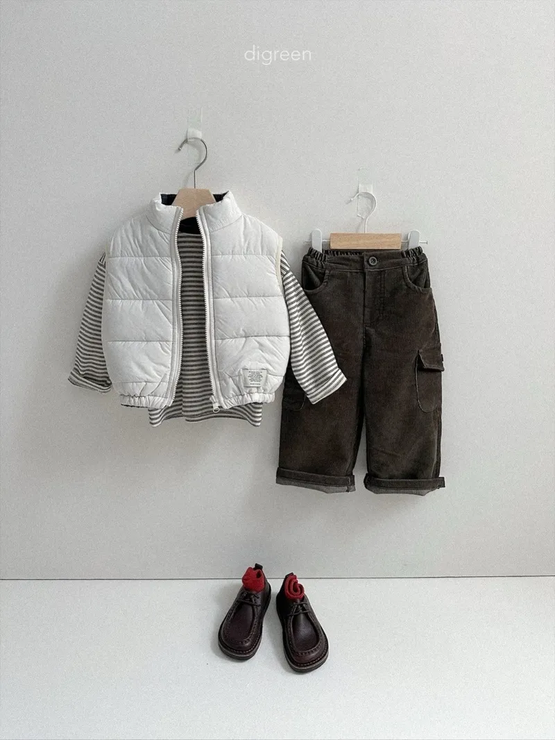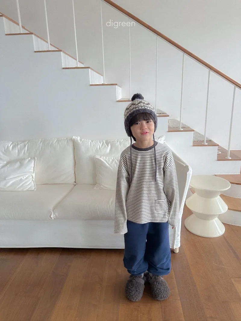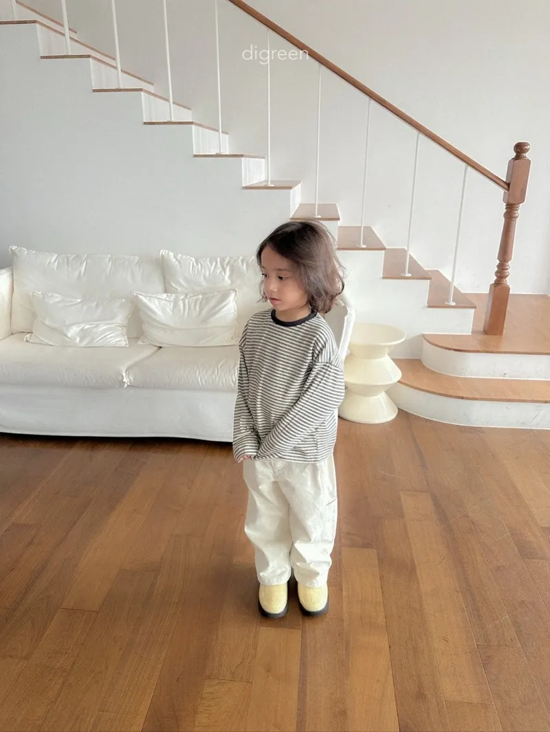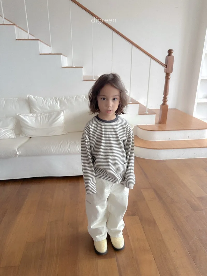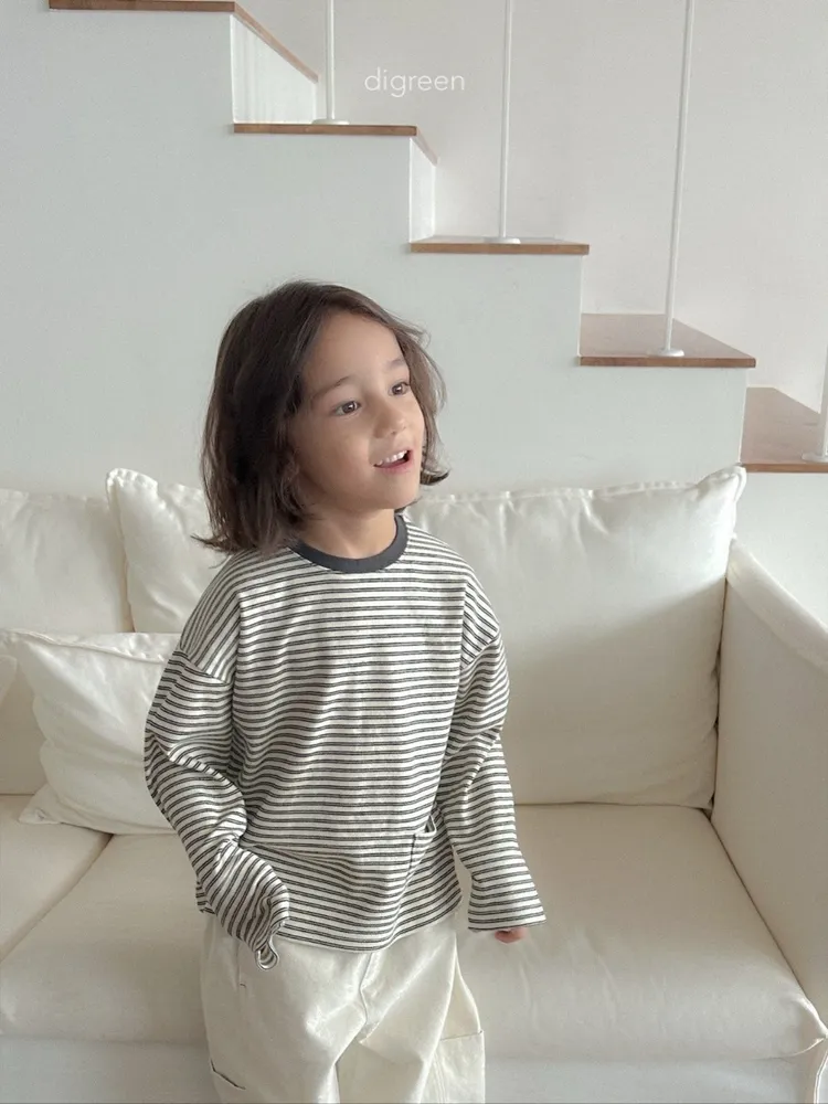 DIGREEN|厚布撞色小口袋條紋寬鬆上衣
