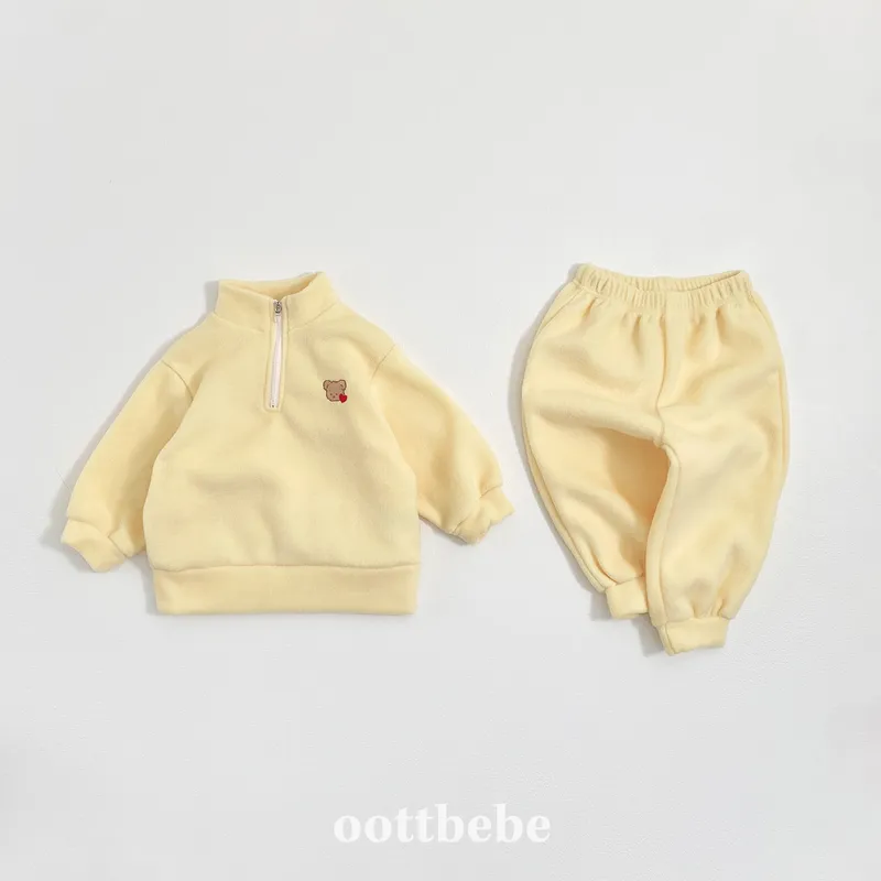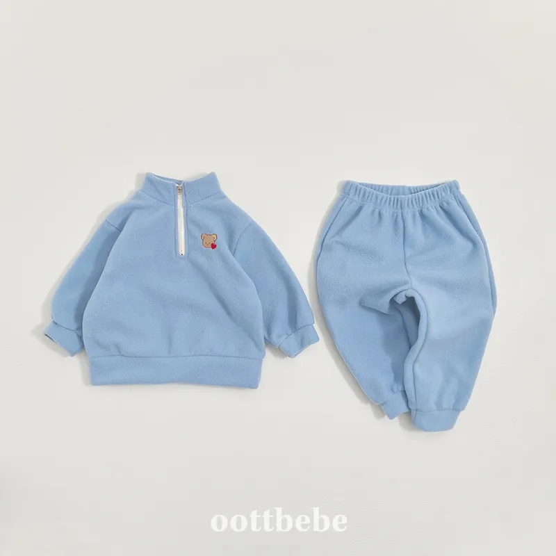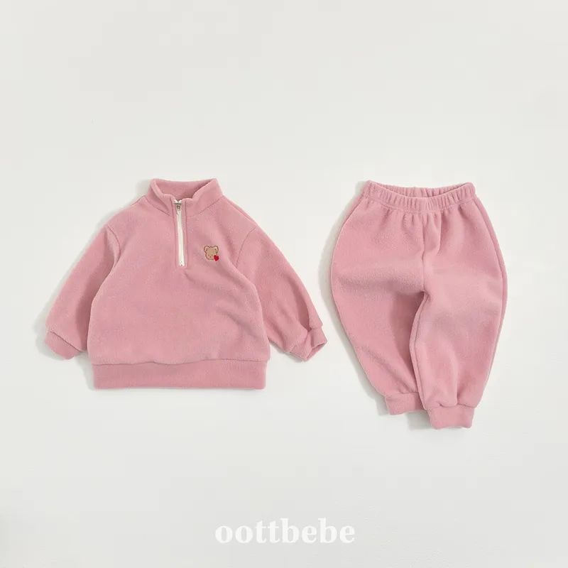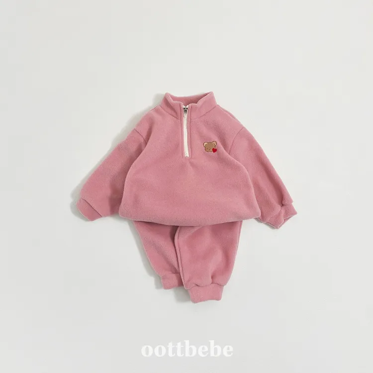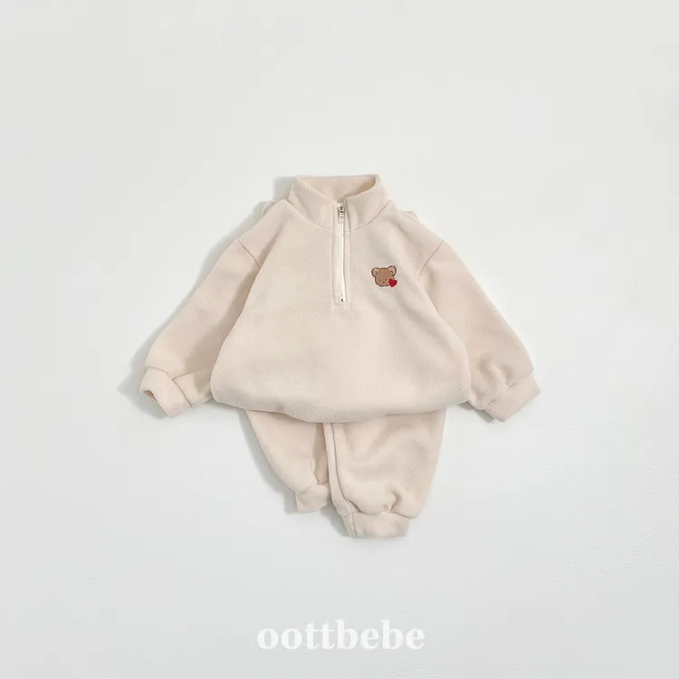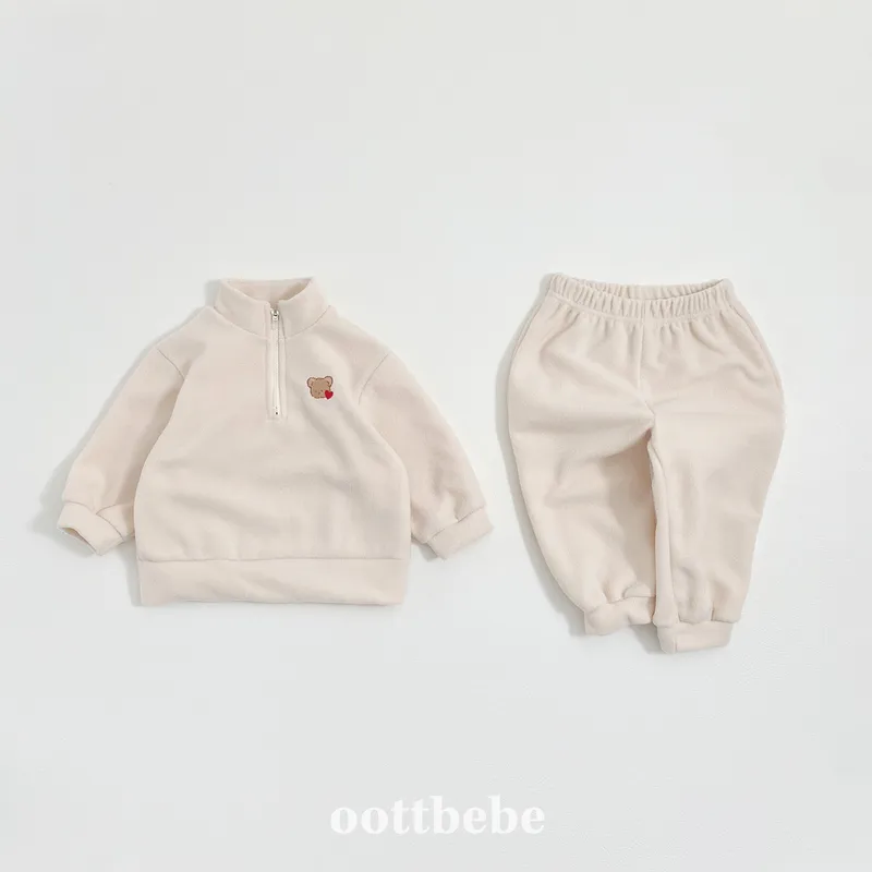 OOTT BEBE|OT小熊絨布立領拉鍊上衣+慢跑褲套裝