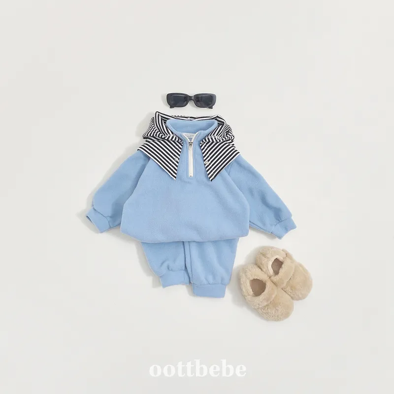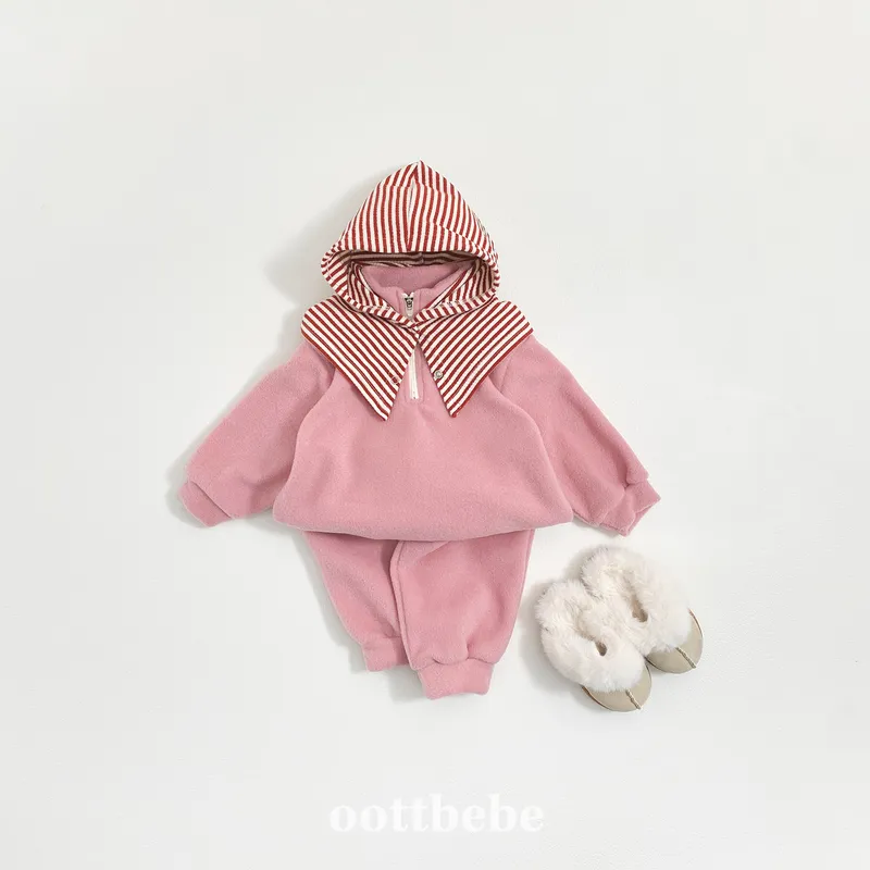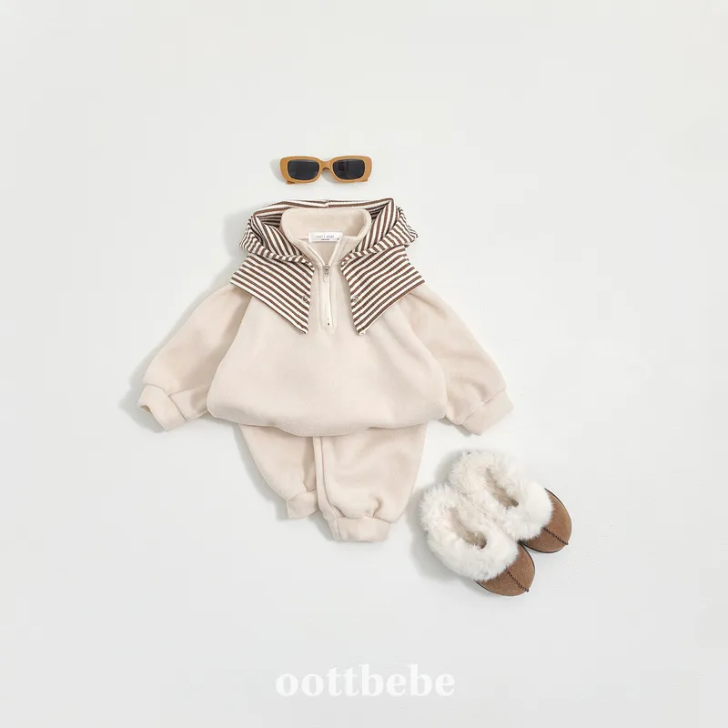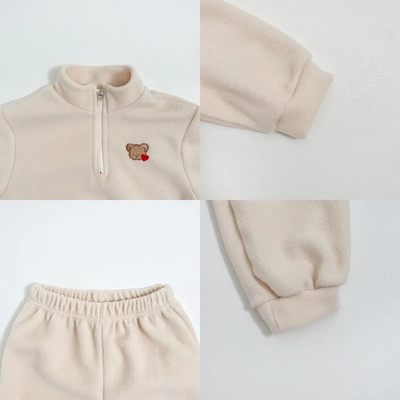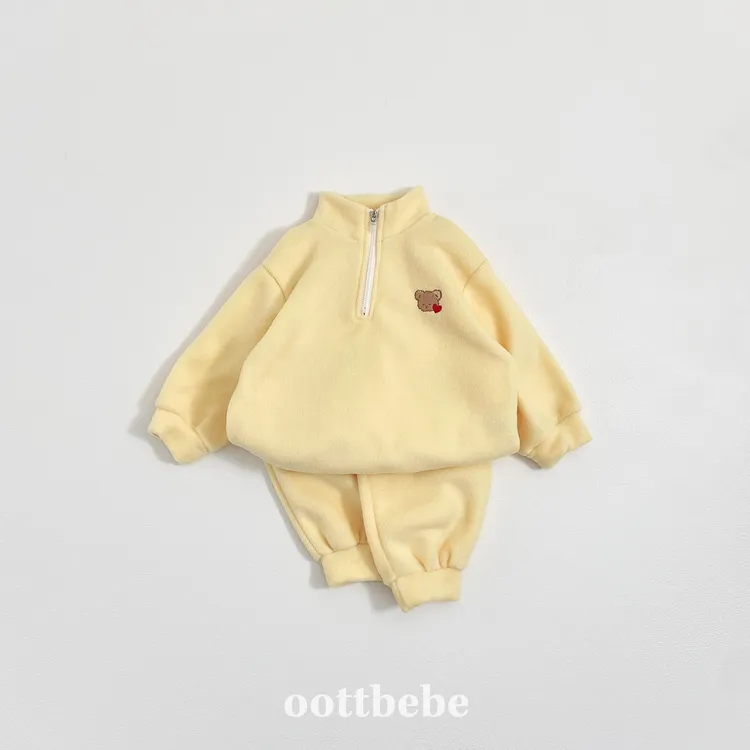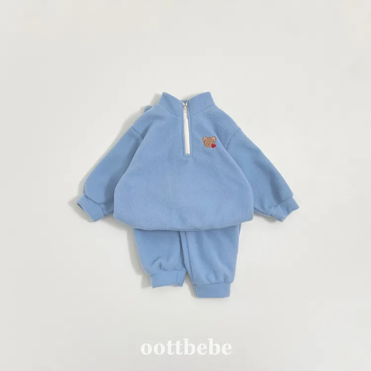 OOTT BEBE|OT小熊絨布立領拉鍊上衣+慢跑褲套裝