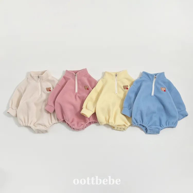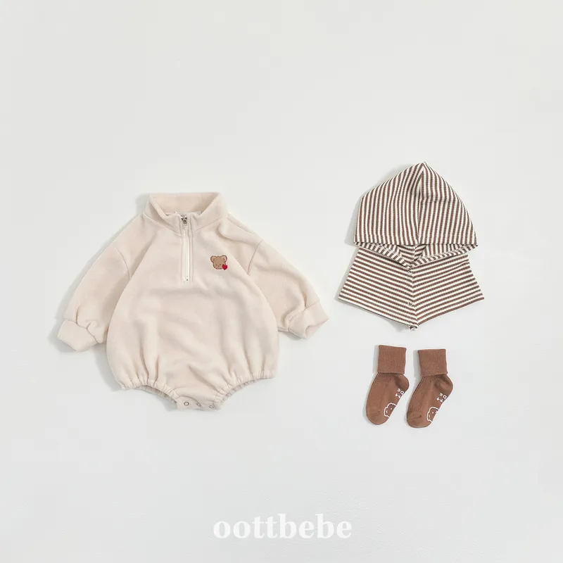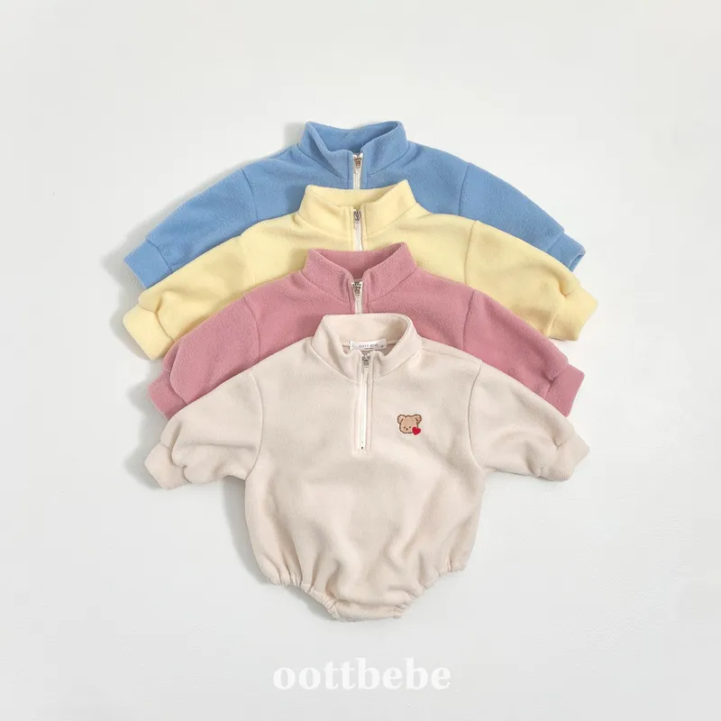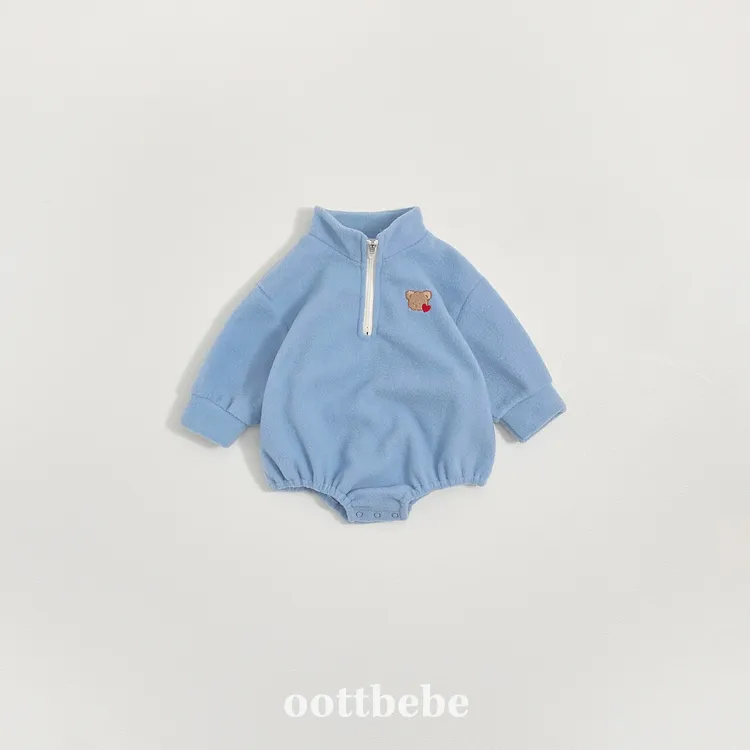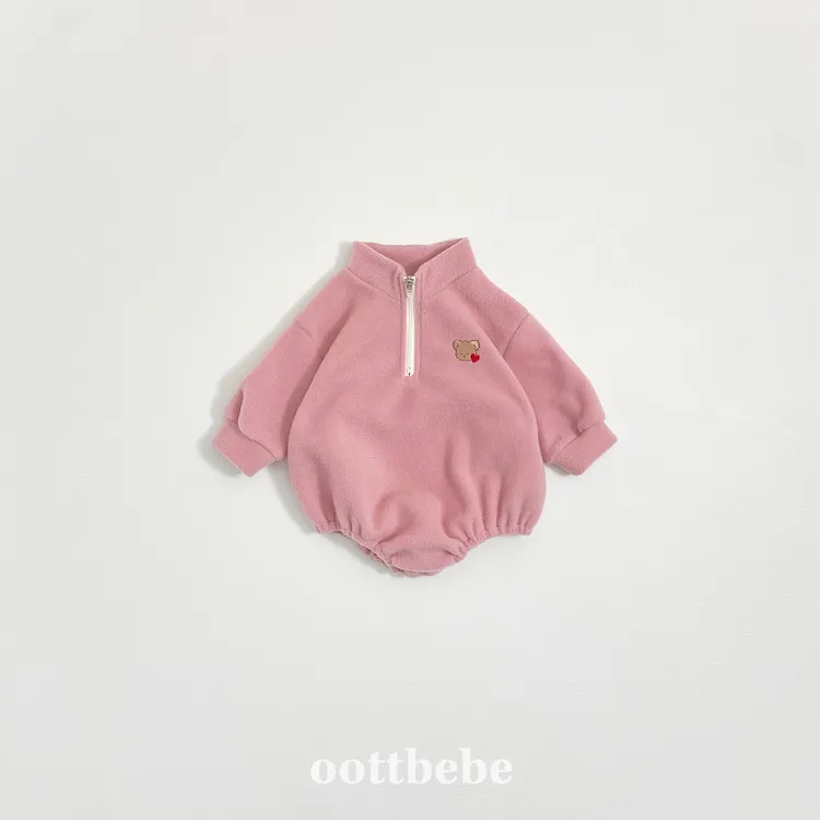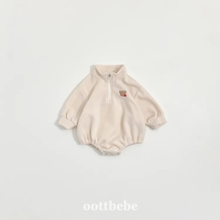 OOTT BEBE|BABY - OT小熊絨布立領拉鍊包屁衣