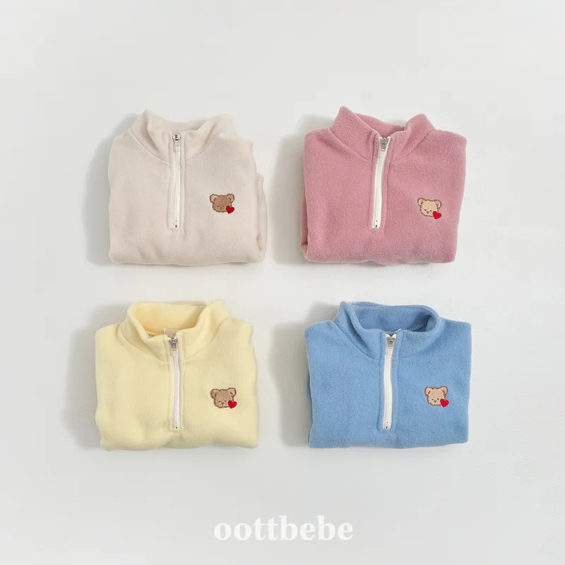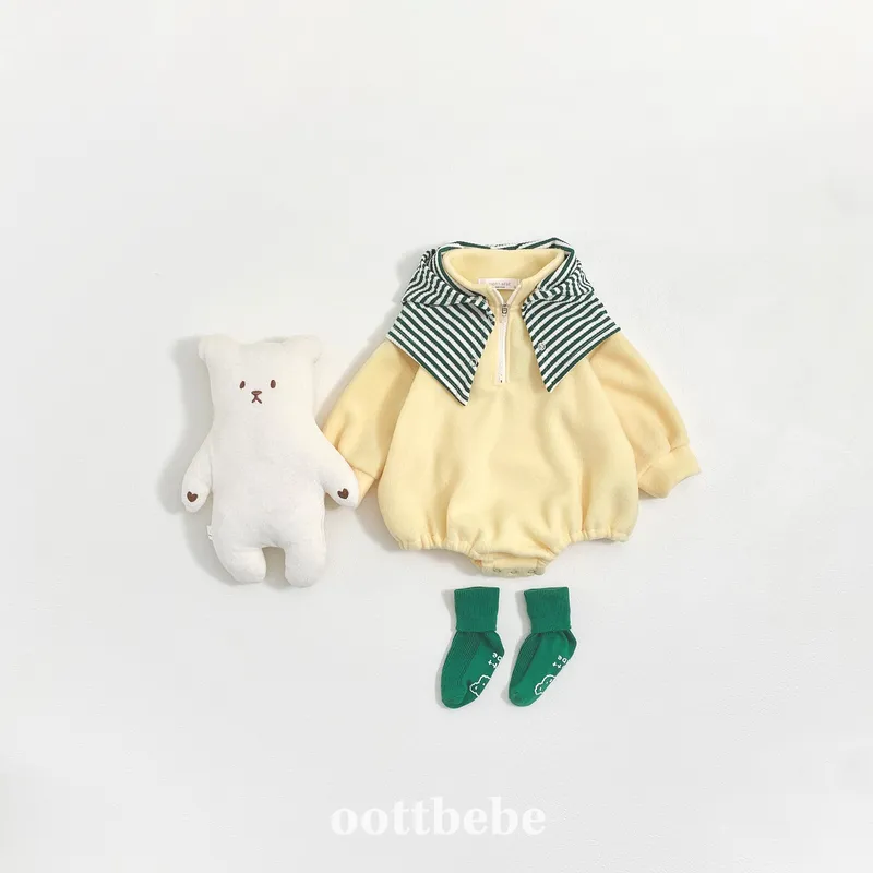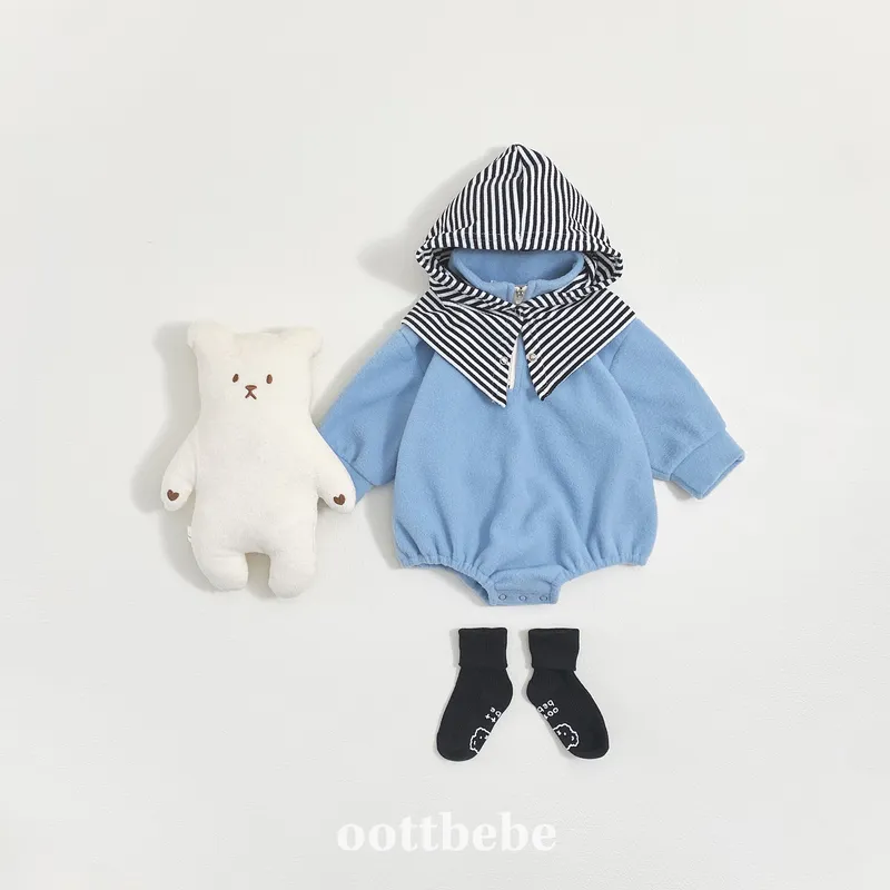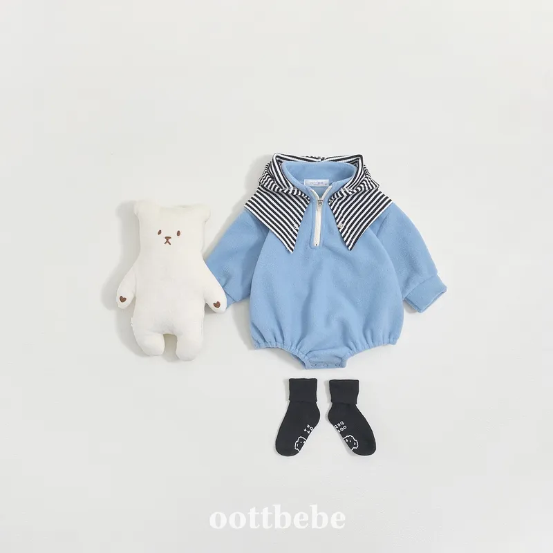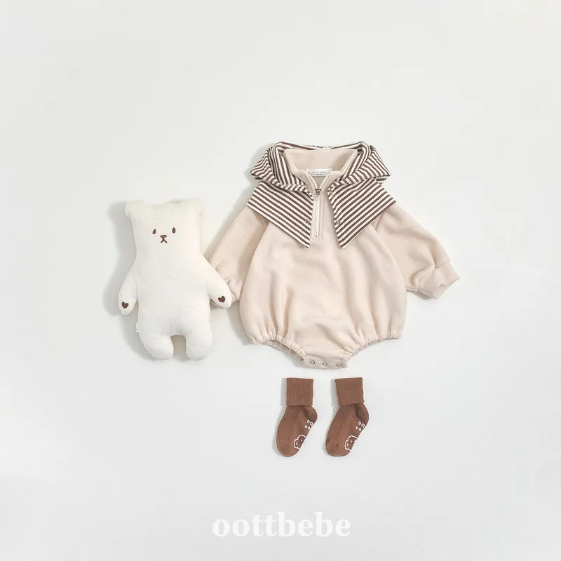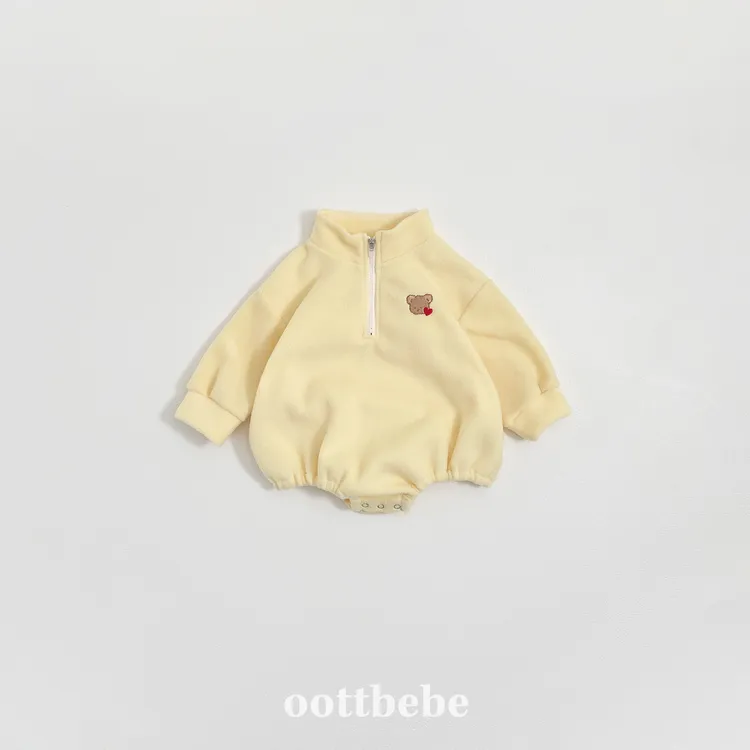 OOTT BEBE|BABY - OT小熊絨布立領拉鍊包屁衣