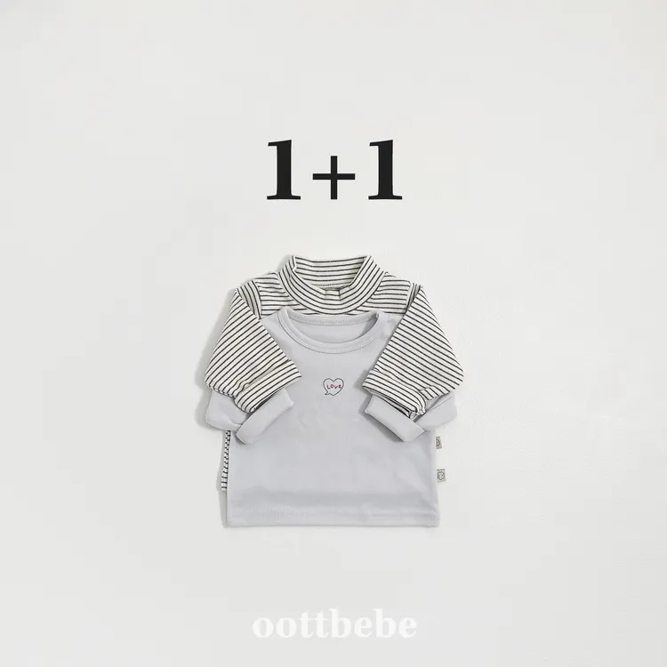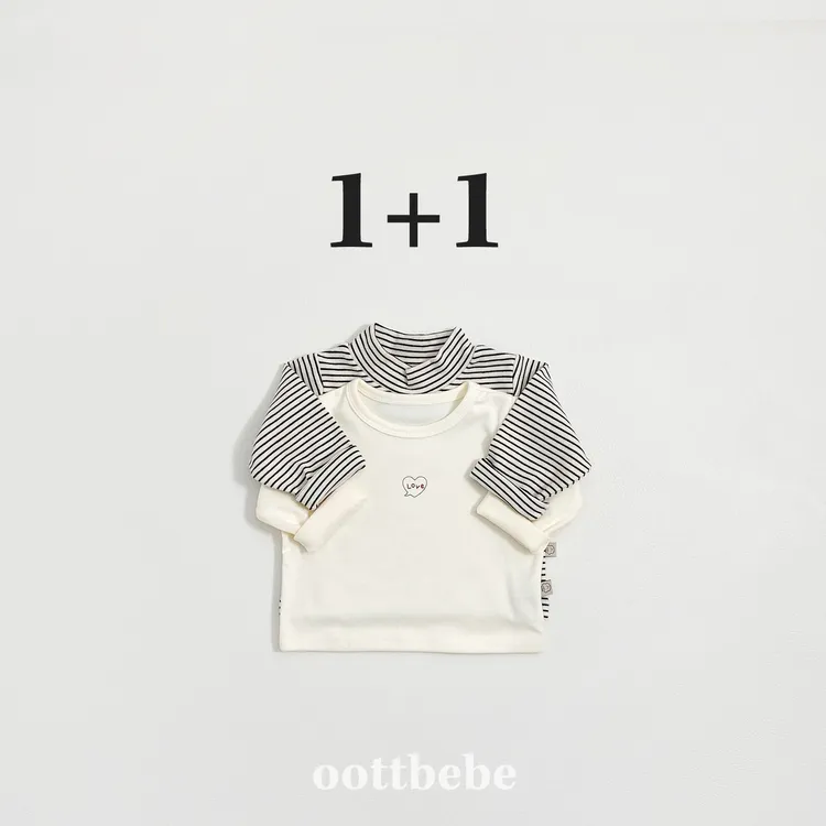 OOTT BEBE|BABY - 1+1條紋&素色上衣組合