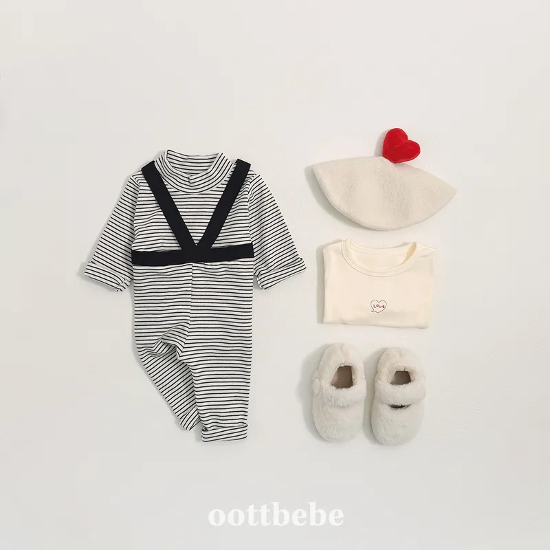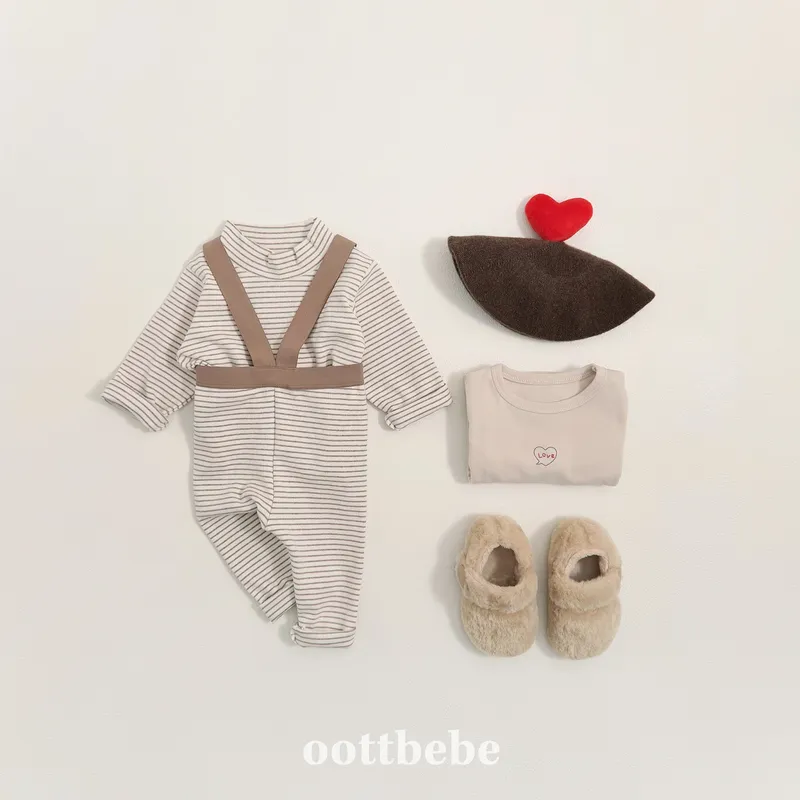OOTT BEBE|BABY - 撞色條紋吊帶合身褲